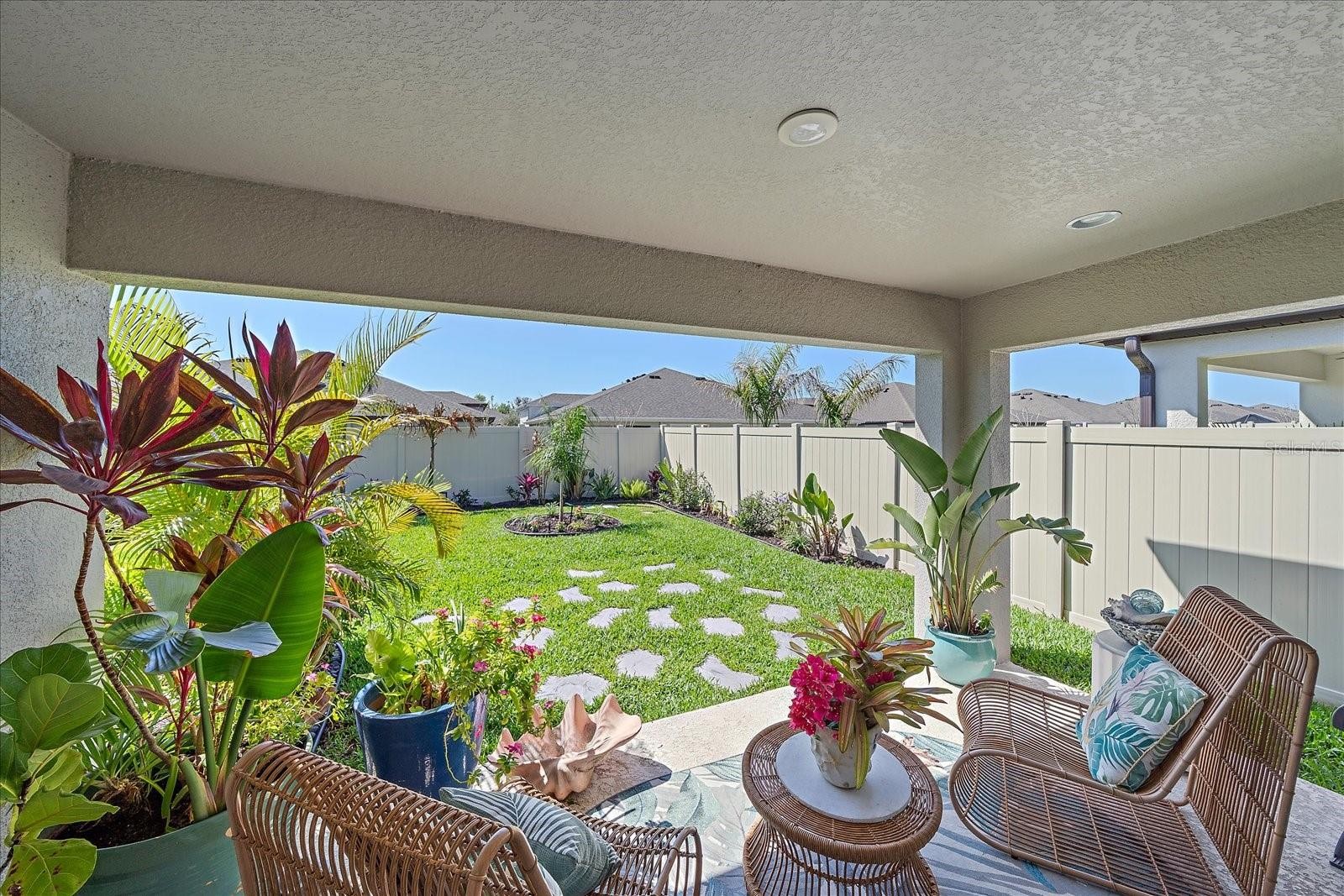 Welcome to this stunning 3-bedroom, 2-bath upgraded villa built in 2023, where modern design meets effortless comfort. Thoughtfully designed by the seller as she was an interior decorator with high-end finishes throughout, this home offers the perfect blend of style and functionality. Enjoy peace of mind with your owned security system that is already installed. Step inside to discover luxury vinyl plank flooring flowing seamlessly throughout the open-concept layout. The heart of the home is the beautifully appointed kitchen, featuring sleek quartz countertops, a show-stopping shiplap island, a 6-burner gas stove & gas HWT, and a striking marble herringbone backsplash with mother-of-pearl inlay. A charming coffee nook adds the perfect touch for slow mornings or entertaining guests. The spacious primary suite offers a private retreat, while two additional bedrooms provide flexibility for guests, family, or a home office. Both bathrooms showcase upgraded stone and ceramic tile floors which differ from your typical builder grade. Outside, enjoy professionally designed backyard landscaping—ideal for relaxing evenings, weekend gatherings, or simply enjoying your own private oasis. Community Amenities included the pool at Crosswind Point as well as allamentities at Crosswind Ranch. (Pool, Club House, Tennis/Pickle Ball courts, Playground & Dog Park.