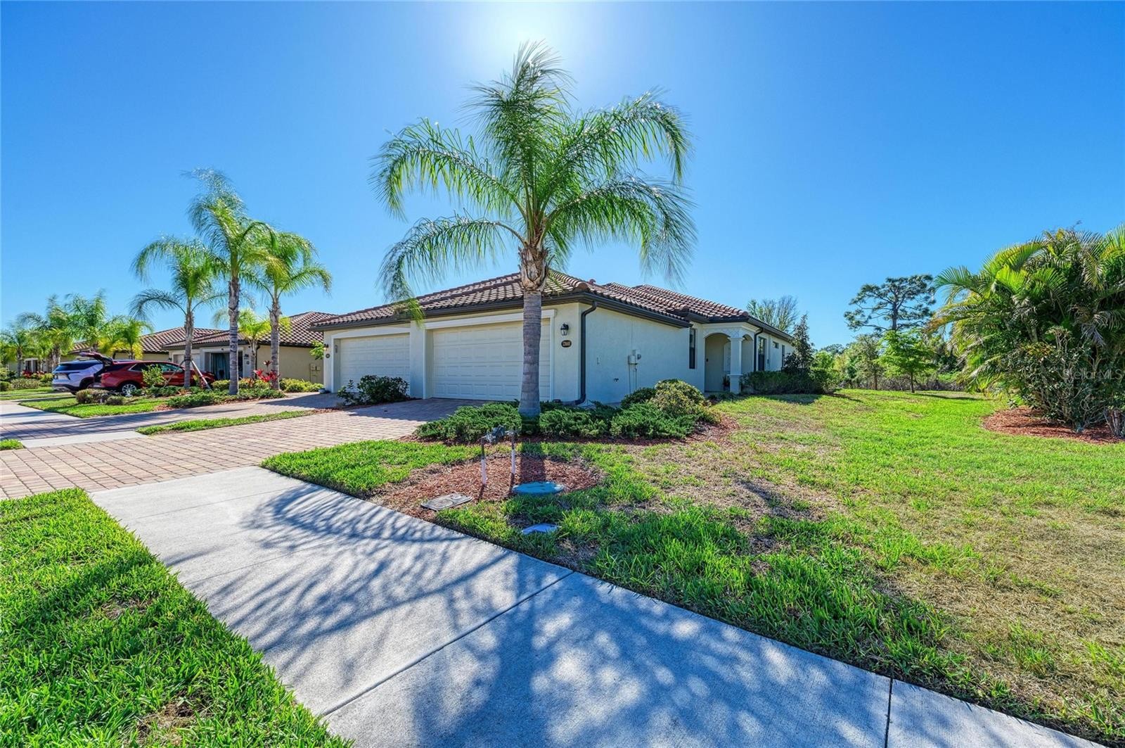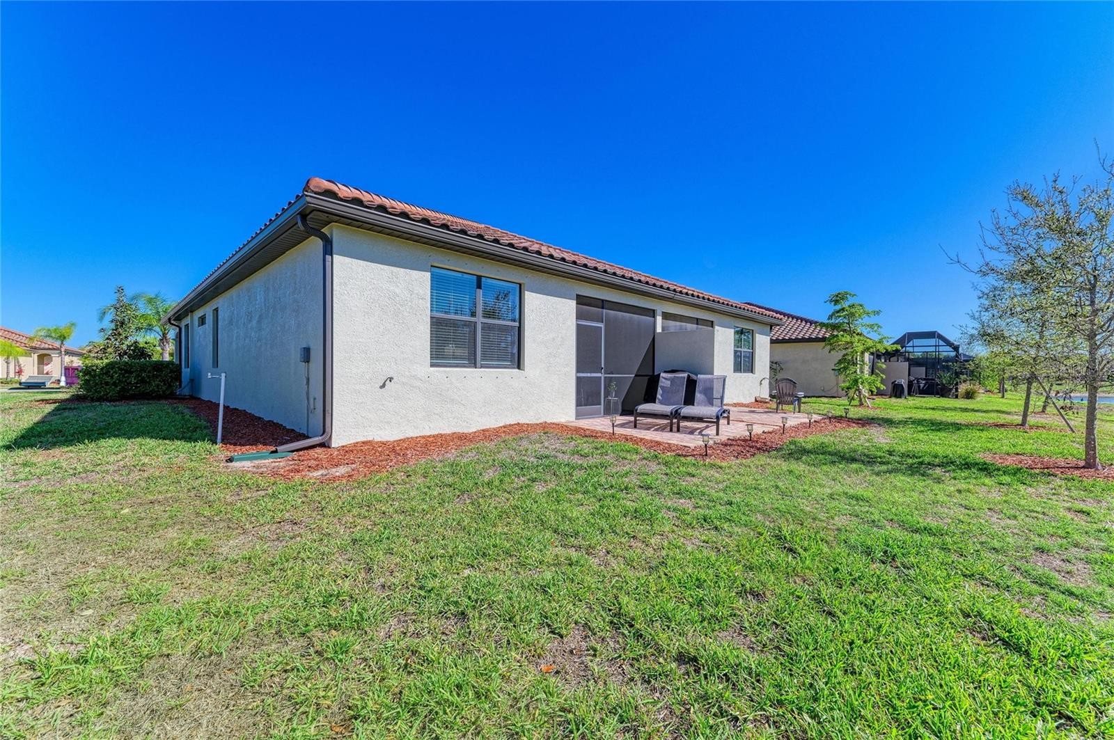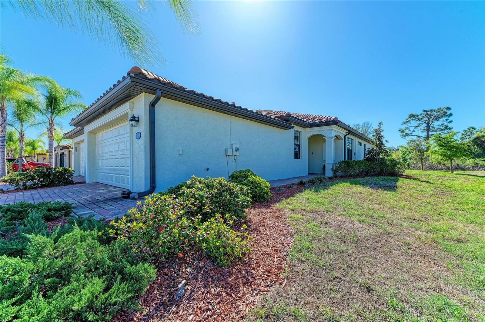 Welcome to this well-maintained Orchid Model Villa in the gated, Tuscan-inspired community of Grand Paradiso, located within Wellen Park. This WORLD CLASS RESORT style community offers this PREMIERE, FULLY FURNISHED TURN-KEY VILLA with a 2 CAR ATTACHED GARAGE. This home offers a light-filled, open-concept floor plan designed for both comfort and convenience. The FURNISHED residence features porcelain tile flooring, UPDATED LIGHTING and CEILING FANS throughout, creating a bright and inviting atmosphere. With over 1560+ SQFT of living space, plus approximately 400 SQFT in the attached garage and an additional 100 SQFT in the screened-in covered lanai, this home provides ample room to live and entertain. The kitchen is equipped with granite countertops, a tile backsplash, solid wood cabinets, appliances including a glass top stove/oven, side-by-side refrigerator, microwave, dishwasher, and disposal. The formal dining area flows seamlessly into a spacious living room with abundant natural light and LUXURY VINYL flooring. The home also includes a versatile office/studio space, perfect for remote work or hobbies. The generously sized primary suite features a spa-style bathroom with a garden tub and ample closet space, offering a comfortable and private retreat. A guest bedroom and SECOND FULL BATH provide additional accommodations for family or visitors. Additional features include UPDATED LIGHTING, CEILING FANS, BLINDS, GUTTERS, LUXURY VINYL, SMART HOME TECHNOLOGY, a complete utility room with washer and dryer, a 75" SMART TV with built-in cabinetry, a screened-in lanai, and an additional backyard PATIO with a propane barbecue grill. Ample garage storage and remote garage openers add further convenience. Enjoy maintenance-free living with resort-style amenities, including pool, spa, fitness center, tennis, pickleball, and an active social calendar. HOA fees include free basic cable and Internet, and roof repair/replacement. All conveniently located near beaches, dining, shopping, golf, and downtown attractions.