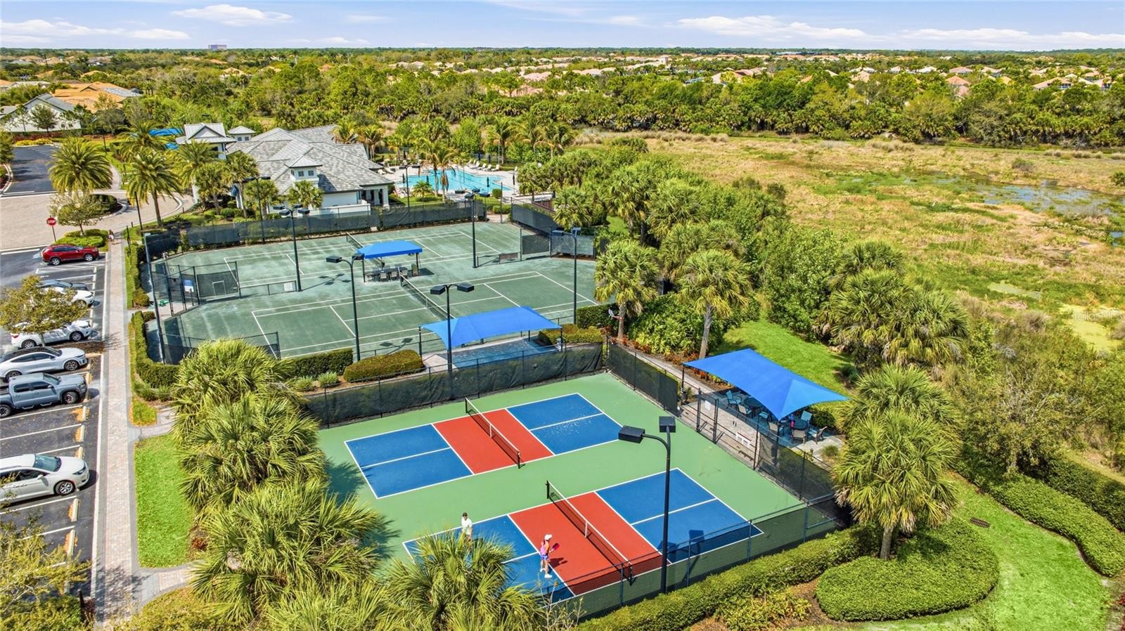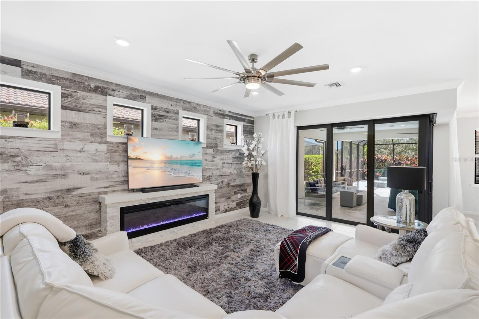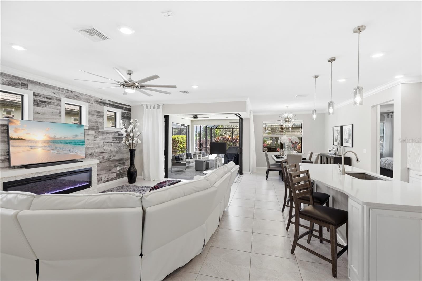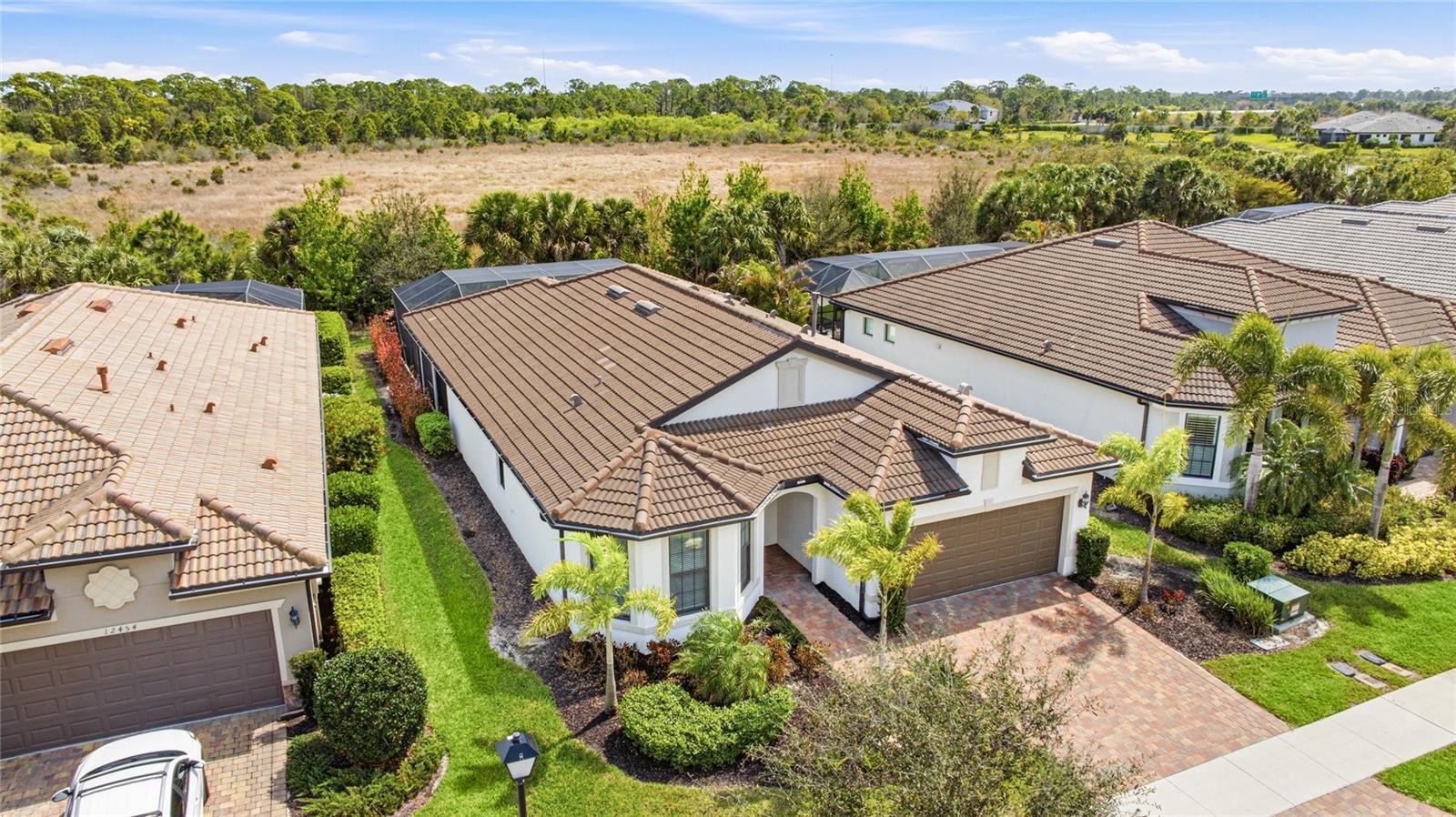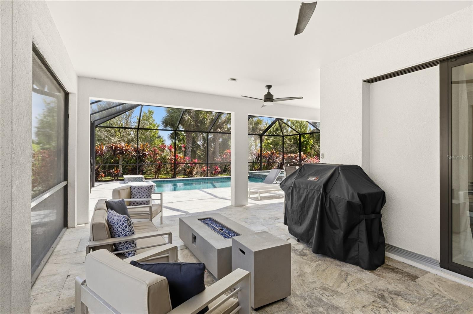 Custom pool and spa, private preserve views, and a beautifully upgraded interior define this exceptional Summerwood model in the gated community of Hammock Preserve on Palmer Ranch. Offering 2 bedrooms, a den, and 2 bathrooms, this home is designed for both everyday comfort and effortless entertaining. Inside, the open-concept layout is enhanced by large-format tile flooring, soft neutral tones, and an abundance of natural light. The main living area is anchored by a custom fireplace feature wall, creating a warm and modern focal point that immediately draws your attention. From here, a zero-corner sliding glass door opens completely to the outdoor living space, creating a seamless connection between indoors and out. The gourmet kitchen is both functional and refined, featuring quartz countertops, white shaker-style cabinetry, stainless steel gas appliances, a built-in microwave, and a spacious island with bar seating. Pendant lighting and a tile backsplash add subtle detail, while the layout flows naturally into the dining and living areas, making the space ideal for hosting or everyday living. The primary suite offers a quiet retreat with a spacious layout, while the en-suite bathroom features dual vanities, a large walk-in shower, and clean, modern finishes. The secondary bedroom and full bath are thoughtfully positioned for privacy, and the den provides the flexibility for a home office, guest space, or hobby room. Step outside to a private backyard setting with lush preserve views and no direct rear neighbors. The custom pool and spa are finished with travertine decking, water features, and LED lighting, creating a true resort-style experience. An extended covered lanai offers multiple areas for lounging, dining, and entertaining, making this outdoor space just as functional as the interior. Offered with furnishings negotiable, this home presents an opportunity for a seamless, move-in ready experience. Additional highlights include impact windows, smart home features, and quality construction by Divosta Homes, known for their solid build and thoughtful design. Hammock Preserve offers a resort-style lifestyle with a clubhouse featuring a barefoot bar, fitness center, heated lap pool and spa, pickleball, tennis, bocce courts, dog park, and fishing pier. Located in the heart of Palmer Ranch, you are just minutes from world-renowned beaches, shopping, dining, and everyday conveniences. **THIS PROPERTY QUALIFIES FOR A 1% LENDER INCENTIVE IF USING PREFERRED LENDER. INQUIRE FOR MORE DETAILS.**