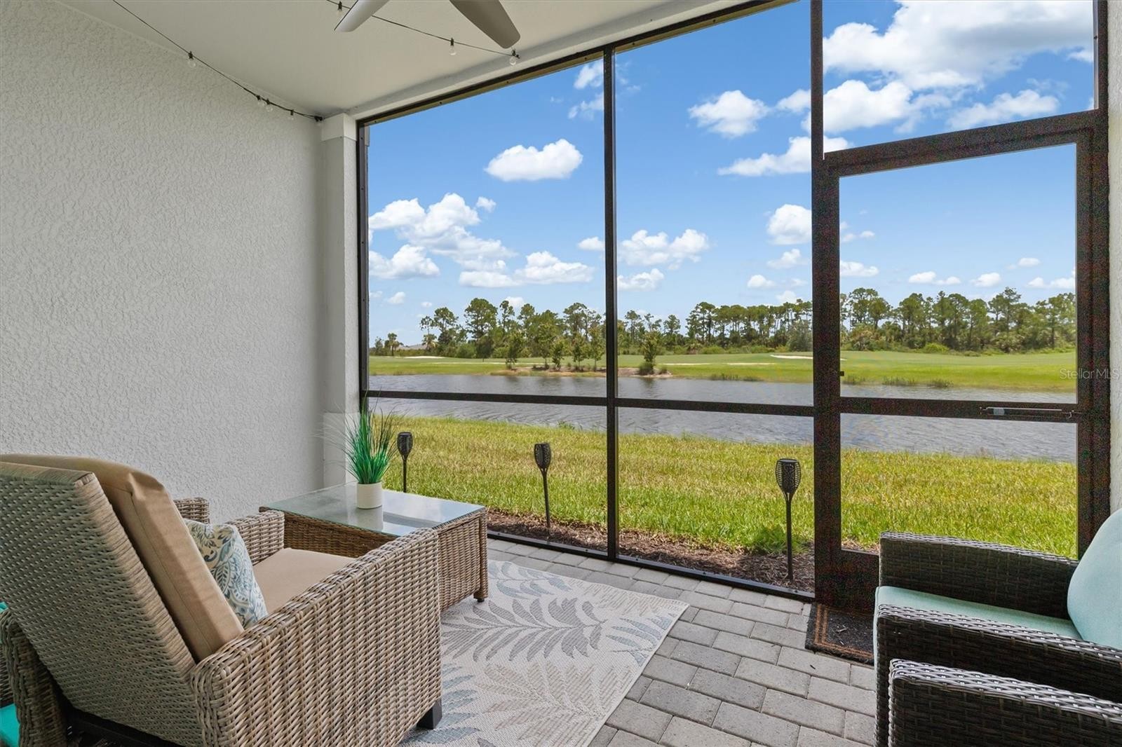**GOLF MEMBERSHIP INCLUDED** Experience the best of Florida living in this beautiful first-floor coastal inspired, Veranda condo, located in the highly sought-after Wellen Park Golf & Country Club. This 2-bedroom + den, 2-bath home features an open-concept layout with stunning golf course, water and preserve view, all enjoyed from your spacious back lanai — complete serenity and relaxation. A second, screened front lanai with sliders into the kitchen, creates a seamless indoor-outdoor flow. OVER $30,000 IN UPGRADES including custom built-in closets, newly remodeled primary bath shower with floor to ceiling Carrara marble tile and glass enclosure, lighting and fans, and added pullout kitchen drawers. Step into the kitchen showcasing light and bright 42-inch cabinetry, quartz countertops, and a stylish backsplash. The Bromelia Floor Plan is perfect for watching your favorite team with friends, hosting family dinners or a holiday party. The open floor plan allows all of your guests to mingle and enjoy the fun and the dry bar allows you the to display your favorite cocktails. Your private 1-car detached garage and hurricane impact windows and doors offer both convenience and peace of mind. Enjoy a bundled golf membership along with resort-style amenities. You will truly feel like you’re in a resort on a tropical vacation, as you float in the zero-entry stunning new pool and spa. Take shade under the cabanas while you sip on a cold drink from the poolside tiki bar. For the sports enthusiasts, start your day at the fitness center or take a class in the aerobics room. Challenge your friends to a pickleball or tennis match or enjoy a friendly game of bocce in the evening. Spoil yourself with a message or pedicure at the full-service spa and spoil your furry friends at the new community dog park. Located just minutes to Downtown Wellen Park, Venice Historic District, several beaches, shopping, dining, and I-75.