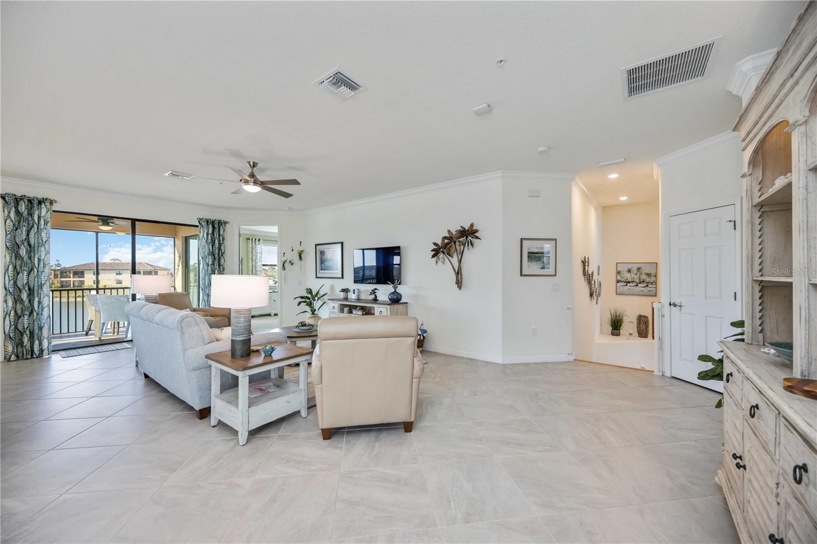 Welcome to this beautifully maintained Brandywine upper-floor coach home located in the highly sought-after Gran Paradiso community within Wellen Park. Perfectly positioned with a southern-facing entry and peaceful northern water views from the rear of the home, this residence offers a tranquil setting with comfortable natural light throughout the day and relaxing views from the spacious screened lanai. Inside, the home features a bright and inviting open-concept floor plan filled with natural light, one of the features the owners have loved most about living here. The spacious layout creates a seamless flow between the living area, dining space, and kitchen, making it ideal for both everyday living and entertaining. The well-appointed kitchen overlooks the main living space and includes STAINLESS STEEL APPLIANCES, QUARTZ COUNTERTOPS, generous cabinetry with ample storage, and pantry space, while recent updates such as a NEWER REFRIGERATOR, fresh accent wall finishes, and NEW CARPET on the stairs add both style and comfort. The primary suite overlooks the water, creating a peaceful retreat with beautiful views, DUAL WALK-IN CLOSETS, and an ENSUITE BATH featuring DUAL VANITIES and a large tiled walk-in shower. Guest bedrooms are privately located on the opposite side of the home, offering an ideal layout for visitors, while the spacious foyer entry, INTERIOR LAUNDRY room, and IMPACT GLASS WINDOWS AND DOORS provide everyday convenience and peace of mind. One of the home’s most practical features is the EXTENDED TWO-CAR GARAGE, which offers additional depth beyond a standard garage and provides space for a golf cart, workbench area, or additional storage. Step outside to the LARGE TILED LANAI overlooking the water, where the northern exposure provides comfortable shaded outdoor living and peaceful views—an ideal setting for morning coffee, relaxing afternoons, or entertaining guests. Gran Paradiso offers residents an exceptional resort-style lifestyle with a stunning CLUBHOUSE, LAGOON-STYLE POOL AND SPA, state-of-the-art FITNESS CENTER with locker rooms, TENNIS and PICKLEBALL courts, BILLIARDS and CARD ROOMS, LIBRARY, and an active social calendar that brings neighbors together throughout the year. The home’s location also provides convenient access to Downtown Wellen Park, where residents enjoy concerts on the lawn, restaurants, shops, and farmers markets, along with miles of nearby walking and biking trails. Beautiful Gulf beaches including Venice Beach, Manasota Beach, Nokomis Beach, and Siesta Key are just a short drive away, offering the perfect combination of vibrant community living and coastal lifestyle. Be sure to watch the walk through video, and contact the listing agent today to schedule a private tour! Experience the lifestyle that makes Gran Paradiso and Wellen Park such desirable places to call home.