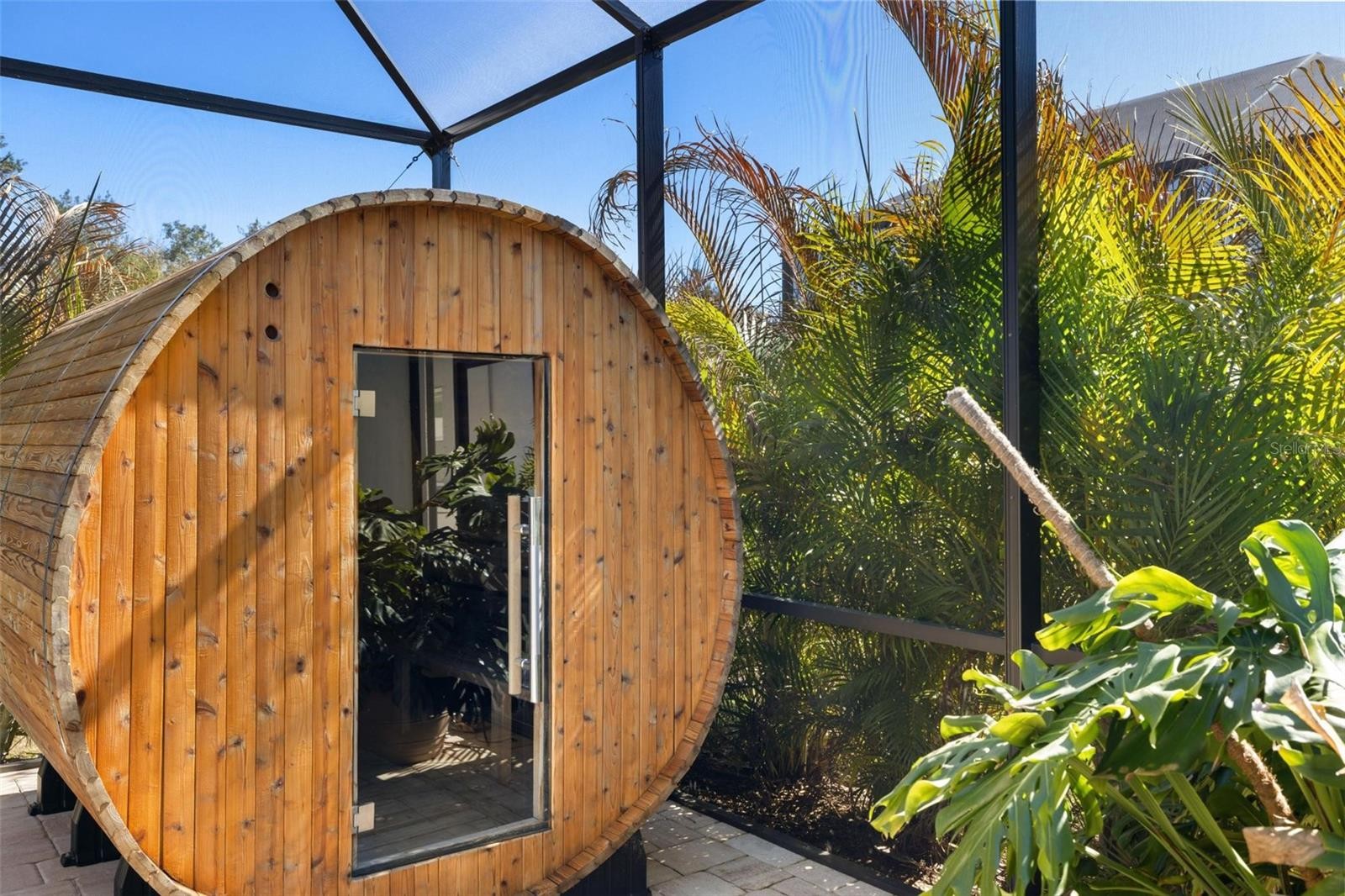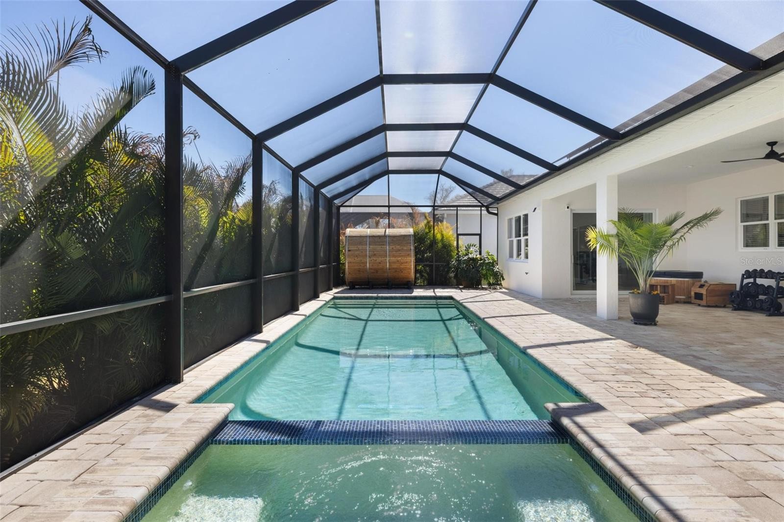 Thoughtfully designed to feel grand, comfortable, and genuinely different from builder grade homes, this stunning Savannah floor plan by Neal Communities offers 3 bedrooms, 3 full bathrooms, and 2,868 sq ft in Grand Palm, highlighted by X FLOOD ZONE, IMPACT WINDOWS AND DOORS, PAID OFF SOLAR WITH EXTREMELY LOW ELECTRIC BILLS, and a HEATED SALTWATER POOL AND SPA. From the moment you enter, the extended height 8 FOOT INTERIOR DOORS, custom accent walls, and curated finishes create an airy, elevated feel throughout. The layout is one of Grand Palm’s most coveted, featuring a private office or den at the front of the home, a separate club room at the rear with impact sliding doors opening directly to the lanai, and a flexible design ideal for hosting and everyday living. Two of the three bedrooms offer en suite bathrooms, including a spacious primary suite with dual vanities, a freestanding soaking tub, and two large walk in closets, while all bedrooms feature generous walk-in closets. The Savannah floor plan also includes a charming technology corner just off the kitchen, a modern take on the classic built in desk, tucked into its own space and leading into an oversized laundry room with cabinetry and sink. Outdoor living shines with a screened lanai featuring a 33 foot heated saltwater lap pool, spa, and a wooden dry sauna that conveys with the home, plus space for a cold plunge currently located on the lanai. Additional upgrades include quartz countertops throughout including bathrooms and laundry, REVERSE OSMOSIS in the kitchen, a WHOLE HOME WATER FILTRATION system valued at approximately $6,000, updated light fixtures/fans, HVAC UV LIGHT FILTER and painted interior doors that add warmth and character. HOA dues include weekly lawn care, plus regular mulching, weeding, and trimming, and the rear of the home is positioned with a preserve buffer providing privacy and separation, all while delivering a remarkably low cost of ownership with no required flood insurance and minimal monthly utility expenses.