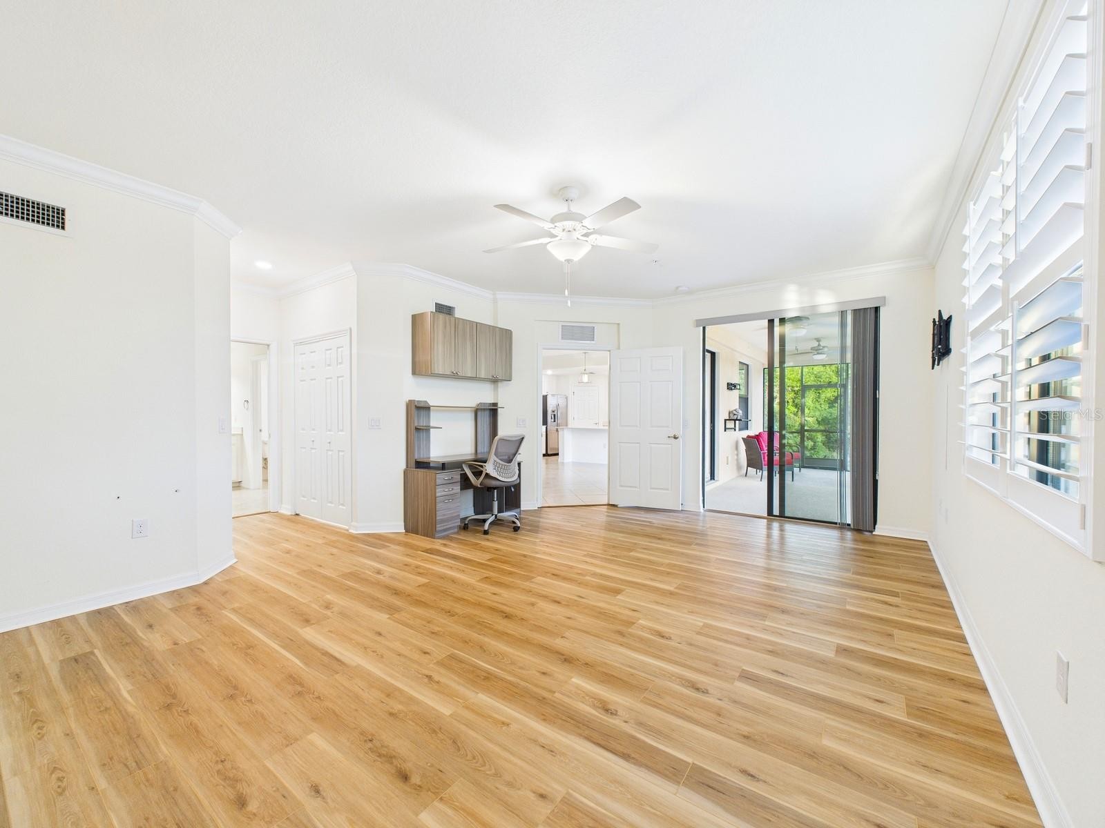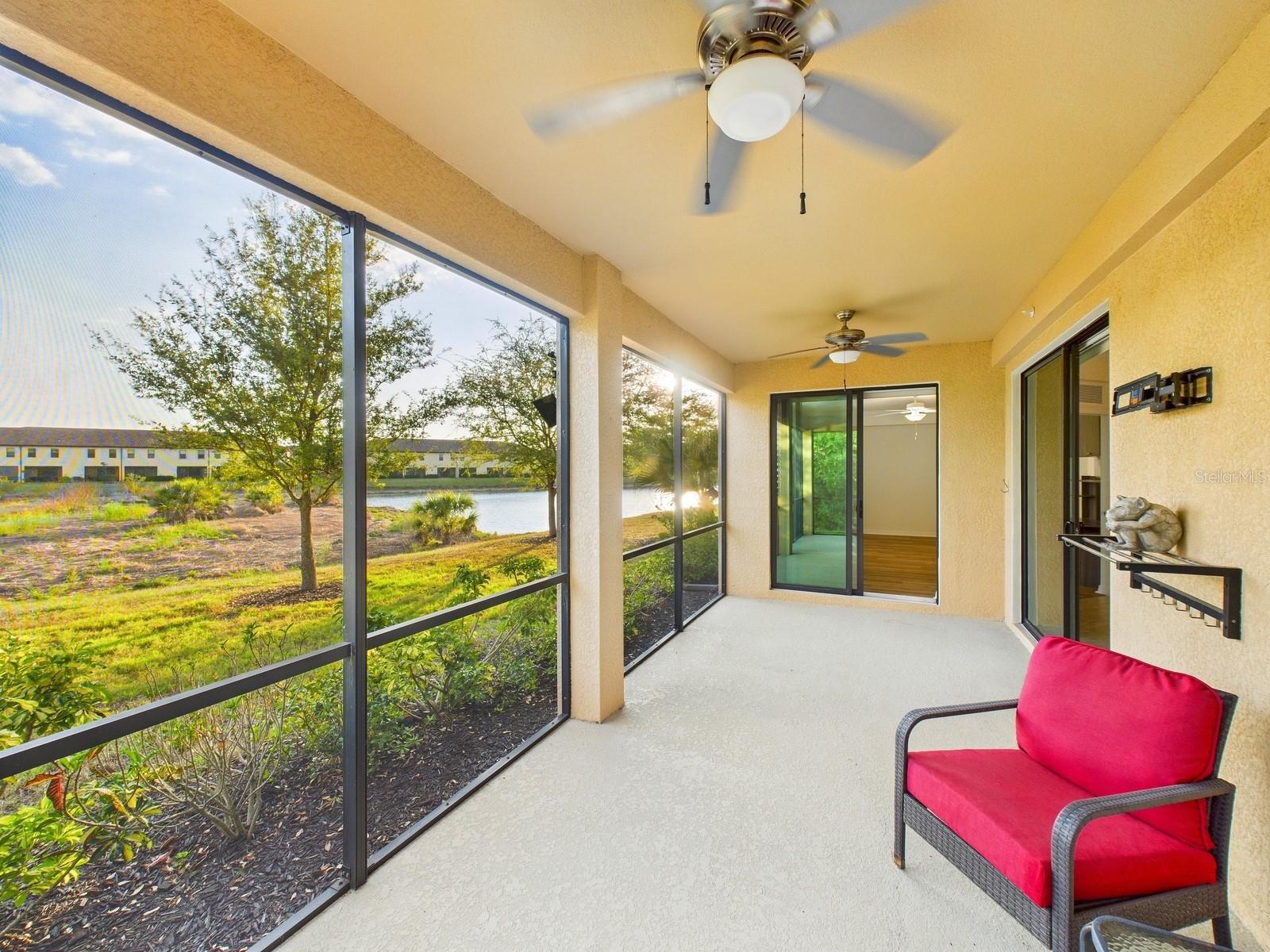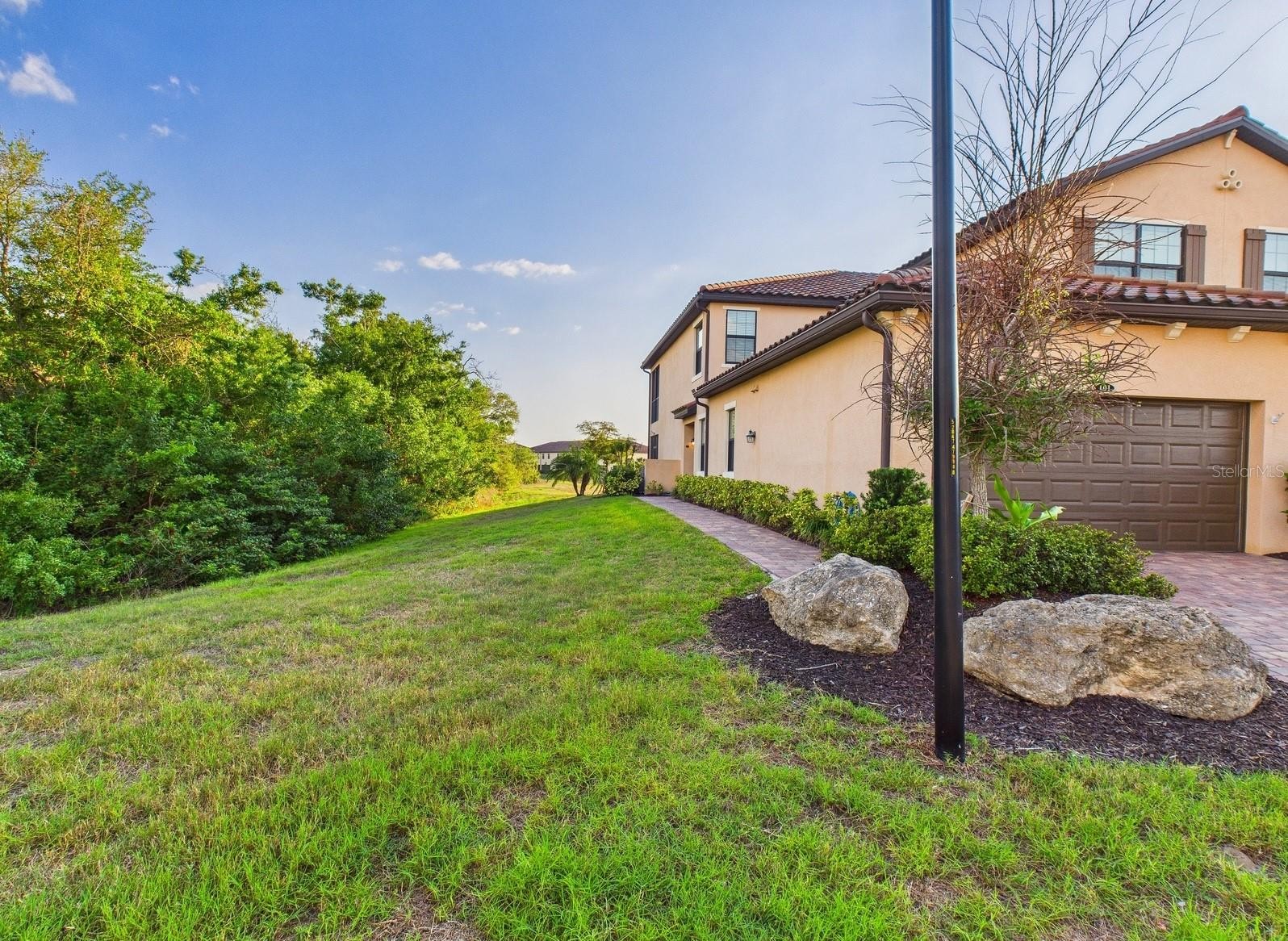 Nestled behind the gates of Gran Paradiso, this beautifully appointed coach home offers a perfect blend of comfort, privacy, and resort-style living. As a desirable end unit, it enjoys a unique setting bordered by a natural preserve on one side and a pond on the other, creating a serene backdrop that enhances both tranquility and scenic beauty. The screened lanai, accessible from the main living area, invites you to relax and unwind while taking in breathtaking sunset views. This inviting outdoor space also provides direct access to the primary suite, seamlessly connecting indoor and outdoor living. The primary bedroom itself is generously sized, offering a peaceful retreat complete with two spacious closets and a well-appointed ensuite bathroom featuring dual vanities and a curb-free, glass-enclosed shower. Inside, high ceilings elevate the sense of openness, filling the home with natural light and an airy ambiance. The thoughtfully designed floor plan promotes a smooth, effortless flow between spaces, making everyday living as well as entertaining feel both comfortable and refined. The spacious kitchen is equipped with abundant counter space and ample cabinetry, ideal for preparing meals or hosting gatherings, while the adjoining great room serves as a welcoming hub for dining and relaxation. Whether you're enjoying quiet mornings on the lanai, hosting friends and family, or taking advantage of the plentiful amenities within Gran Paradiso, this coach home presents an exceptional opportunity to embrace the very best of the Florida lifestyle.