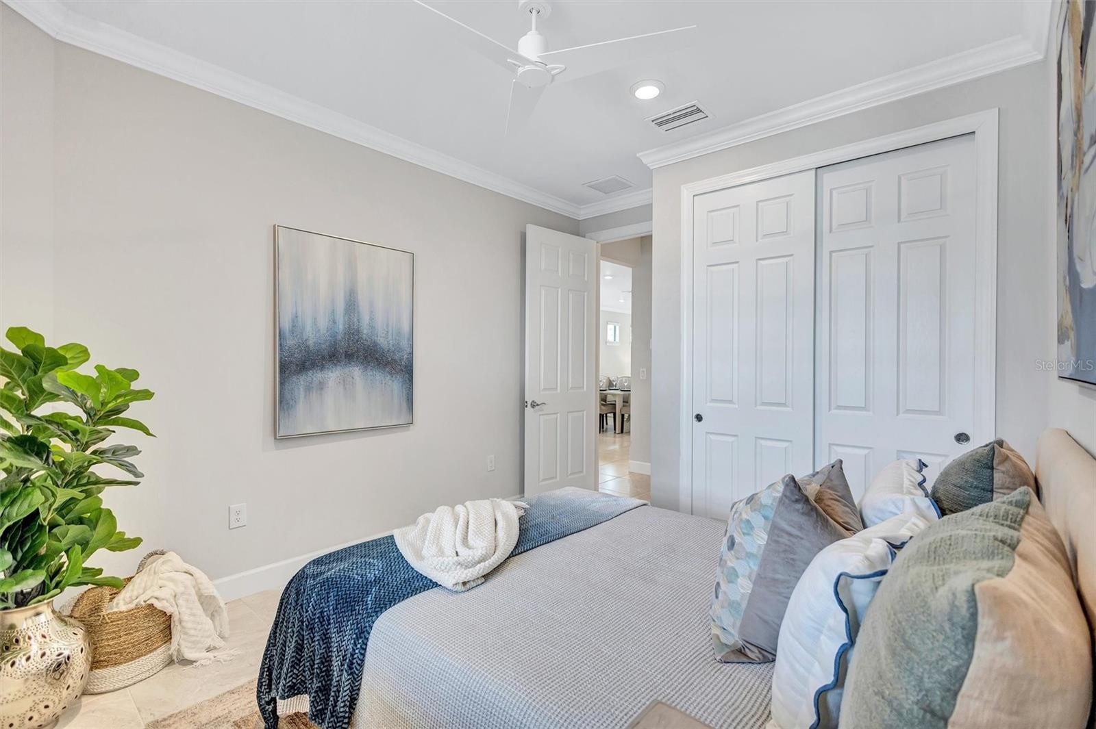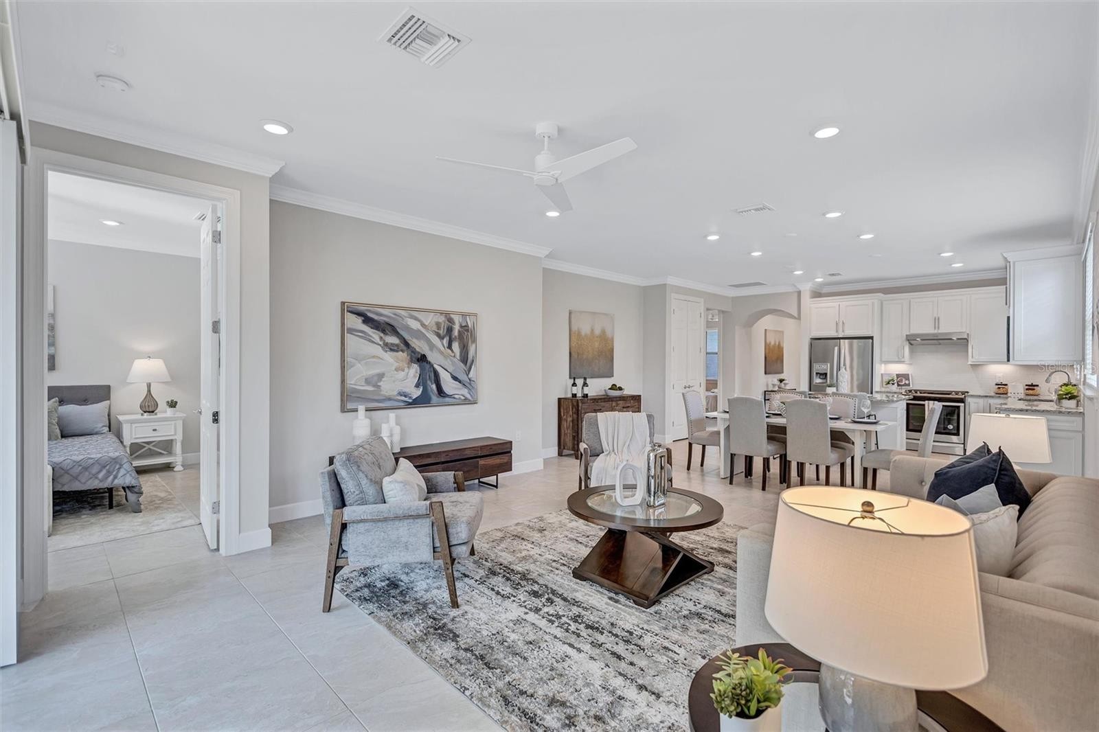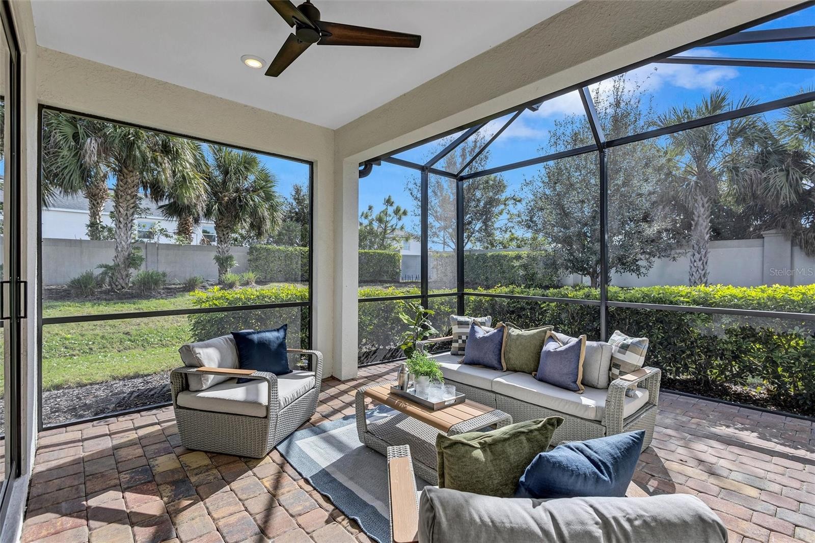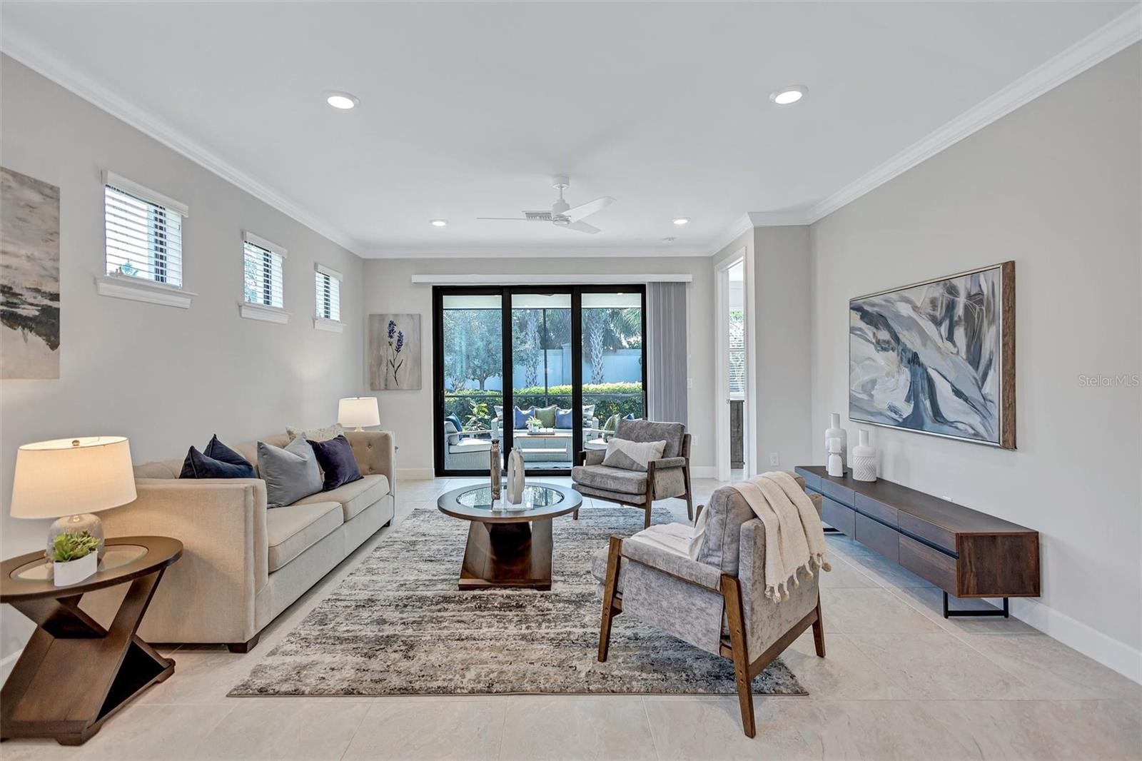 Finally – the one you have been waiting for! This stunning 2021 Cressida model offers Impact Windows & Doors, extensive upgrades inside & out, and an exceptional end-of-the-cul-de-sac location that provides rare privacy. Designed to live like a single-family home, it features a 24-ft Courtyard entry & an impressive 29-ft extended covered lanai overlooking a tranquil, natural Florida backdrop. This open, light-filled floor plan features 9-ft ceilings, 8-ft interior doors, & abundant windows only an end-unit can provide. Easy-care porcelain tile & crown molding throughout complement the coastal-inspired, light-toned finishes. At the heart of the home, the Chef’s kitchen delights with a natural gas 5-burner range, 42-inch solid-wood cabinetry with soft-close drawers & pull outs, granite countertops, upgraded stainless appliances, under-cabinet lighting, a large pantry, and an island with extra storage & breakfast bar seating – perfect for everyday living or entertaining. The gracious living area flows seamlessly through stacking sliders to the extended, pavered, covered and screened lanai for your private outdoor retreat. The luxurious primary Ensuite is a true oasis, offering comfort-height granite counters, double undermount sinks, upgraded fixtures, and enlarged walk-in shower, separate linen storage and oversized walk-in closet & a private water closet. A versatile flex room allow you to personalize the space to your lifestyle, while the separate laundry room and mud-room entry from the 2-car garage add thoughtful convenience. Located in a maintenance-free, gated community, you’ll enjoy Resort-Style Amenities including a Clubhouse, Barefoot Bar, heated Pool & Spa, fitness center, pickleball, tennis, bocce ball, fire pit, fishing pier & an on-site Property Manager. Furry family members are welcome too, with a 2-dided dog park for both large & small pups. All of this with easy access to Downtown Sarasota’s cultural attractions, charming Downtown Venice, world-famous beaches and the 20+ mile Legacy Trail. Don’t miss this special opportunity to own this move-in-ready piece of Paradise!