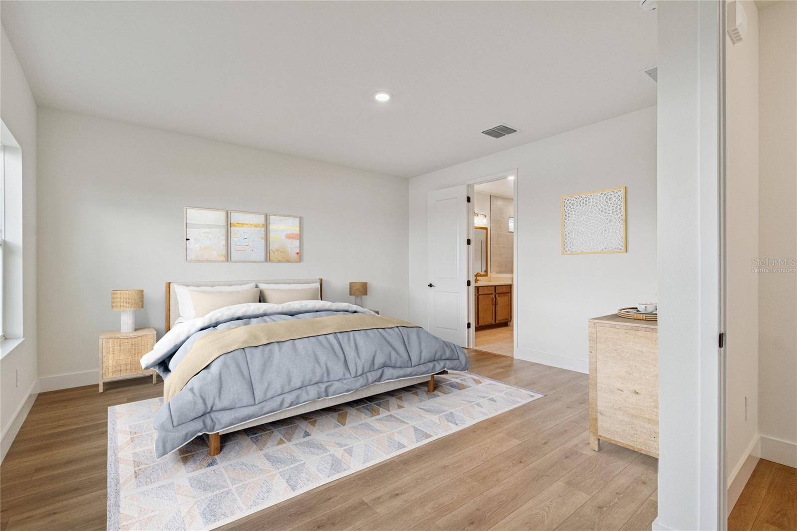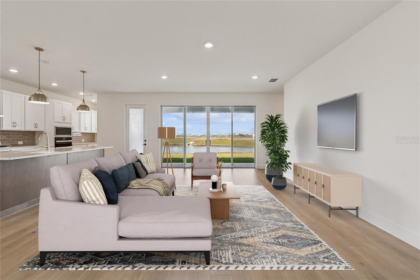 Welcome to The Gilbert, a beautifully designed single-story home by David Weekley Homes, offering 3,008 square feet of comfortable and stylish living space. This well-appointed floorplan features 4 spacious bedrooms, 3 full bathrooms, and a 4-car garage, perfect for car enthusiasts, storage needs, or creating a home workshop. Inside, the home includes a private office for quiet productivity and a dedicated TV room—ideal for cozy movie nights or entertaining on game day. The Owner’s Retreat is tucked at the rear of the home, providing peaceful views of the backyard pond and a spa-like bath complete with an upgraded super shower. Design features throughout the home include laminate flooring, quartz countertops, champagne bronze hardware, and designer tile in all wet areas, blending timeless elegance with modern function. Located in the new Coasterra community in Palmetto, FL, residents will enjoy access to exceptional community amenities and the natural beauty of nearby walking trails, perfect for enjoying the Florida lifestyle. Whether you're looking for space to grow or a comfortable forever home, The Gilbert offers the perfect balance of luxury, practicality, and serene surroundings.