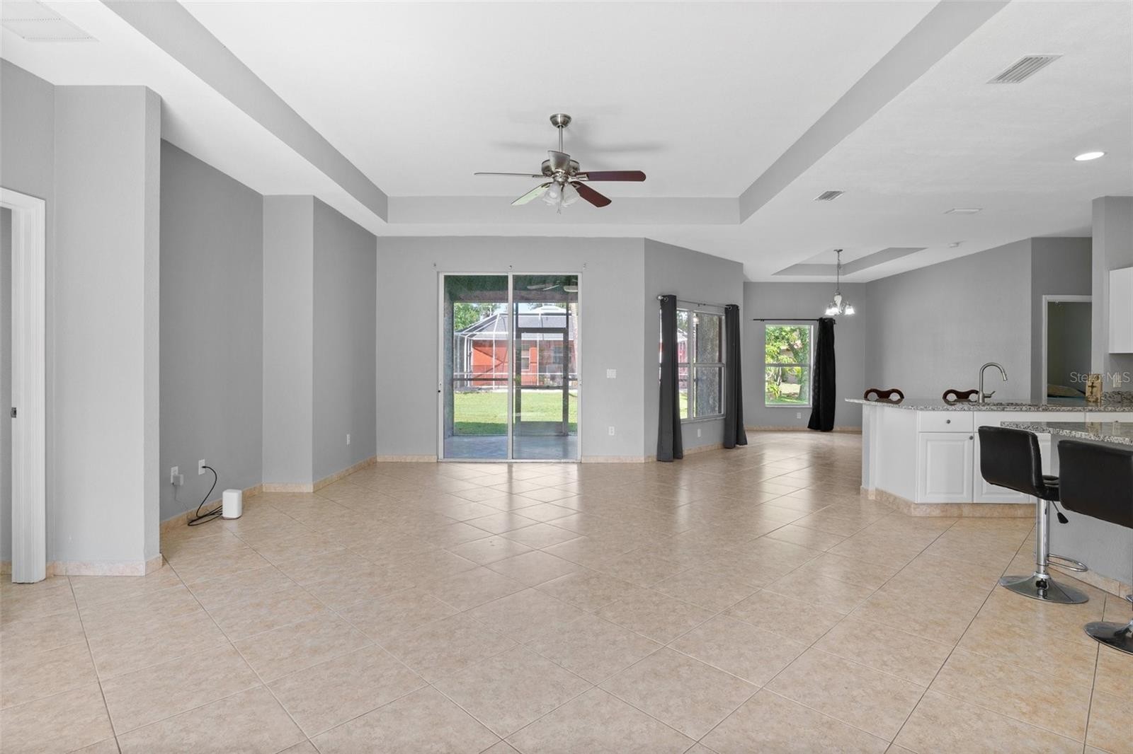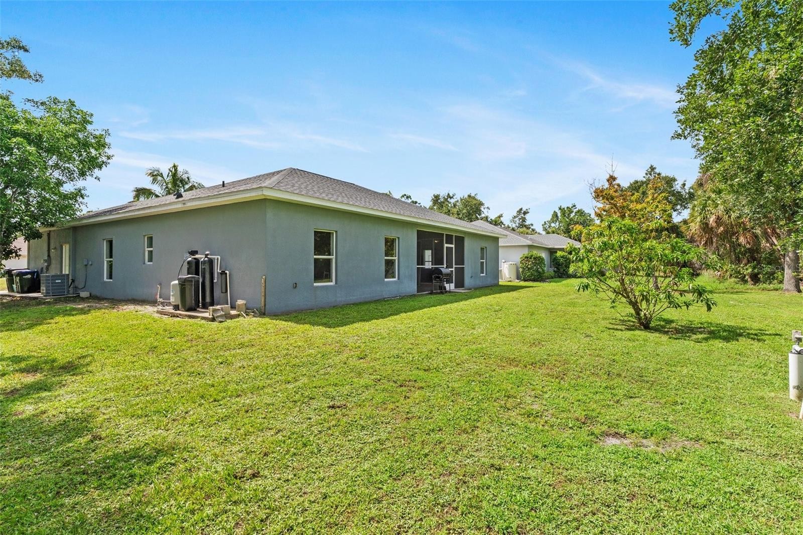 One or more photo(s) has been virtually staged. Located in the growing community of North Port, FL this well maintained home has many recent updates! Walk into the open floor plan adjoining the living room, kitchen and dining area. The spacious living room has an abundance of natural light, with a sliding glass door to access the screened in patio and backyard. The kitchen has new granite countertops and beautiful white cabinets. Eat in kitchen, where you can pull up a chair to the island or the extended counter top by the sink! Just off the kitchen is the dining area with large windows where you can enjoy outdoor views. Spit floor plan offers privacy! The large primary bedroom has a sliding glass door to access the screened in patio. Remodeled 5 pc en-suite primary bath includes new cabinets with granite counter tops and new flooring. On the other side of the home are 2 more bedrooms with a 2nd full bathroom in-between. The 2nd bath has new cabinets with quartz counter tops and new flooring. 10' ceilings! Tray ceilings in the living room, dining room and primary bedroom add depth and visual interest. Ceiling fans and tile floors throughout the home! *New roof 2023 *New AC *New water heater *New water system. No HOA! Not in a flood zone!! Close to shopping, dining, beaches and outdoor activities! Great for seasonal or full-time living!!