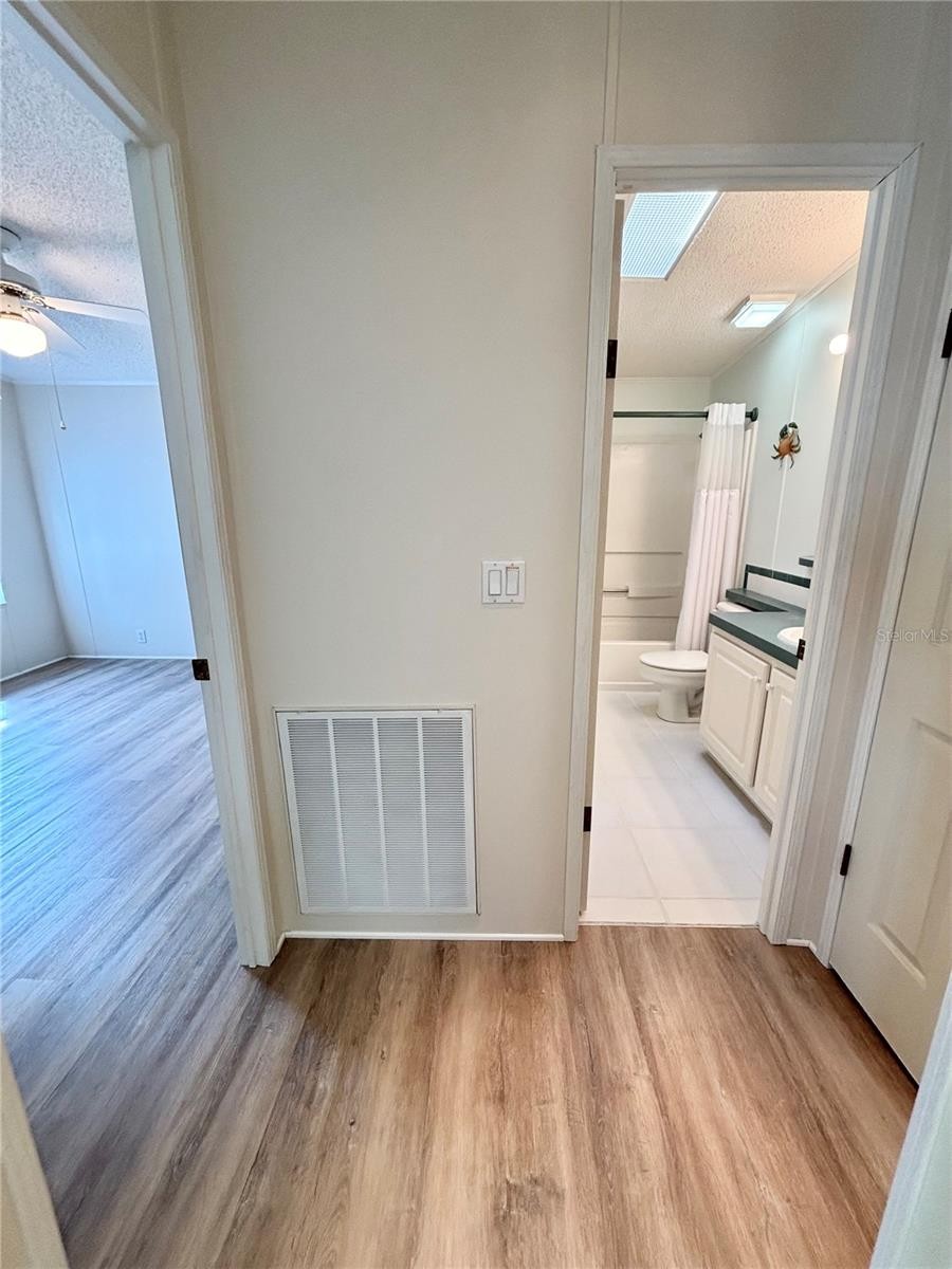 New Price AND NEW FLOORING! Welcome to Riverwalk a community nestled in nature alongside the trees, water and wildlife including access to them via fishing dock, canoe/kayak launch and walking trails so you can enjoy them. This home offers a lake front location giving lots of privacy, a great view and the rare opportunity to fish from a lake in your back yard. NO FLOODING. Interior has just been freshly painted and NEW LUXURY VINYL LAMINATE FLOORING is in living room and both bedrooms! The fully furnished kitchen, dining room, casual dining and living room, are complemented by newer kitchen appliances, granite countertops, and ceramic tile flooring. Enjoy abundant natural light from cathedral ceilings, skylights, and clerestory windows, creating a bright and open living space. NEW oversize Florida room 20x12 or 240 sq ft in addition to the home area square footage of 1312 sq ft. NEW SHINGLE ROOF 2023 giving you peace of mind for years. AC 2019. Doublewide carport 21x32x14x32 The community offers you not only a premier 55+ community with its active lifestyle and beautiful waterfront setting; it also INCLUDES an OWNERSHIP SHARE in the CO-OP. (CHATTEL mortgages only for this community) Residents enjoy access to the pristine Myakka River, walking trails, heated pool, shuffleboard, tennis and pickleball courts, fitness center, and a wide range of social activities in their newly remodeled clubhouse. Low maintenance fee $270/month includes mowing, basic cable and internet and all amenities. Relax in the new Florida room with glass and screened windows overlooking the lake; perfect for year-round enjoyment. Additional highlights include a NEW SHINGLE ROOF 2023 giving you peace of mind for years, generous closet space, and a washer and dryer included for added convenience. Outdoor features include an open patio for sun and fun adjacent to the Florida room, a large storage shed with electric, and a deep double-wide carport. Well located community convenient to all the shopping, restaurants, area beaches, baseball spring training in North Port and Wellen Park/Venice. A wonderful opportunity to enjoy comfort, space, and scenic lake views. Make this your winter nest or year round living today!