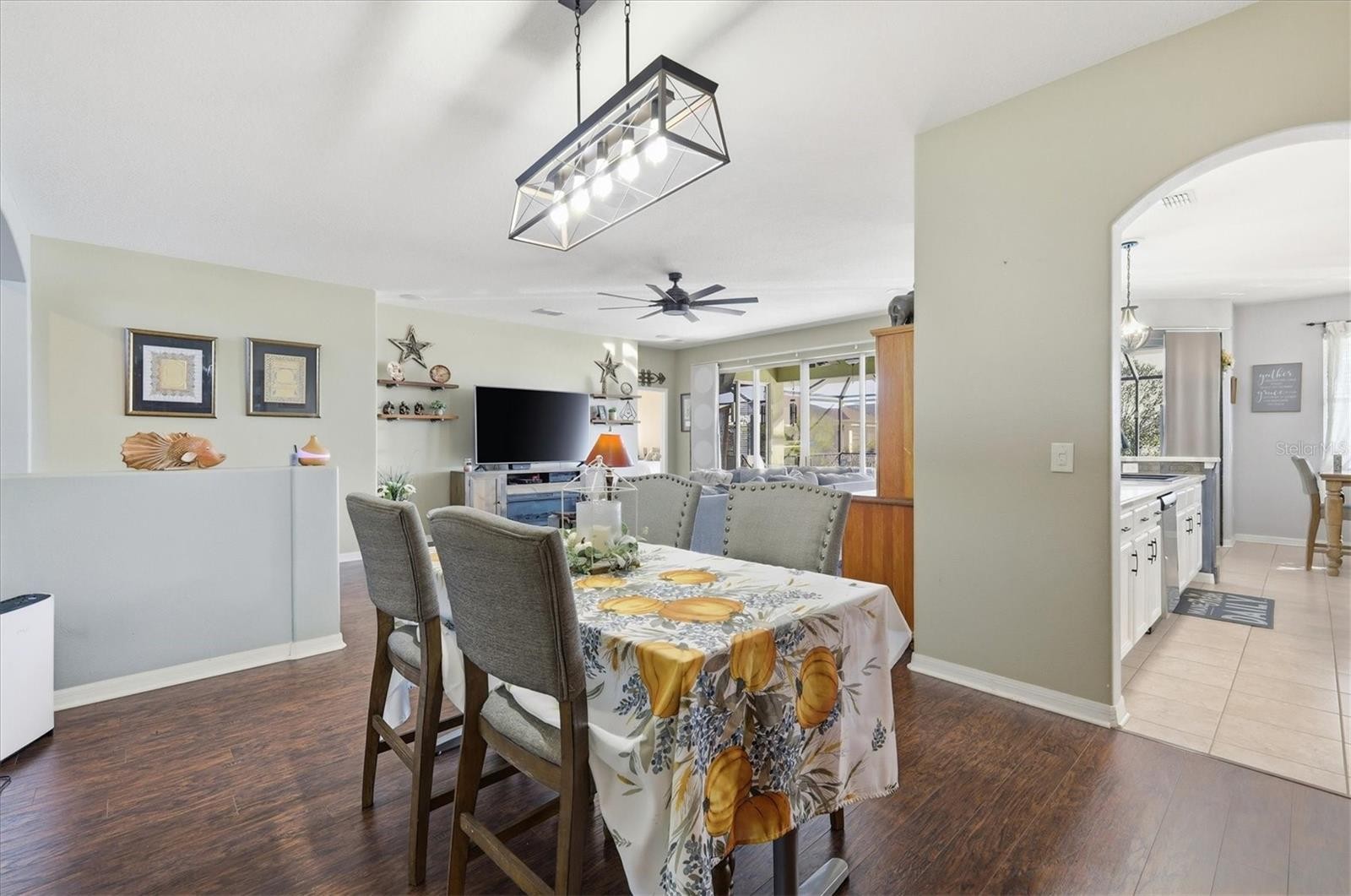 Gorgeous 4-Bedroom + Bonus Room Pool Home with Serene Water Views in River Plantation. Discover resort-style living in this spacious 3,120 sq ft single-family gem boasting 4 bedrooms, 3 full bathrooms, and a versatile bonus room—ideal for a home office, gym, media room, or extra guest space. Situated on a prime west-facing lot, the home captures breathtaking sunrises over peaceful water views, perfect for unwinding in the screened lanai or enjoying golden-hour glow by the pool. Enter through a large, welcoming foyer into an expansive, open-concept floor plan where the living room truly serves as the heart of the home—great for everyday living and entertaining. Major updates provide peace of mind: new roof (2024), hurricane-impact windows, new lighting fixtures and ceiling fans throughout, plus a full-house water softener for effortless maintenance. The chef's dream kitchen is a standout, featuring freshly painted 42" cabinets, newer stainless steel appliances, durable epoxy countertops, a chic slate tile backsplash, a large island perfect for prep and casual meals, and two generous closet pantries. The adjacent oversized dining area flows seamlessly for hosting gatherings large and small. Step outside through the center-opening sliding patio doors to your private paradise: a covered and screened lanai overlooking tranquil water views, a resort-style chlorine pool (installed 2021) for year-round enjoyment, and a premium outdoor kitchen with a $10K Blaze grill, mini-fridge, and ample entertaining space. The oversized, fully fenced backyard offers privacy, room for play, pets, or gardening. Privacy is key with the split-bedroom layout. The spacious primary suite includes a direct private access to the screened lanai, and a huge walk-in closet. The luxurious en-suite bath features a double-sink vanity, garden soaking tub, walk-in shower, and separate water closet. Two guest bedrooms share a convenient hall bath, while the fourth bedroom offers its own private en-suite bathroom—perfect for visitors, multigenerational living, or a teen suite. An interior laundry room with utility sink adds daily ease. Nestled in the established River Plantation community (NO CDD fees and low HOA!), enjoy resort-like amenities without the extras: clubhouse, community pool, basketball court, tennis/pickleball courts, playground, nature trails, and kayak/canoe launch. Prime location minutes from the Ft. Hamer boat ramp, A-rated schools, vibrant Creekside Commons (Lowe's, HomeGoods, Crunch Fitness, Panera), Ellenton Premium Outlets, and easy I-75 access to Sarasota/UTC, St. Petersburg, Tampa, and pristine Gulf beaches. Modern upgrades, thoughtful design, abundant space, and unbeatable Florida outdoor living— this west-facing beauty won't last long!!