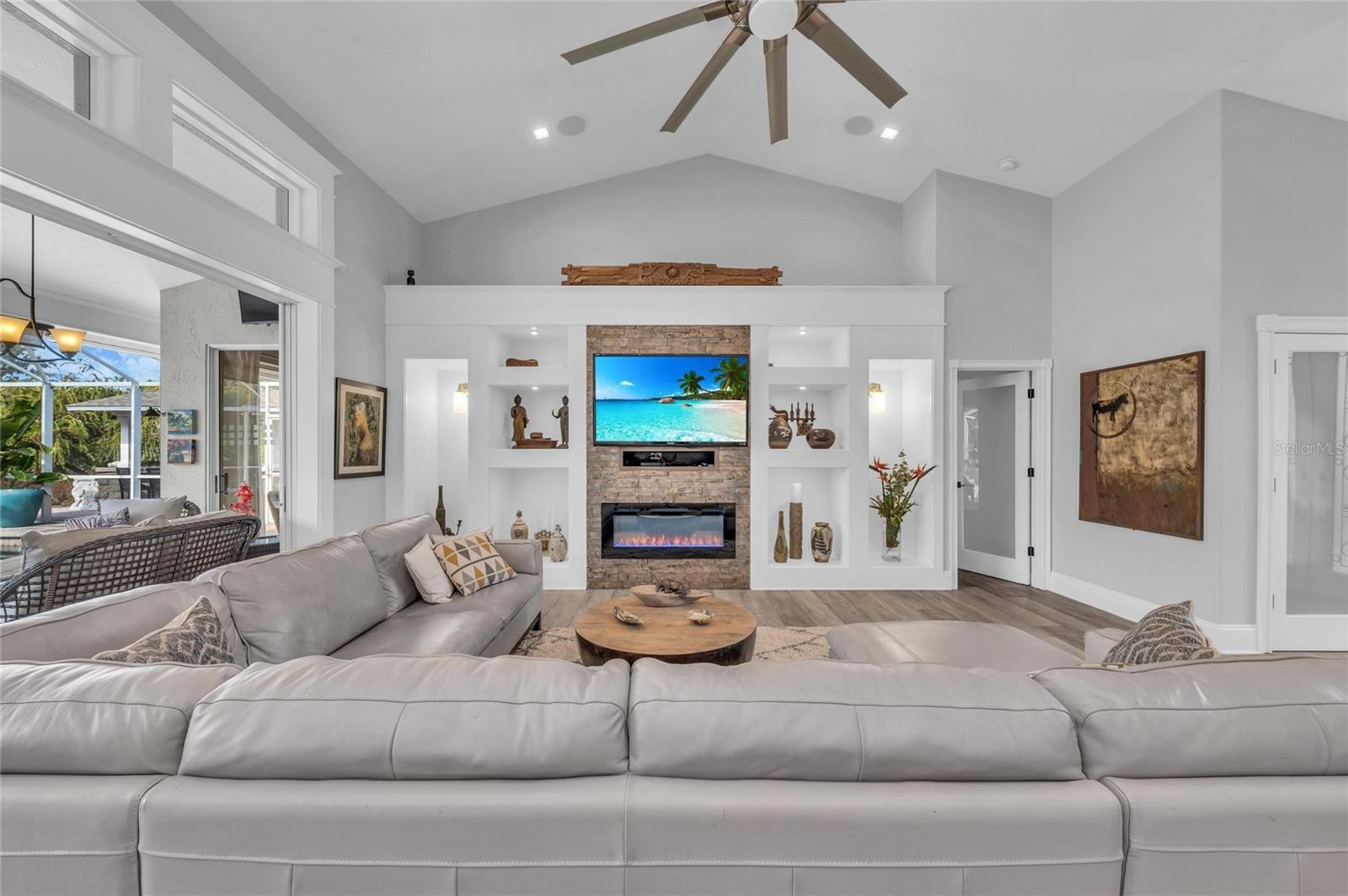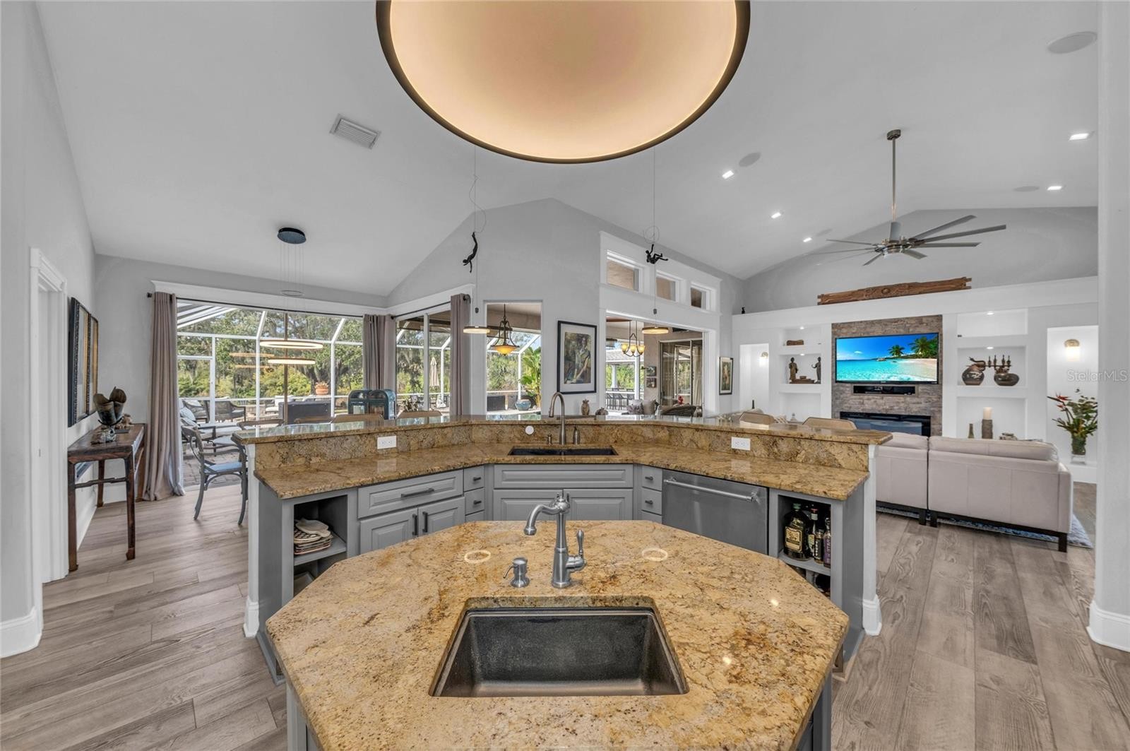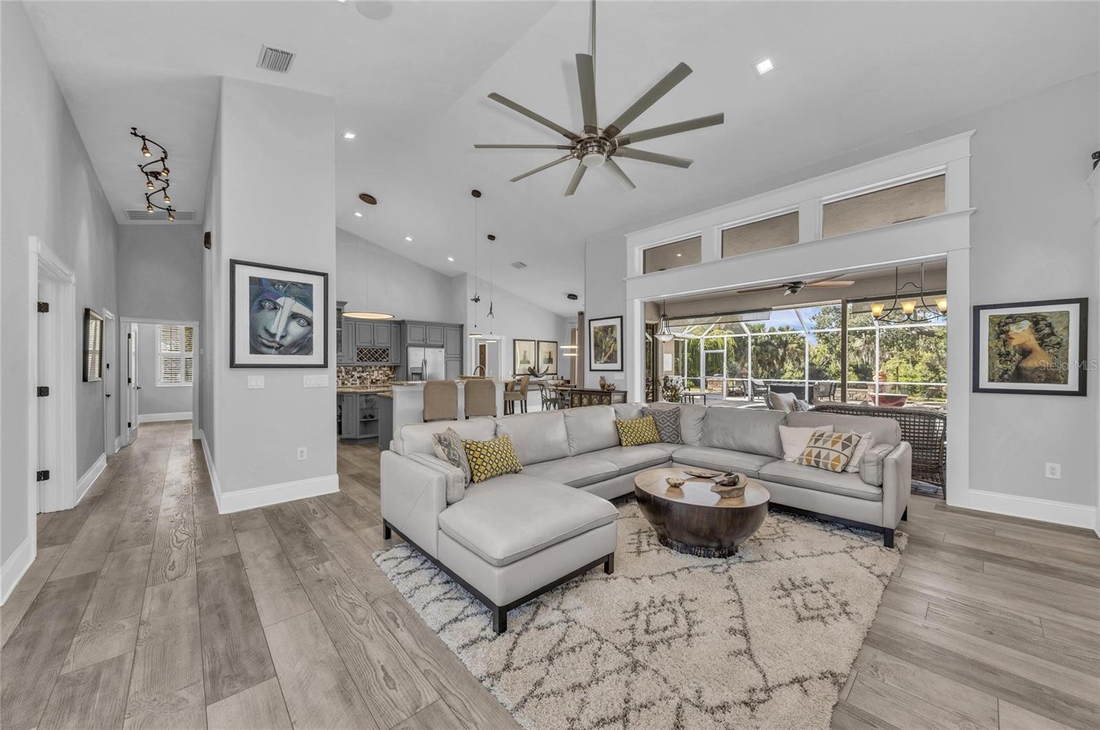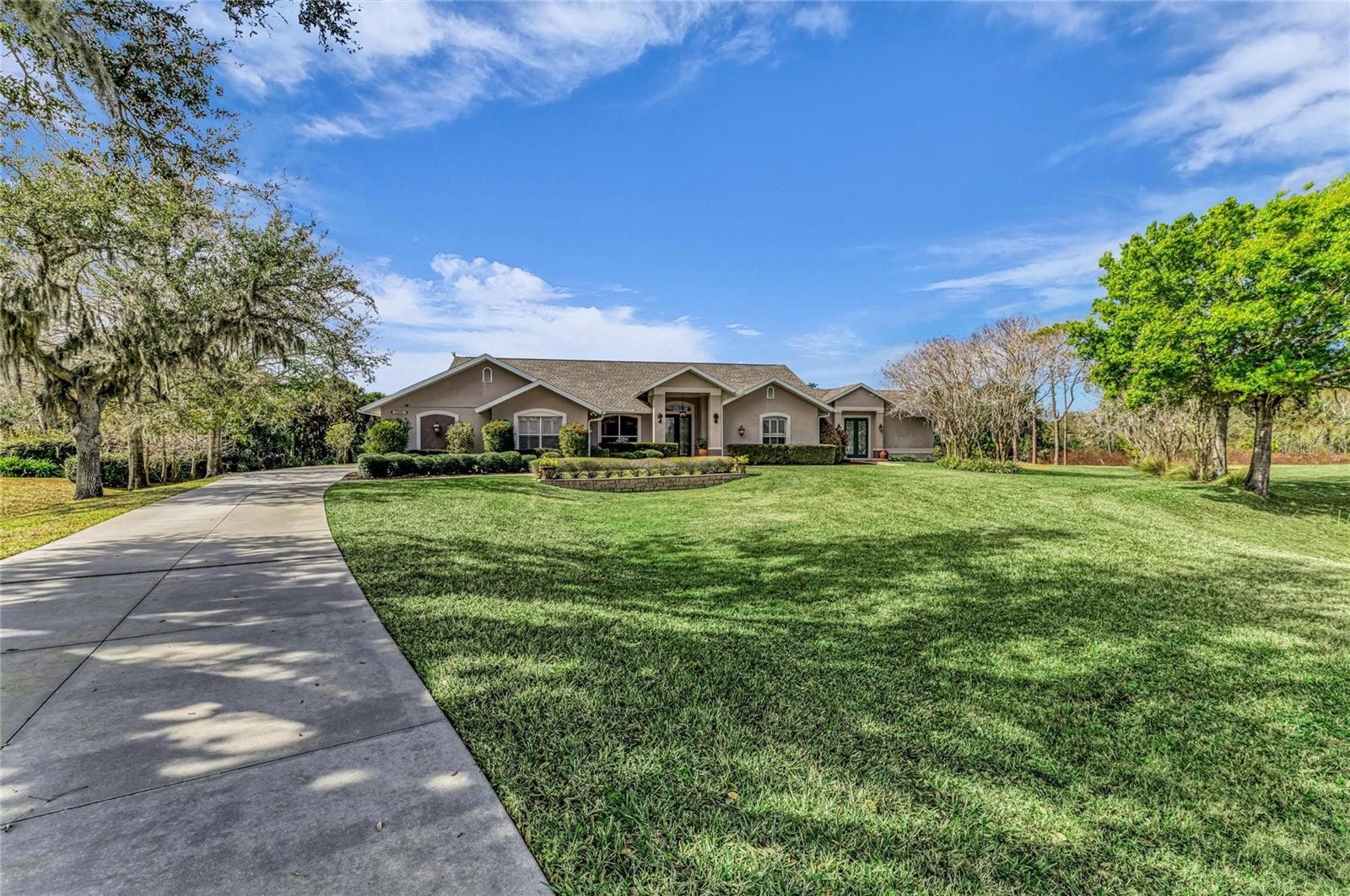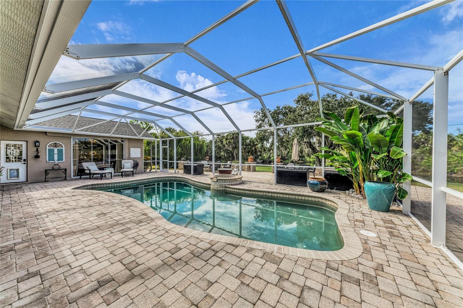 SARASOTA FL: Private Oak Ford retreat on 2 acres with pond, pool, outdoor kitchen, separate studio, and brand-new major upgrades with new roof— is a true hidden sanctuary. Tucked at the end of a quiet Oak Ford Golf Club cul-de-sac, this fully remodeled private estate offers rare serenity with two full acres of total enjoyment — one acre owned plus a perpetual, exclusive-use easement that conveys to future owners. The backyard feels like a nature preserve, alive with birdlife, a glowing pond with water fountain, and a private fishing dock that creates a peaceful, one-of-a-kind setting. Inside, soaring ceilings and abundant natural light showcase extensive renovations throughout, including new flooring, designer lighting, glass interior doors, upgraded entry doors, a renovated den, and 2 electric fireplaces in both the living room and primary suite. The home features 3 bedrooms, 3 full baths, generous storage, a 2-car garage, a brand-new roof, and two new water heaters for complete peace of mind. The modern kitchen is both beautiful and functional with granite countertops, dual sinks, and abundant cabinetry, complemented by a formal dining room just off the kitchen. Outdoor living is extraordinary. Enjoy a large, screened lanai, resort-style pool with fountain, pergola-covered outdoor kitchen with grill, pizza oven, and bar seating, plus an extended veranda with built-in fire pit and expansive paved entertaining areas designed for unforgettable gatherings. A separate 865± sq ft studio built in 2021 features a private entrance, impact windows, full bath, and kitchenette-ready sink — ideal for guests, a home office, gym, or creative retreat. This move-in-ready estate is a rare opportunity to own a private sanctuary in Oak Ford, where nature, luxury, and flexibility come together in perfect balance.