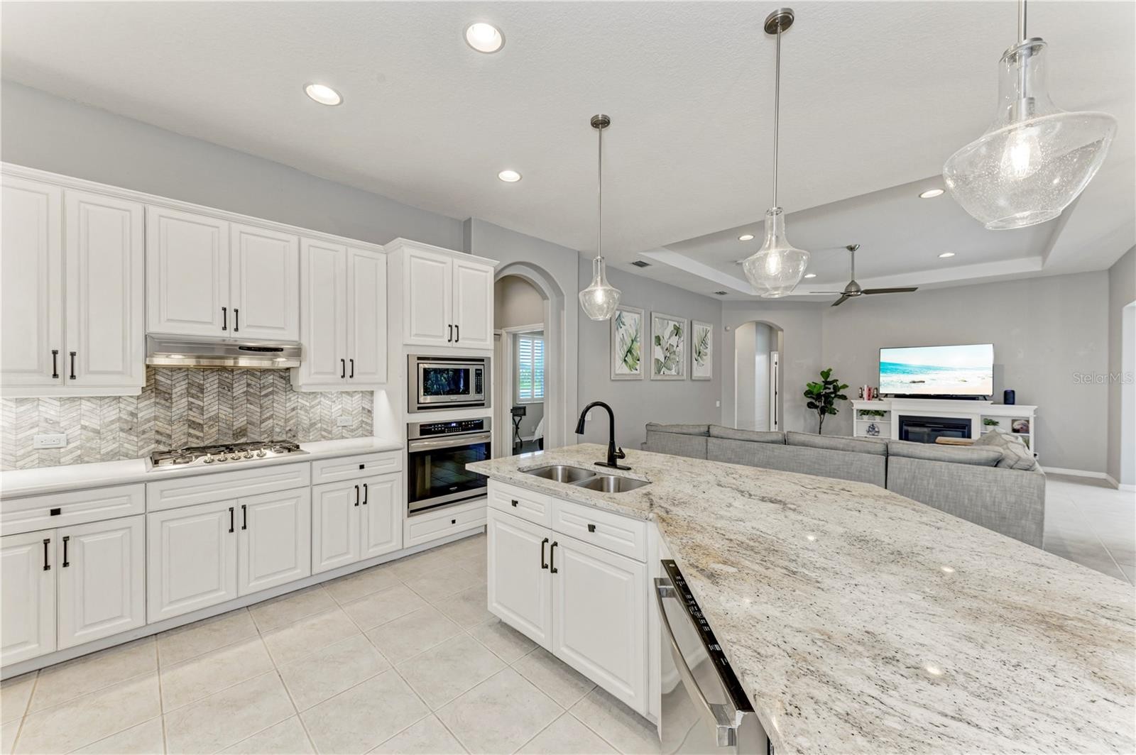 MOTIVATED SELLERS and PRICE ADJUSTED TO SELL!!! Enjoy the best of Florida living in this meticulously maintained home located in the desirable gated community of Greyhawk Landing. This 4-bedroom, 3-bath, 3-car garage residence sits on a beautifully landscaped 0.37-acre corner lot and offers 2,739 sq. ft. of elegant living space, offering timeless design, modern updates, and resort-style outdoor living. Built in 2006, this home has been lovingly updated with tasteful finishes and modern features that make it truly shine. The expansive primary suite feels like a private retreat with pool access, a gorgeous en-suite bath featuring custom vanities, a frameless shower with hand-held and rain fixtures, travertine flooring, and dual sinks with granite counters and LED lighting. The split floor plan provides privacy, with three additional spacious bedrooms located on the opposite side of the home—ideal for family or guests. The elevated kitchen is a showstopper with stainless steel appliances, double oven, gas range, oversized island with sink, and a dishwasher tucked conveniently out of view. A walk-in pantry with wood shelving and a generous laundry room with custom cabinetry, granite folding station, ironing area, and laundry sink add both function and style. The spotless three-car garage includes a tankless water heater, water softener, two storage racks, and a Generac generator. Step outside through multiple access points, including sliding glass doors from the family room equipped with a remote-controlled privacy shade, and discover the home’s true centerpiece—your private pool and fully equipped outdoor kitchen. Designed for year-round enjoyment, this space includes a Bull grill and outdoor fridge, stainless steel sink and faucet, bar seating, and stacked stone finishes. Enjoy serene views, breathtaking sunsets, and a fenced yard perfect for pets or play. Set within the desirable, 24-hour manned, gated community of Greyhawk Landing – known for its scenic lakes, nature trails, and peaceful surroundings. Residents enjoy two resort-style pools (including a newly renovated splash area), a fitness center, tennis and basketball courts, soccer and baseball fields, playgrounds, and community events such as parades, food trucks, and holiday celebrations. This one truly has it all - schedule your showing today!