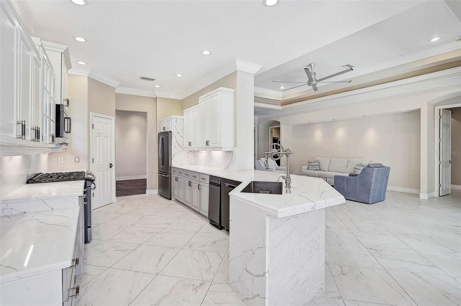**IMPRESSIVE, MOVE-IN READY, POOL HOME in the Secure and Coveted OAKS PRESERVE, MAINTENANCE-FREE COMMUNITY** This residence boasts an open floor plan that is ideal for entertaining, along with a screened and spacious outdoor pool area that provides privacy and overlooks a nature preserve. Recent updates include a new kitchen, bathrooms, flooring, fans, a four-year-old roof, a newly pavered driveway, and hurricane-rated patio and bedroom doors. All living areas have wood floors or Italian porcelain tile. The kitchen features a gas stove, Waterworks faucet, quartz countertops, modern stainless appliances, and solid wood cabinetry. The breakfast nook adjacent to the kitchen has aquarium glass windows offering a view of the pool and foliage. The family room glass doors stack behind the wall, providing views of the pool and preserve, and they are hurricane-rated. The owner's suite includes two walk-in closets, a linen closet and space for a sitting area or office. Hurricane-rated glass doors overlook the pool. There is a separate study/office/bedroom with built-in wood cabinetry and space and wiring for a media room. The guest suite has an ensuite bath updated with Quartz counters and a vessel sink. Enjoy the utmost in outdoor living with a stunning, PebbleTec POOL with Travertine deck while there is ample space for a spa or additional seating within the spacious screened lanai. Connections for an outdoor kitchen are also available. A beautiful new pavered driveway adds that special curb appeal. In addition to the metal, roll down hurricane shutters, there is an electric hurricane protective screen spanning the lanai area to protect outdoor furniture. The extra deep two car garage affords additional storage options. A collection of unique bougainvillea and crepe myrtle rounds out the gardens. This lot is located outside the FEMA flood zone Bishops Court in The Oaks Preserve is a 24-hour guard-gated community with walking and biking paths. Additionally, there is a year-round heated community pool nearby. THE OAKS is a distinguished, 24hr Guarded, Country Club Community which boasts many accolades including: Platinum Club of America, Emerald Club of the World, Elite Distinguished Club of the World and One of America’s Healthiest Clubs - where amenities include Three Restaurants, Ballroom, Two 18-hole championship GOLF courses, award-winning RACQUETS program with 12 Har-Tru Hydro-Grid TENNIS courts, 4 PICKLEBALL Courts, wonderful CROQUET facility, state-of-the-art FITNESS center and junior Olympic, heated community SWIMMING POOL, Bocce, Basketball Court, Playground and more! The Oaks is just minutes from nationally ranked Pine View School, the Legacy Bike Trail, area Beaches and all that Gulf Coast living has to offer. Membership is required and there is NO WAITLIST for GOLF or SOCIAL Membership. **PLEASE ENJOY VIEWING the 3D VIRTUAL TOUR**