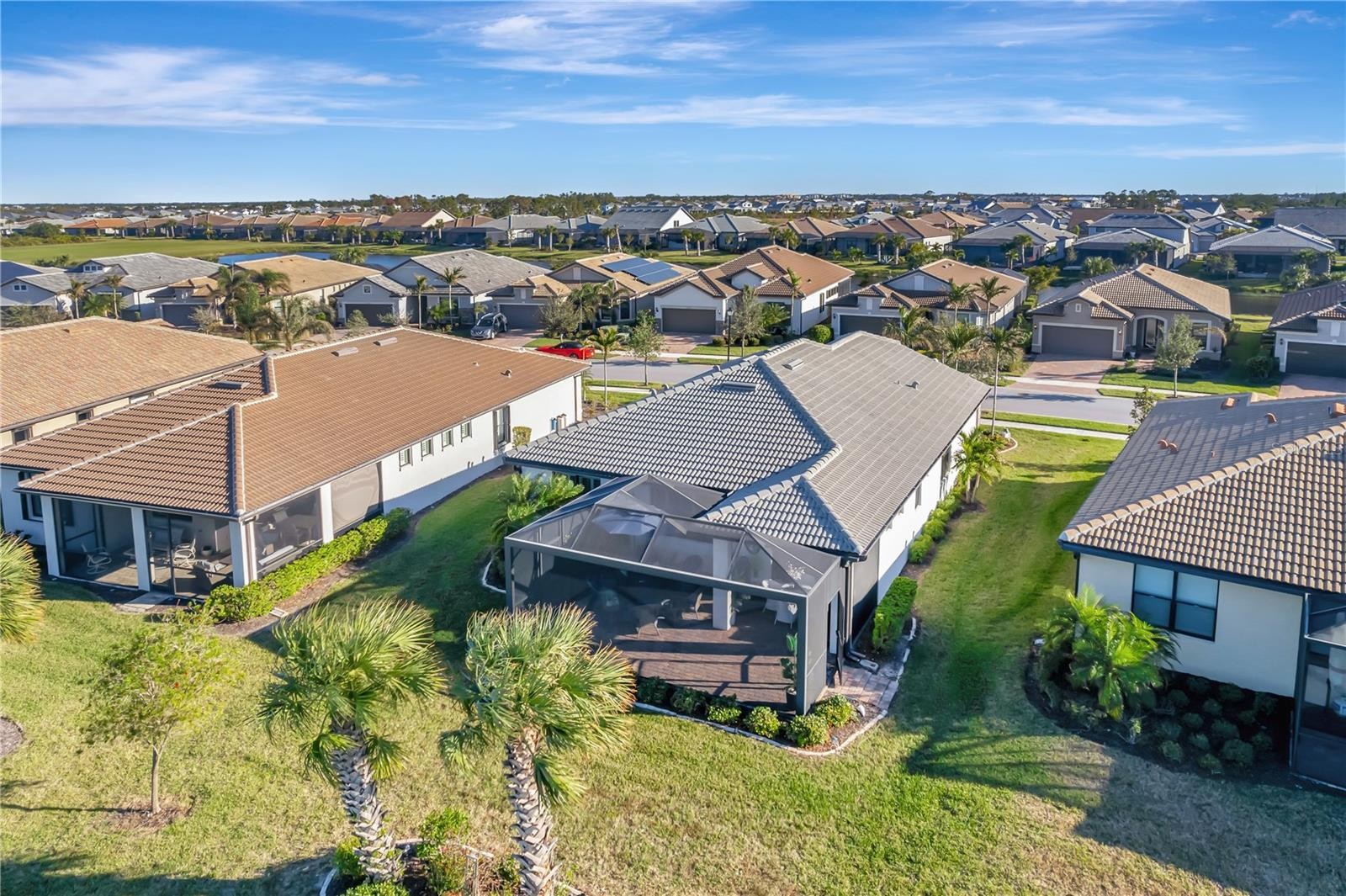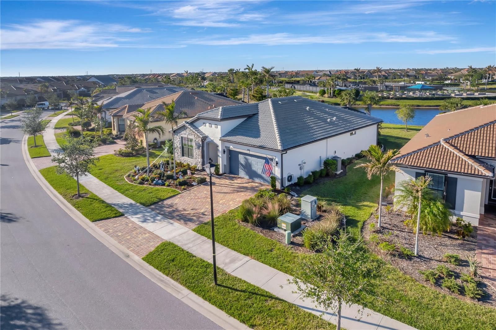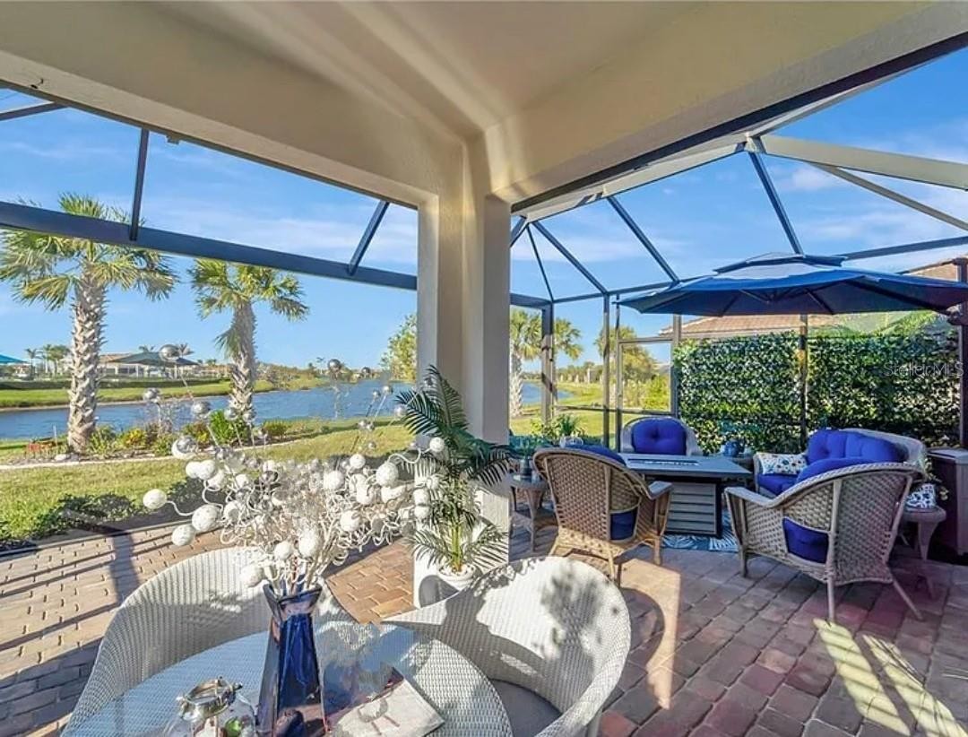 STUNNING ABBEYVILLE MODEL HOME WITH GORGEOUS WATER VIEWS IN ISLANDWALK, WELLEN PARK, FL. Discover your dream home in Venice, FL, with this beautifully upgraded 3-bedroom (2 bedrooms plus a den that can be used as a 3rd bedroom with a closet across the hall). This Abbeyville model is located in the highly desirable IslandWalk at Wellen Park community. From the moment you step in, you'll appreciate the modern elegance and thoughtful design, enhanced by BREATHTAKING WATER VIEWS from the back patio and extended lanai. This move-in-ready home features plantation shutters, 8-ft doors, and a retractable-screen front door for breezy cross-ventilation during cooler months. The home boasts diagonal ceramic tile flooring throughout, a gourmet kitchen with custom pull-out cabinets, quartz countertops, premium appliances, a stylish backsplash, and an ECOWATER FILTRATION SYSTEM for the entire home. Thoughtful touches like accent walls in the master and guest bedrooms, ceiling fans in every room, and a custom barn door separating the laundry and storage areas elevate the home’s charm. The garage offers convenience with pull-down aluminum stairs, two suspended shelves, and a lift storage platform. The highlight of this home is the 20 x 27 ft extended screened lanai, where you can relax and take in stunning water views, perfect for tranquil mornings or colorful Florida sunsets. The lanai also includes a pull-down sunshade on the west side for added comfort from the hot sunny days. IslandWalk is a gated community offering resort-style amenities such as 12 lighted pickleball courts, 8 Har-Tru tennis courts, 3 pools, 2 fitness centers, bocce courts, event spaces, scenic walking paths, a DOG PARK, and picturesque canals. Situated in Wellen Park, this 830-acre master-planned community provides convenient access to dining, shopping (Costco, Publix), and outdoor recreation, making it a top choice in Venice, FL. Don’t miss the opportunity to own this exceptional water-view home in an award-winning community. Schedule your private showing today and experience the perfect blend of luxury, convenience, and serene living!