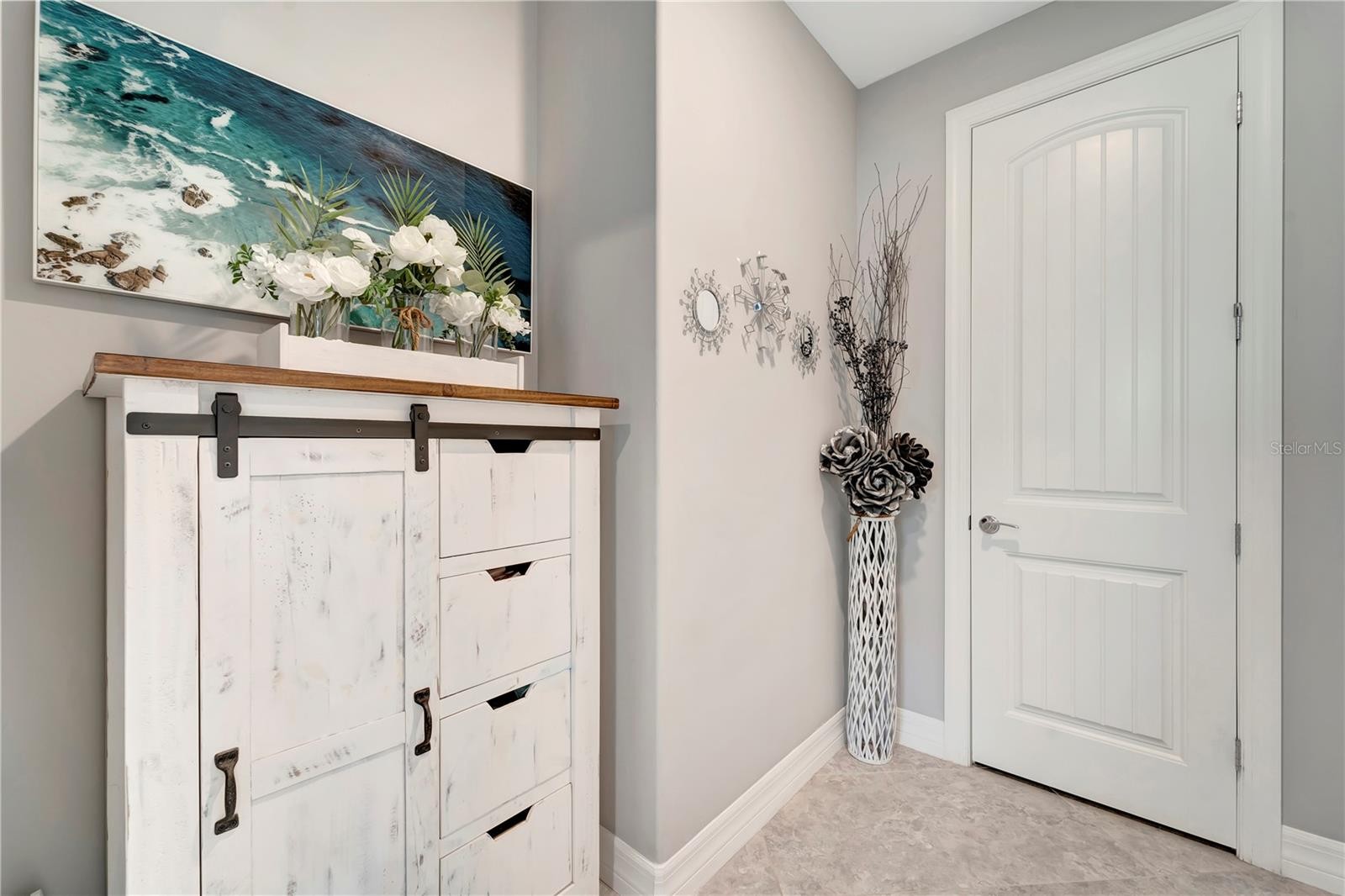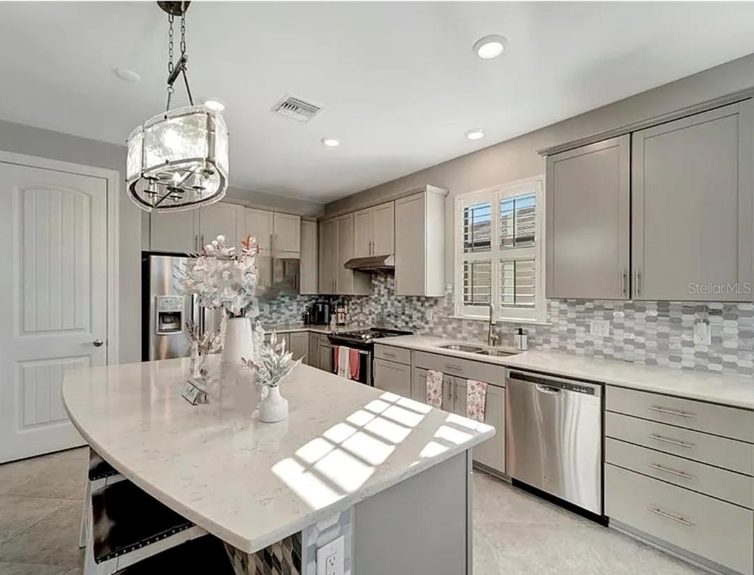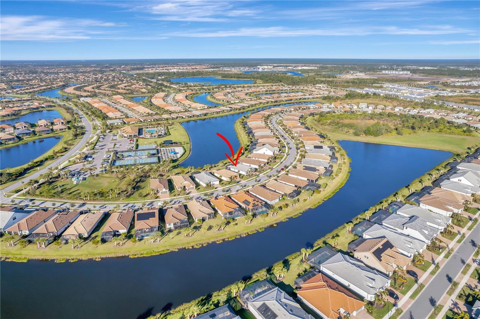 STUNNING ABBEYVILLE MODEL HOME WITH GORGEOUS WATER VIEWS IN ISLANDWALK, WELLEN PARK, FL. Discover your dream home in Venice, FL, with this beautifully upgraded 3-bedroom (2 bedrooms plus a den that can be used as a 3rd bedroom with a closet across the hall). This Abbeyville model is located in the highly desirable IslandWalk at Wellen Park community. From the moment you step in, you'll appreciate the modern elegance and thoughtful design, enhanced by BREATHTAKING WATER VIEWS from the back patio and extended lanai. This move-in-ready home features plantation shutters, 8-ft doors, and a retractable-screen front door for breezy cross-ventilation during cooler months. The home boasts diagonal ceramic tile flooring throughout, a gourmet kitchen with custom pull-out cabinets, quartz countertops, premium appliances, a stylish backsplash, and an ECOWATER FILTRATION SYSTEM for the entire home. Thoughtful touches like accent walls in the master and guest bedrooms, ceiling fans in every room, and a custom barn door separating the laundry and storage areas elevate the home’s charm. The garage offers convenience with pull-down aluminum stairs, two suspended shelves, and a lift storage platform. The highlight of this home is the 20 x 27 ft extended screened lanai, where you can relax and take in stunning water views, perfect for tranquil mornings or colorful Florida sunsets. The lanai also includes a pull-down sunshade on the west side for added comfort from the hot sunny days. IslandWalk is a gated community offering resort-style amenities such as 12 lighted pickleball courts, 8 Har-Tru tennis courts, 3 pools, 2 fitness centers, bocce courts, event spaces, scenic walking paths, a DOG PARK, and picturesque canals. Situated in Wellen Park, this 830-acre master-planned community provides convenient access to dining, shopping (Costco, Publix), and outdoor recreation, making it a top choice in Venice, FL. Don’t miss the opportunity to own this exceptional water-view home in an award-winning community. Schedule your private showing today and experience the perfect blend of luxury, convenience, and serene living!