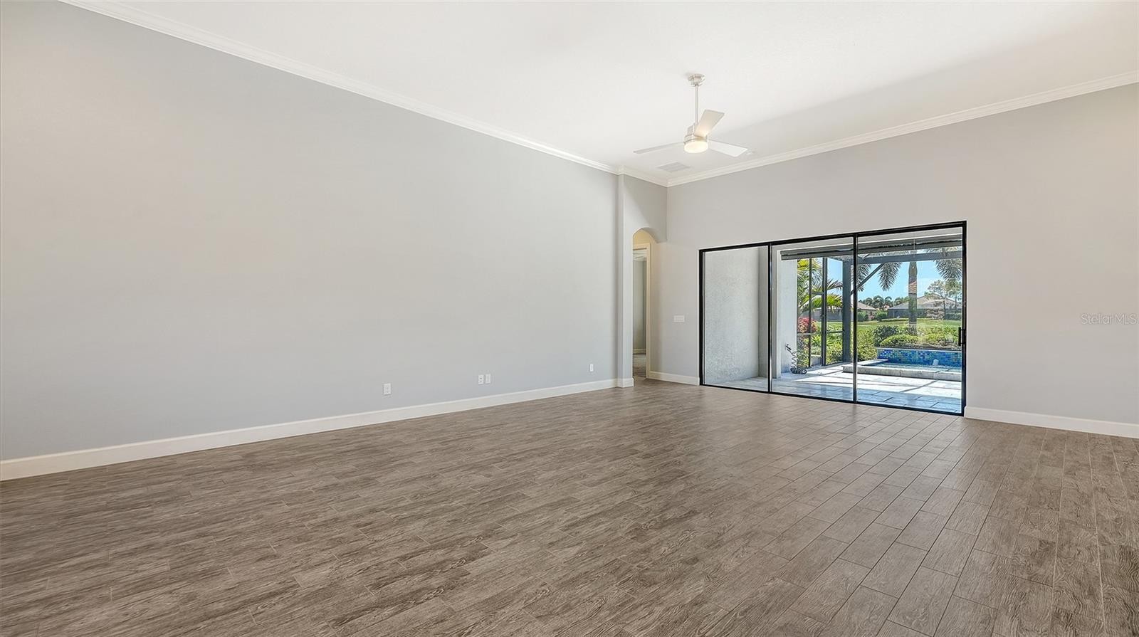 Lowest Priced Home in Esplanade Golf and Country Club with golf membership included!! Offering one of the most compelling values in the community, this elegant Cararra floor plan showcases 3 bedrooms, 2.5 baths, and a thoughtfully designed 2-car garage with 8 foot extension—ideal for your golf cart or additional storage. A welcoming private courtyard sets the tone for relaxed sophistication, providing a tranquil space to savor morning coffee or bask in Florida’s sunshine. Inside, the home unfolds into a beautifully appointed open-concept layout where the expansive great room seamlessly connects to a formal dining space and a chef-inspired gourmet kitchen. Here, you’ll find gleaming quartz countertops, premium stainless steel appliances, a spacious breakfast bar, walk-in pantry, and an inviting dinette for casual dining. The primary suite is a serene retreat, featuring dual walk-in closets and a spa-like ensuite bath adorned with quartz-topped dual vanities and a generous walk-in shower. Two well-appointed guest bedrooms share an adjoining bath, offering comfort and privacy for visitors. Step outside to your private outdoor oasis—complete with a sparkling pool with pool jets and panoramic screened enclosure enhanced by Kevlar hurricane protection. Enjoy peaceful golf course vistas framed by lush, mature landscaping, creating a sense of both privacy and natural beauty. Ownership includes a full golf membership, granting access to Esplanade’s world-class amenities and vibrant resort lifestyle. Residents enjoy an 18-hole championship golf course, multiple clubhouses, resort-style pools and spas, fitness centers, tennis and pickleball courts, bocce ball, and a full-service spa and salon. Culinary experiences await at the Bahama Bar & Grill and Barrel House Bistro, while a dynamic social calendar curated by an on-site lifestyle director ensures there’s always something to enjoy. This maintenance-free, guard-gated community is ideally positioned near the best of the region, including Lakewood Ranch Main Street, Waterside Place, UTC Mall, and closeness to downtown Sarasota and Bradenton. World-renowned Gulf Coast beaches such as Siesta Key, Lido Key, Longboat Key, and Anna Maria Island are just a short drive away. This is more than a home—it’s an elevated lifestyle defined by luxury, leisure, and effortless elegance.