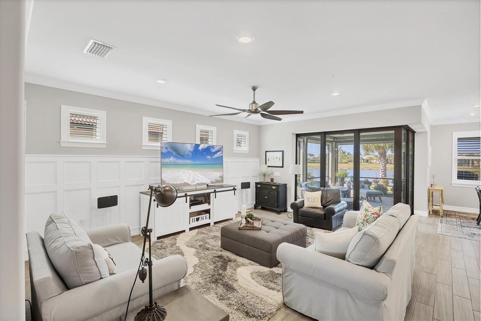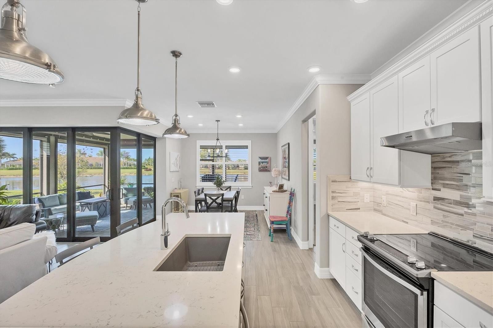 UNFORGETABLE! Describe this "most popular" SUMMERWOOD floor plan located in the OUTSTANDING community of ISLANDWALK. This home is a SPECTACULAR offering that WON'T LAST LONG. From the outside curb appeal to all the high end options the seller has put together a masterpiece that screams perfection. Before you even step inside, the pavered driveway and sidewalk leads up the Gorgeous leaded glass front door. Don't forget to stop and admire all the extra tropical landscaping put in, sparing no expense. The minute you walk inside you will see this METICULOUSLY taken care is the one for you. Starting with the latest style in neutral decor tones and crown molding. Stroll by the extremely spacious DEN/OFFICE with glass front French doors and arrive at the truly MAGNIFICENT HEART OF THE HOME. The open floor plan brings together the kitchen, living room, and dining space. ZERO CORNER POCKET DOORS enhance the space by opening everything up to the SPACIOUS AND ENHANCED LANAI overlooking GORGEOUS LAKE VIEWS AND VIBRANT SUNSETS! Back inside, the GOURMET kitchen offers QUARTZ Counter tops, 42 inch Cabinets, TILE BACKSPLASH, STAINLESS STEEL appliances, FARMERS SINK, PENDANT LIGHTING, and EXTRA RECESSED LIGHTING. Walk in pantry has CUSTOM SHELVES. SOFT CLOSE kitchen drawers. Bead Board in front of Island. Large living space with enhanced with Board and Batten designed wall. PLANK TILE flooring throughout the main area of home. PLANTATION SHUTTERS on all the windows. Master bedroom with tray ceiling has en suite bath offering dual sinks and walk in shower with Tile to the Ceiling. NEW CARPET. Large walk in closet. Guest bath at other end of the home for privacy with same high end choices.. SEPARATE DEN/OFFICE with BUILT IN SHELVING, TRAY CEILING and CUSTOM SHIP LAP WALL. Heading out to the garage you will find a custom designed entryway bench for taking off your shoes and hanging your coats and hats. 2 car garage with extension adding room for your golf cart, toys, storage, or whatever your needs might be. 3 4x8 heavy duty storage racks. Garage door is insulated to reduce heat. EPOXY FLOOR FINISH. PARTIALLY FINISHED ATTIC WITH PULL DOWN STAIRS. Huge laundry room with tons of space for extra storage or adding more shelves. Wash sink in laundry for those really dirty jobs. Upgraded rounded corners throughout. Upgraded fans and fixtures. NOT DONE YET!! Don't worry about hurricanes, home has IMPACT RESISTANT WINDOWS WITH STORM SMART SCREEN ON LANAI AND FRONT DOOR. Islandwalk is a Premier resort style community offering 2 Clubhouses with swimming pools/spa and fitness centers, 12 lighted pickleball courts,8 Har Tru tennis courts, bocce ball, Dog Park and 2 activities directors coordinating tons of activities/social events. Designed w/ the outdoors in mind- walking paths and bridges flow throughout the community amidst the tropical landscape. Located minutes to Manasota Beach, Venice Beach, shopping, and Venice Downtown with its quaint shops, restaurants, and theatres. Plus just around the corner from the Atlanta Braves stadium and spring training camp, the NEW WELLEN PARK designed community with tons of restaurants, shops, and activities, The 80 acre Grand Lake with numerous outdoor water activities and walking trails. Back gate is now open for easy access to enjoy all the activity choices outside of Islandwalk. RUN, RUN, RUN, DON'T WALK. Don't miss out- this is the new upcoming PLACE TO BE!!! Start living your Florida Lifestyle Today!!