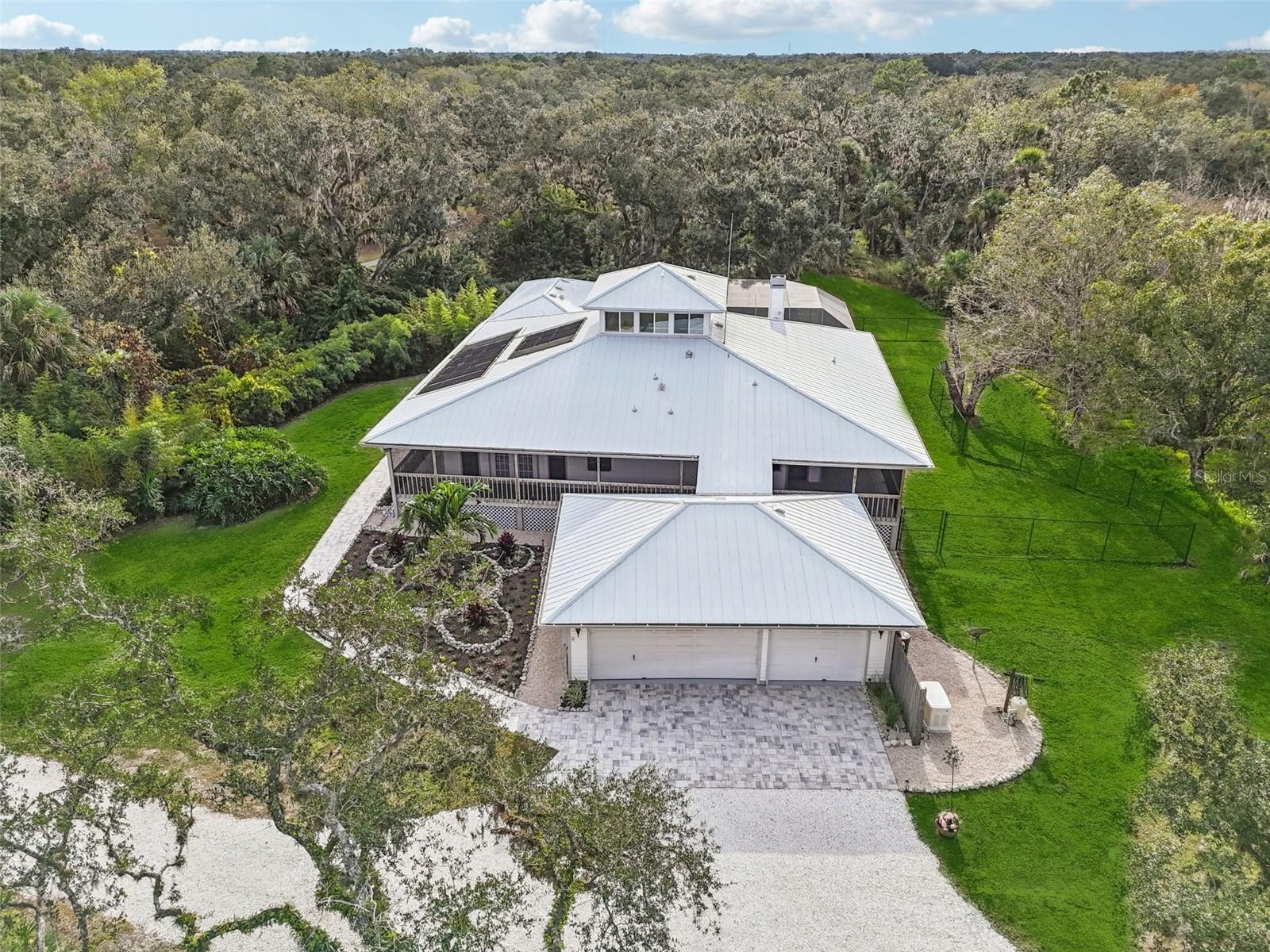 Nestled amid stunning natural surroundings, this classic Southern-style estate offers a serene family retreat where refined living meets everyday tranquility. Positioned just 9 miles east of I-75, the residence rests within Oak Ford, an intimate community of roughly 80 custom homes, each set on 5-acre parcels woven into more than 400 acres of protected nature preserve. Life here unfolds in harmony with the landscape, framed by wildlife sanctuaries, shimmering lakes, and quiet, tree-canopied streets. A gated country driveway sets the tone as you make your way down to this timeless plantation-style home. The full wraparound porch embraces the residence, granting peaceful views and easy outdoor access from nearly every room. Inside, the great room welcomes you with vaulted ceilings and an expansive open living area designed for gathering. A staircase leads to an upstairs bonus room, ideal as a home office, billiards room, or cozy retreat. The beautifully remodeled kitchen serves as the heart of the home, featuring a center island with seating, abundant cabinetry, and newer stainless appliances including double wall ovens, dishwasher, and a windowed refrigerator. The dining area overlooks the backyard and pool, creating a seamless indoor-outdoor connection. Adjacent, the den/family room offers a warm backdrop for daily living with its wood-burning fireplace and sliders that open to the porch. The thoughtful split-floor plan places the primary suite on one side of the home for ultimate privacy. Bright and airy, the suite features French doors to the porch, two separate walk-in closets, and a newly renovated primary bathroom. Two guest bedrooms sit on the opposite side, tucked behind a pocket door for quiet separation. For added peace of mind, there is a new generator w/5 yr warranty fueled by a 250 gal propane tank, impact windows upstairs and hurricane shutters for downstairs, new AC w/10 yr warranty, metal roof 2011, kitchen remodel and appliances 2020, beautiful new luxury vinyl flooring throughout and a recent pump out and inspection of the septic system. The 3-car garage has been freshly finished and doubles as the perfect workshop or hobby space with its light-filled bays. Outdoors, the property invites endless relaxation and recreation with a sparkling pool, expansive deck space, and multiple areas for dining, lounging, and play. A charming cabana with a full bath offers an ideal guest hideaway or potential 4th bedroom. Residents of Oak Ford enjoy low HOA fees and convenient proximity to Lakewood Ranch, University Town Center, the Sarasota Audubon Nature Center, Mote Marine, and Downtown Sarasota’s cultural offerings. Within 30 minutes, explore Myakka State Park, Lido Beach, and Siesta Key Beach for world-class outdoor adventures.