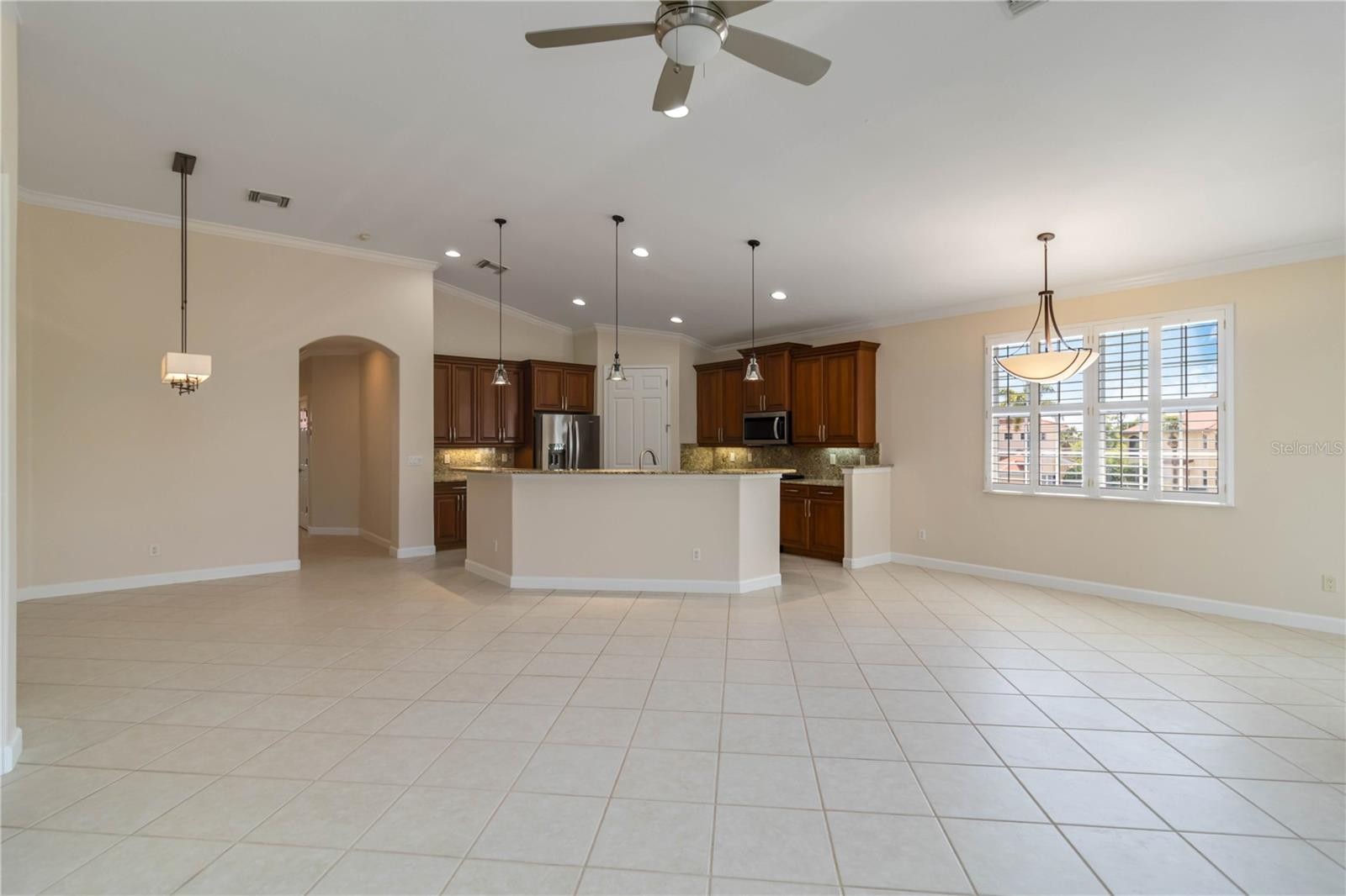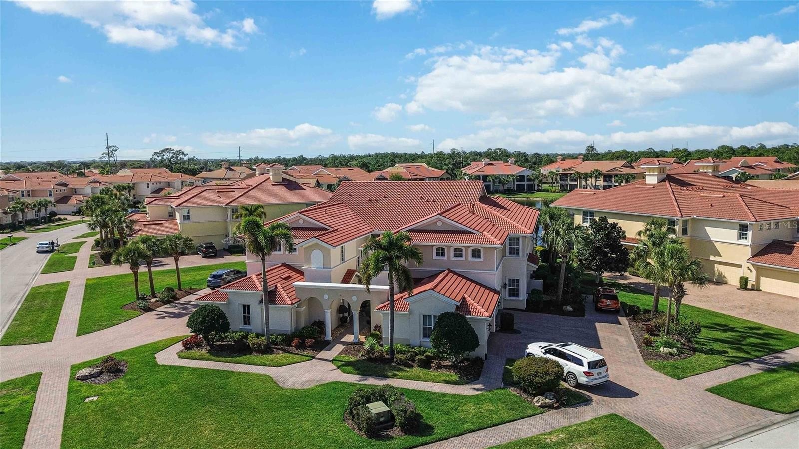 One or more photo(s) has been virtually staged. Impeccable Second-Floor Carriage Home in the Venetian Golf & River Club. Welcome to this beautifully maintained and lightly lived-in Monaco floor plan, offering 2,326 square feet of thoughtfully designed living space in the highly sought-after Venetian Golf & River Club. This second-floor carriage home showcases exceptional attention to detail with custom upgrades throughout. Enjoy modern tile flooring, new luxury vinyl flooring in bedrooms, elegant crown molding, plantation shutters on all windows, and stylish custom lighting and ceiling fans that enhance the home’s comfortable ambiance. The spacious split-bedroom layout features 3 bedrooms plus a versatile den, 2 full bathrooms, a separate laundry room, and multiple oversized closets. Storage is abundant, including generous interior space and a two-car attached garage with additional attic storage. At the heart of the home, the open-concept kitchen is perfect for entertaining, featuring granite countertops, wood cabinetry, and stainless-steel appliances. The seamless flow into the living and dining areas creates an inviting space for gatherings or relaxed everyday living. Embrace the ease of maintenance-free living, with the exterior of the home fully maintained by the association. Impact-resistant windows and sliding glass doors provide added peace of mind. For ultimate convenience, the home is equipped with a private elevator—making second floor living effortless and accessible. Step outside to your private screened lanai, where you’ll enjoy tranquil lake views with a fountain, breathtaking sunsets, and a peaceful, private setting—perfect for morning coffee or evening relaxation. Residents of the Venetian Golf & River Club enjoy a secure, gated lifestyle with an impressive array of amenities. The community borders the scenic Myakka River and features a 70-acre nature park. Optional membership is available for the 18-hole, par-72 championship golf course. Additional amenities include six Har-Tru tennis courts, 3 pickleball courts, a life-style director, a fitness center, exercise studio, resort-style pool and lap pool, the River Club, tiki bar, and a beautifully renovated full-service banquet facility. Ideally located near Sarasota Memorial Hospital, I-75, Gulf Coast beaches, and the charming downtown areas of Venice and Sarasota, this home offers both convenience and an exceptional Florida lifestyle. Schedule your private showing today—this one won’t last!