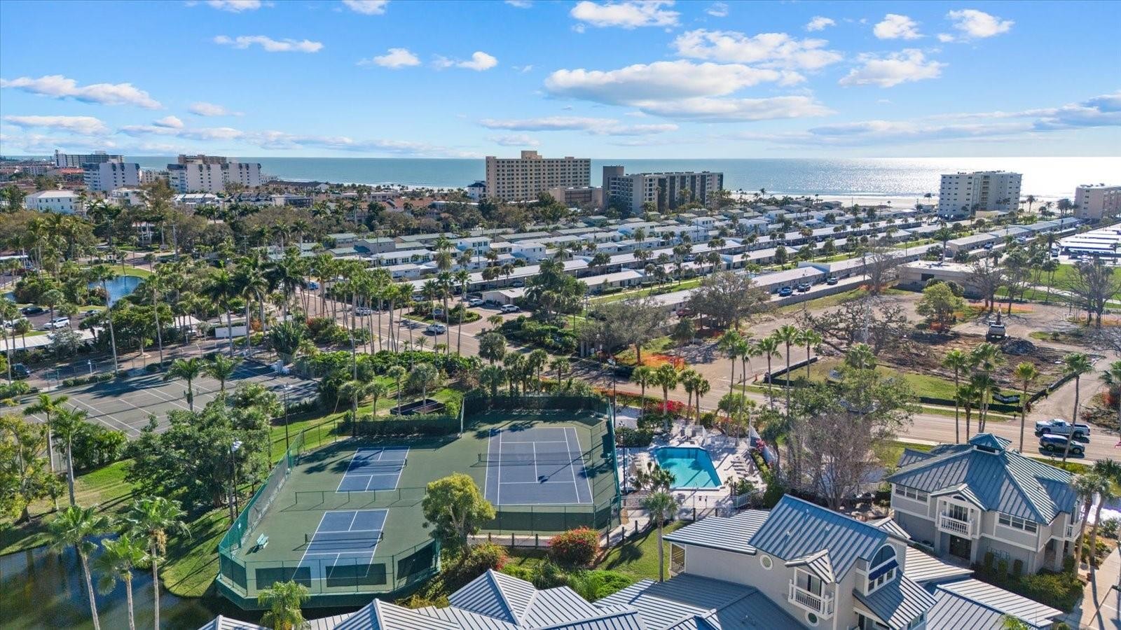 Turnkey furnished and beautifully updated, this ground-level 2-bedroom, 2-bath residence in Gulf & Bay Club Bayside offers an exceptional blend of comfort, convenience, and Siesta Key lifestyle. Lightly lived in and meticulously maintained, the interior features a renovated kitchen with stainless steel appliances, solid stone countertops, breakfast bar seating, recessed lighting, custom tray ceiling detail, and an open connection to the main living area that enhances both everyday living and entertaining. Large-format tile flooring runs throughout the main living spaces, while both bathrooms have been tastefully updated with stone counters and tiled shower surrounds. The spacious primary suite offers a relaxing retreat with direct access to the screened lanai, and the guest bedroom is well appointed for family and visitors. Coastal furnishings and decor create a true move-in-ready presentation. The oversized screened lanai expands the living space and provides a peaceful setting surrounded by tropical landscaping, with the community walking path just outside leading to the Intracoastal fishing area, tennis and pickleball courts, and the second pool. Ideally positioned within the community, this residence is also just a short distance to the clubhouse, fitness center, BBQ area, and main pool. Owners and guests enjoy deeded beach access through Gulf & Bay Club across the street, placing world-famous Siesta Beach just a short stroll away. Siesta Beach is currently the No. 1 beach in the U.S. in TripAdvisor's 2025 Travelers' Choice Awards, and Sarasota County provides free trolley service connecting Siesta Key Village, Siesta Beach, South Village, and Turtle Beach. The location also offers convenient access on and off the island, with nearby Siesta Key Village offering shopping, dining, and the relaxed island atmosphere that makes this area so desirable. A private garage completes the package. Whether sought as a personal retreat, seasonal escape, or investment opportunity, this updated Gulf & Bay Club Bayside residence is an outstanding opportunity on Siesta Key.