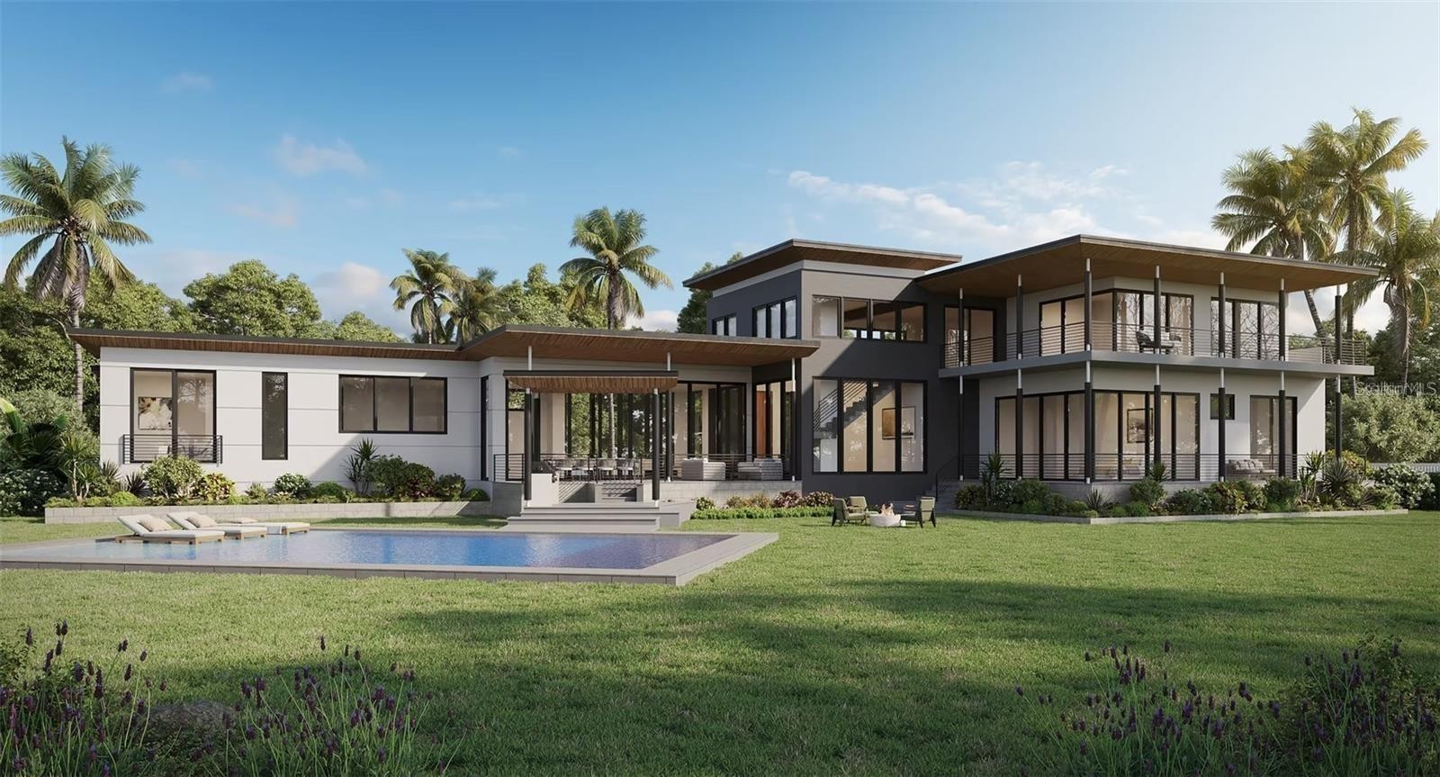 Exceptional Harbor Acres modern residence offering 5 bedrooms, including a sunroom converted by the owners into a true 5th bedroom (closet and A/C). Warm contemporary design with seamless indoor-outdoor living. Located in Harbor Acres, one of Sarasota’s most coveted neighborhoods, this exceptional modern residence delivers a rare blend of warm contemporary design, luxury finishes, and seamless indoor-outdoor living. Perfectly scaled for the neighborhood, the open floor plan is flooded with natural light and effortlessly blurs the line between inside and out. The great room features 8-ft pocketing sliders opening to the covered lanai, anchored by a gas fireplace with illuminated floating shelves. The chef’s kitchen is a showpiece with top-of-the-line Miele appliances, solid wood cabinetry, an expansive quartz island, LED lighting, and a butler’s pantry for effortless entertaining. A separate dining room with picturesque windows offers an inviting setting for intimate gatherings, while the adjoining family room provides a relaxed space to unwind. The first-floor primary suite is a serene retreat with walls of windows overlooking lush tropical foliage and a spa-inspired bath featuring a soaking tub and glass shower. A dedicated office/flex room is conveniently located on the main level. Owners thoughtfully converted the sunroom into a 5th bedroom, offering added flexibility for guests or multigenerational living. Sleek open-riser stairs lead upstairs to two en-suite bedrooms providing privacy and comfort.