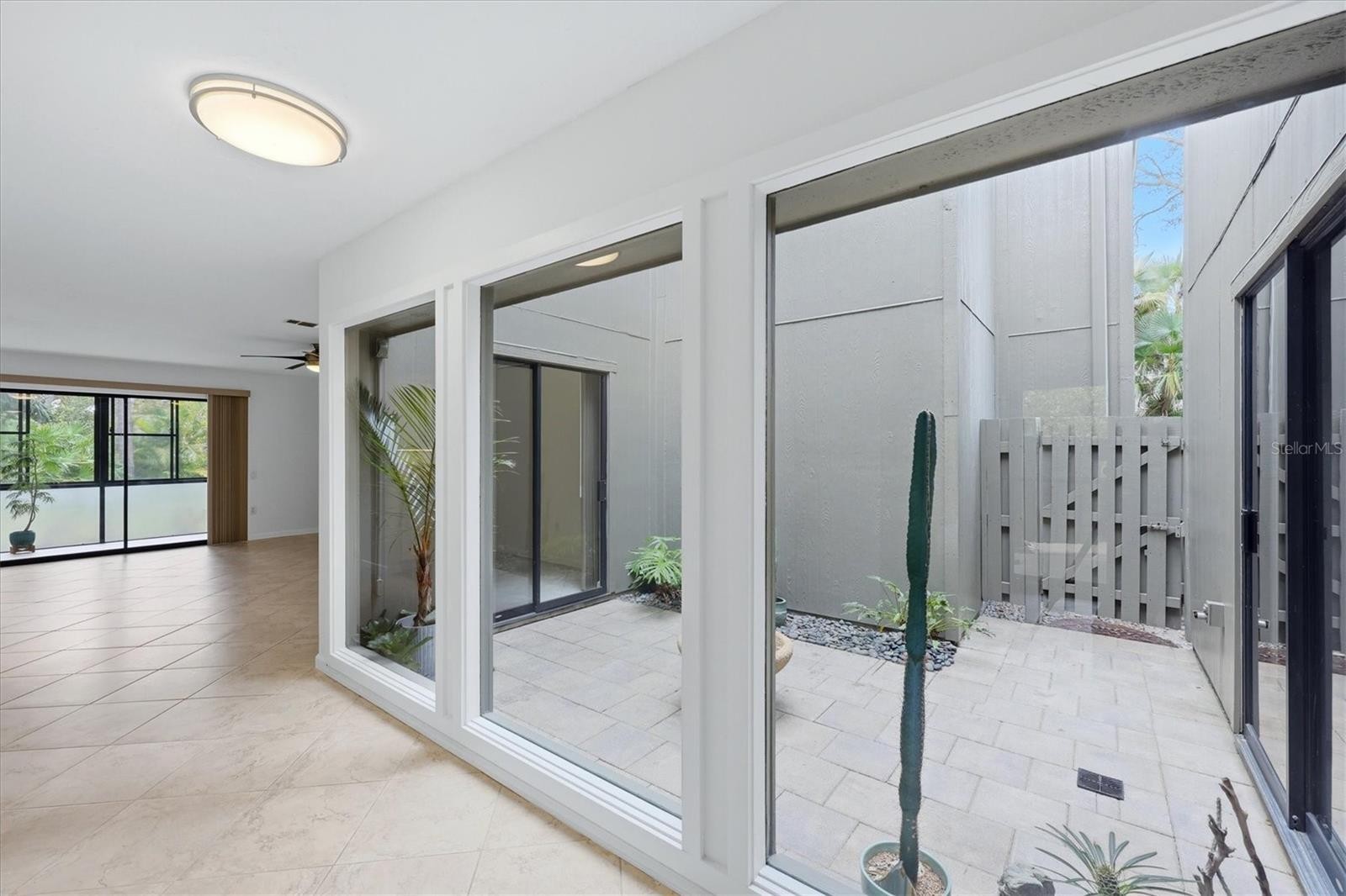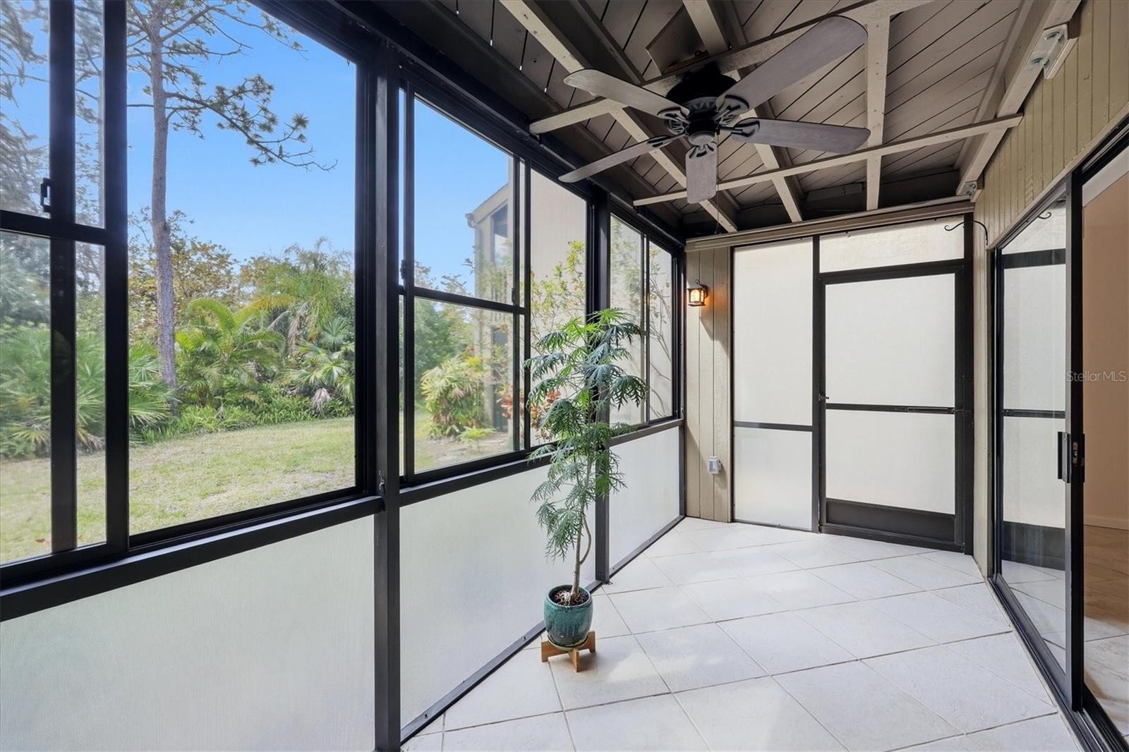 Ideally located in the heart of Osprey, this private corner, first floor condo offers effortless Florida living just minutes from pristine Gulf beaches and less than half a mile from the Intracoastal Waterway. The sought after community at the entrance to Casey Key was designed to live in harmony with nature by Frank Folsum Smith of the Sarasota School of Architecture. This unit features a garden view with four patios that includes a rear lanai enclosed with sliding vinyl windows. A unique inner atrium with aquarium style glass windows adds architectural interest and abundant natural light while maintaining privacy. The unit features easy to maintain custom tile floors on the diagonal throughout with wood floor inspired ceramic tiles in the bedrooms. Since 2023, unit updates include all new kitchen appliances, new faucets, new PEX water lines, a new water heater as well as new paint inside and out. The unit also includes a deeded carport parking space and two storage closets. Onsite resort style amenities include two heated pools (one overlooking a lagoon), two cedar saunas, a fitness room, Florida style clubhouse, walking trails, BBQ gas grill, outdoor gas fireplace, kayak storage, pickleball and tennis courts. Within a mile is the Pine View School (the only standalone public gifted school in the state), Oscar Scherer State Park, 2 kayak launches, a public boat ramp, Casey Key Fish House, Walmart and a Post Office. Easily walk to Publix, Ace Hardware, CVS, shops and restaurants or bike to the Legacy Trail and Nokomis Beach. Exceptional privacy, easy access, and a premier location make this residence an outstanding opportunity. Priced to sell!