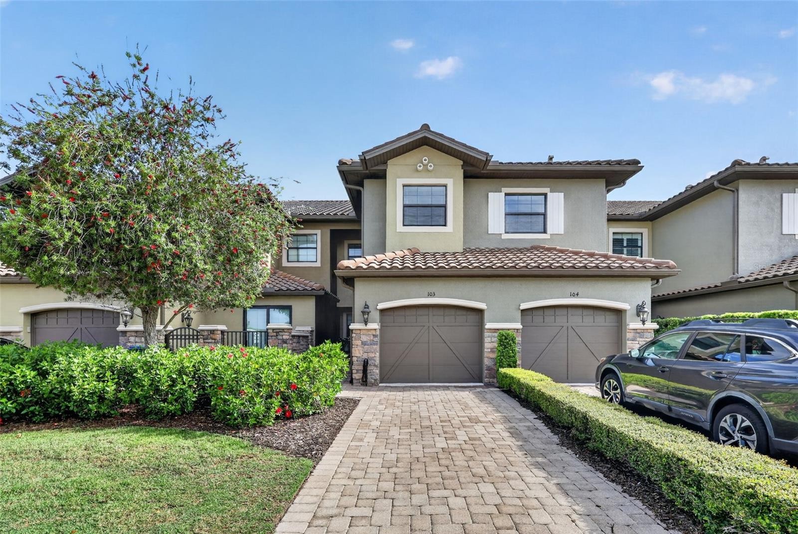 This Gorgeous Golf coach home in desirable Esplanade features 3 bedrooms, 2 and a half baths with a luxurious open second floor plan with vaulted ceilings and an oversized attached garage. Large 24x24 tile, quartz countertops, quality 42-inch natural wood cabinets, beverage center and tray ceilings are just some of the fine finishes you will find throughout. The focal points of the vast great room is the wall of built ins with fireplace and the wide privacy nature views and glimpses of the golf course. This split bedroom plan provides privacy with two additional bedrooms and full bathrooms offering plenty of flexible space. An attached garage and IMPACT glass throughout the entire residence make living in this home convenient and easy. Other upgrades & features: new HVAC system 8-2024, carpet in 2025, new screen on balcony, upgraded light fixtures & cabinet hardware and overhead storage in garage. This home is a Golf deeded home & Personal golf carts are allowed on the course. Living in Esplanade is like being on vacation every day. The community is built around healthy living and living well with unlimited exercise and social options. Esplanade offers a wide array of amenities and activities such as an 18-hole championship golf course, 3 resort pools, hot tubs, resistance pool, pickleball, tennis, bocce ball, two fitness centers, exercise classes, two dog parks, playground, firepit, spa/salon, an on-site lifestyle director, social events, and various clubs. The state-of-the-art Culinary Center offers residents several dining options such as the Barrel House Bistro, Bahama Bar, as well as catering services, wine tastings, and special events. Esplanade is located in the heart of Lakewood Ranch, close to I-75, Lakewood Ranch Main St., University Town Center, Sarasota Polo Club, shopping, dining, entertainment, hospitals, cultural attractions, boating, parks, and Florida’s famous sandy beaches.