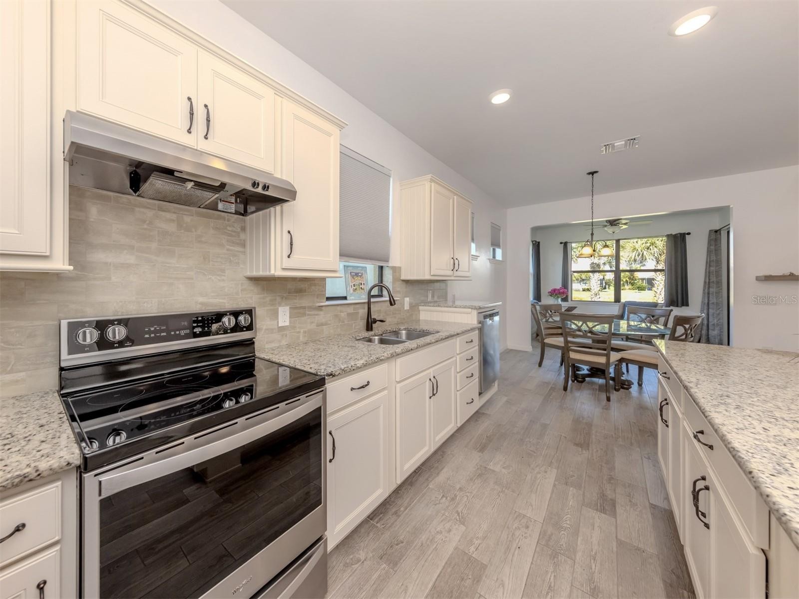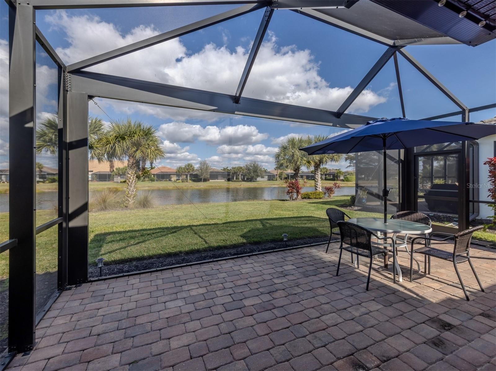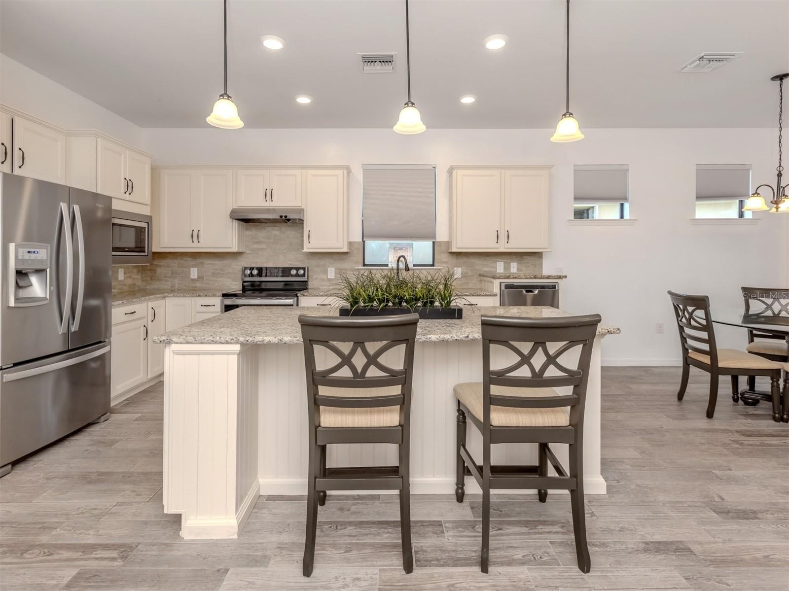 Location truly matters—and Yelma Street delivers. Tucked on a quiet cul-de-sac with a Venetian bridge at the end of the street, this home is just one street from the clubhouse and surrounded by scenic walking paths and expansive lakes. Friendly neighbors and an active community create a welcoming, social atmosphere. This Abbeville model offers beautiful water views, high-wind impact windows and doors, and an extended lanai with clear-view screening—perfect for enjoying morning coffee. A screened front porch, stone facade, and extended brick paver driveway add to the home’s curb appeal. Inside, the home features wood-plank tile flooring, fresh neutral paint, 8-foot doors, and a split floor plan with 2 bedrooms, 2 baths, plus a flex room ideal as a den or optional guest space. The primary suite overlooks the water and includes a large walk-in closet and an en-suite bath with dual granite vanities and a walk-in shower with an infinity glass wall. The kitchen is both stylish and functional, offering 42-inch cream cabinetry, granite counters, a large island with designer lighting, stainless steel appliances, subway tile backsplash, and a closet pantry with a built-in spice rack. The two-car garage includes a water softener, ceiling-mounted storage rack, and an electrical panel ready for a generator. Islandwalk is a gated, resort-style community known for its vibrant lifestyle. Residents enjoy two clubhouses, two resort pools, two lap pools, two fitness centers, pickleball and Har-Tru tennis courts, bocce, a dog park, a community garden, and miles of walking, biking, and golf-cart paths over picturesque Venetian bridges. A full-time paid social director coordinates classes, such as yoga, chair yoga, strength training, and dance, as well as monthly concerts, dances, game nights, card games, and community events. Conveniently located near shopping, dining in Wellen Park, Atlanta Braves Spring Training Stadium, and Venice’s beautiful beaches—this home offers the perfect blend of location, lifestyle, and low-maintenance living. Request your showing today!