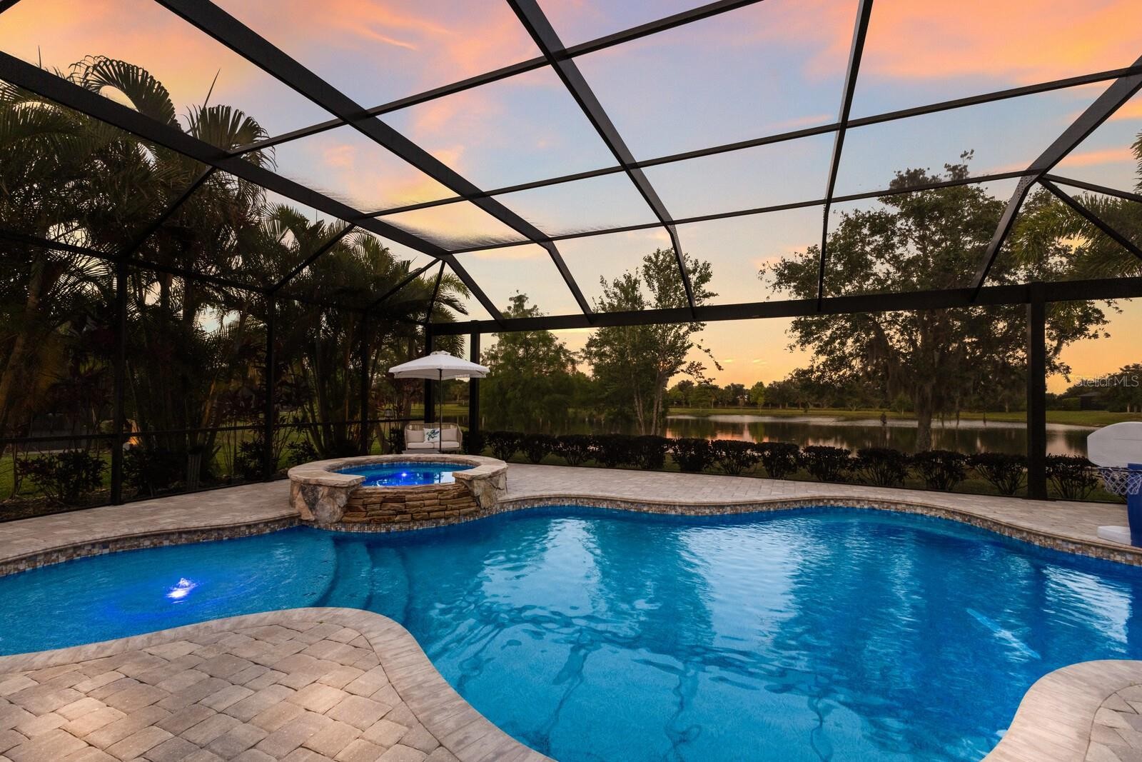 Step into LUXURY with this beautifully upgraded Meritage model featuring 4 bedrooms, 3.5 bathrooms, a spacious 3 car garage, and over 3,100 sq. ft. of thoughtfully designed living space in the sought-after community of Savanna in Lakewood Ranch. From the moment you enter, you’re greeted by a flex room with double doors making it ideal for a home office or formal dining room. The heart of the home is the BEAUTIFUL kitchen, featuring dark wood cabinetry extended to the ceiling, a modern tiled backsplash, built-in microwave and oven, gas cooktop with stainless steel hood, and a STUNNING waterfall edge island with a built-in sink and breakfast bar seating. Stainless steel appliances complete the kitchen, including a stylish coffee/mini bar for your morning routine. Just off the kitchen is an eat-in area with sliding glass doors that overlook the serene backyard and pool. The spacious living room offers a cozy BUILT-IN electric fireplace and an additional set of sliding doors leading out to the lanai. Downstairs, the luxurious primary suite is a private retreat with TRAY ceilings, large windows framing views of the pool, an ensuite bathroom with dual sinks, a makeup vanity, a tiled walk-in shower, and a generous walk-in closet. Upstairs, beautiful wood stairs with metal railings lead to an open LOFT perfect for a media room, game area, or playroom. Three additional spacious bedrooms and two full bathrooms with tubs provide plenty of room for family or guests. Step outside to your Florida dream lanai, featuring a saltwater heated POOL and spa, all under a screened PANORAMIC enclosure overlooking a peaceful lake with BREATHTAKING sunset views. Entertain with ease in the full outdoor kitchen equipped with a grill, sink, and refrigerator. Additional features include, tile flooring throughout the main level, luxury vinyl plank flooring in all bedrooms and upstairs, plantation shutters throughout, a whole-house generator for peace of mind, and lush professional landscaping. This home offers the perfect blend of luxury, function, and outdoor living. Savanna is a fabulous community with LOW HOA resort-style amenities such as a clubhouse, swimming pool, state-of-the-art fitness center, basketball courts, playground, dog park and numerous walking paths. Lakewood Ranch is known for their A+ rated school system and is perfectly located just a short ride to downtown Sarasota, St. Pete, world class shopping, fine dining and the FAMOUS Gulf beaches! Don't wait to make this your home and begin your FLORIDA Lifestyle!