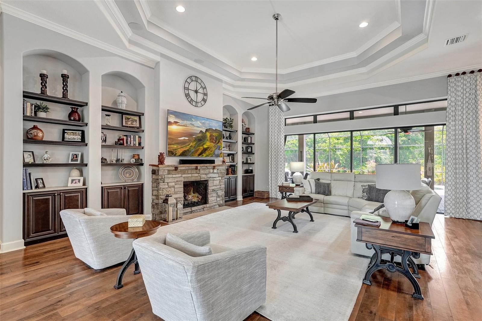 Priced to sell and Owner will consider carrying paper. Why wait when you can live the Esplanade Golf and Country Club dream now? Palazzo is the best street in Esplanade. This quiet cul-de-sac has some of the largest lots. Experience resort-style and maintenance-free living in this gated and highly sought-after golf community located in Lakewood Ranch. This is beautiful and highly customized home with Deeded Golf has been meticulously maintained inside and out. Featuring a private setting on a quiet cul-de-sac, with no homes behind you, relax and unwind in your own pool on your extra-large lanai. This home boasts not only a water view and golf view but also, mature trees and lush vegetation from the lanai, great room, kitchen, and main bedroom. With nearly 3,295 square feet, and 4697 total sq. ft. this popular Mercede floor plan includes three bedrooms, three-and-a-half baths, a spacious office/den, plus a bright and open great room with a fireplace and stacked stone surround. The roomy gourmet kitchen with breakfast nook includes 42” cabinetry with crown molding and marble tile backsplash, premium GE cafe stainless steel appliances, an upgraded large island, pull-out shelves, and an extra-large pantry. This home features engineered wood floors, custom closets, three solar tubes, water softener, seven Casablanca ceiling fans, and freshly painted laundry room cabinets. Other upgrades are quartz countertops in the bathrooms, interior painted in 2023, exterior painted in 2021, plus an 80-gallon water heater. The large outdoor Lanai features an outdoor kitchen plus an inviting pool. For added protection and peace of mind, the home includes Sun and shield shades on the lanai along with impact double wide front doors. This home is a Golf deeded home & Personal golf carts are allowed on the course. Seller would consider carrying a loan at current interest rates for 5 years for buyers. Living in Esplanade is like being on vacation every day. The community is built around healthy living and living well with unlimited exercise and social options. Esplanade offers a wide array of amenities and activities such as an 18-hole championship golf course, two resort pools, hot tubs, resistance pool, pickleball, tennis, bocce ball, two fitness centers, exercise classes, two dog parks, playground, firepit, spa/salon, an on-site lifestyle director, social events, and various clubs. The state-of-the-art Culinary Center offers residents several dining options such as the Barrel House Bistro, Bahama Bar, as well as catering services, wine tastings, and special events. Esplanade is located in the heart of Lakewood Ranch, close to I-75, Lakewood Ranch Main St., University Town Center, Sarasota Polo Club, shopping, dining, entertainment, hospitals, cultural attractions, boating, parks, and Florida’s famous sandy beaches.
