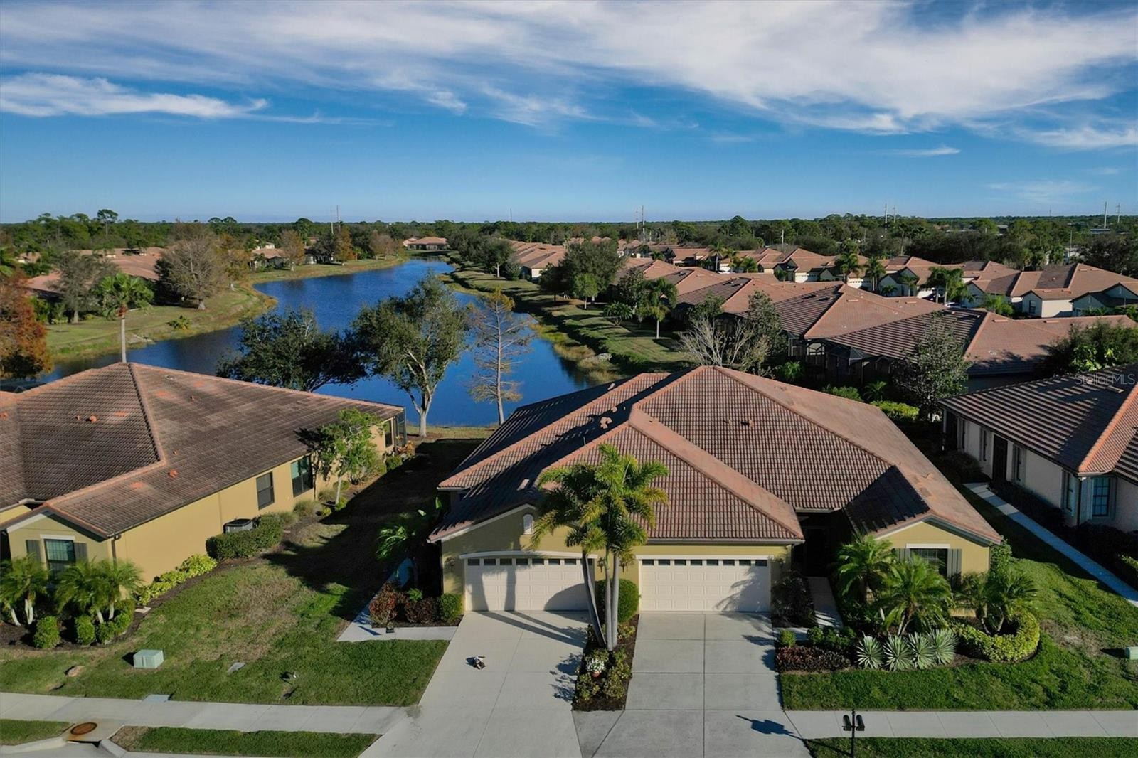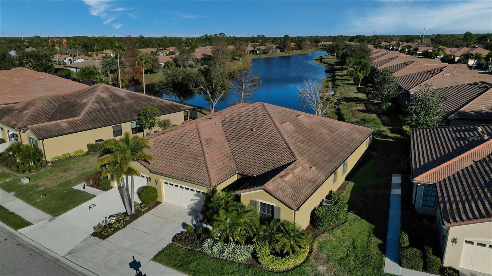 Welcome to this spacious and inviting 3-bedroom, 2-bathroom home with a 2-car garage, nestled in the vibrant 55+ Venetian Falls community. Boasting low HOA fees and no CDD, this gem offers a sunlight-filled interior with a neutral palette and rounded corners for a soft, modern feel. The large flex room, complete with a elegant tray ceiling, provides versatile space for a home office, gym, or hobby area. Step into the refreshed kitchen featuring brand-new appliances and a charming farmhouse-style sink, perfect for culinary adventures. The primary bedroom exudes warmth with rich wood flooring and a freshly updated bath, while the guest bedroom enjoys fresh new carpeting. Practical upgrades include UV film on windows and sliders for energy efficiency, pebble flooring on the lanai, and accordion shutters across the rear for easy storm protection and secure storage of patio furniture. Some rooms are virtually staged. Relish peaceful, long lake views from the eastern exposure, enjoyable at any time of day. The community shines with a fabulous clubhouse, onsite management, and a host of amenities designed for an active, social lifestyle—making this home a true retreat in paradise.