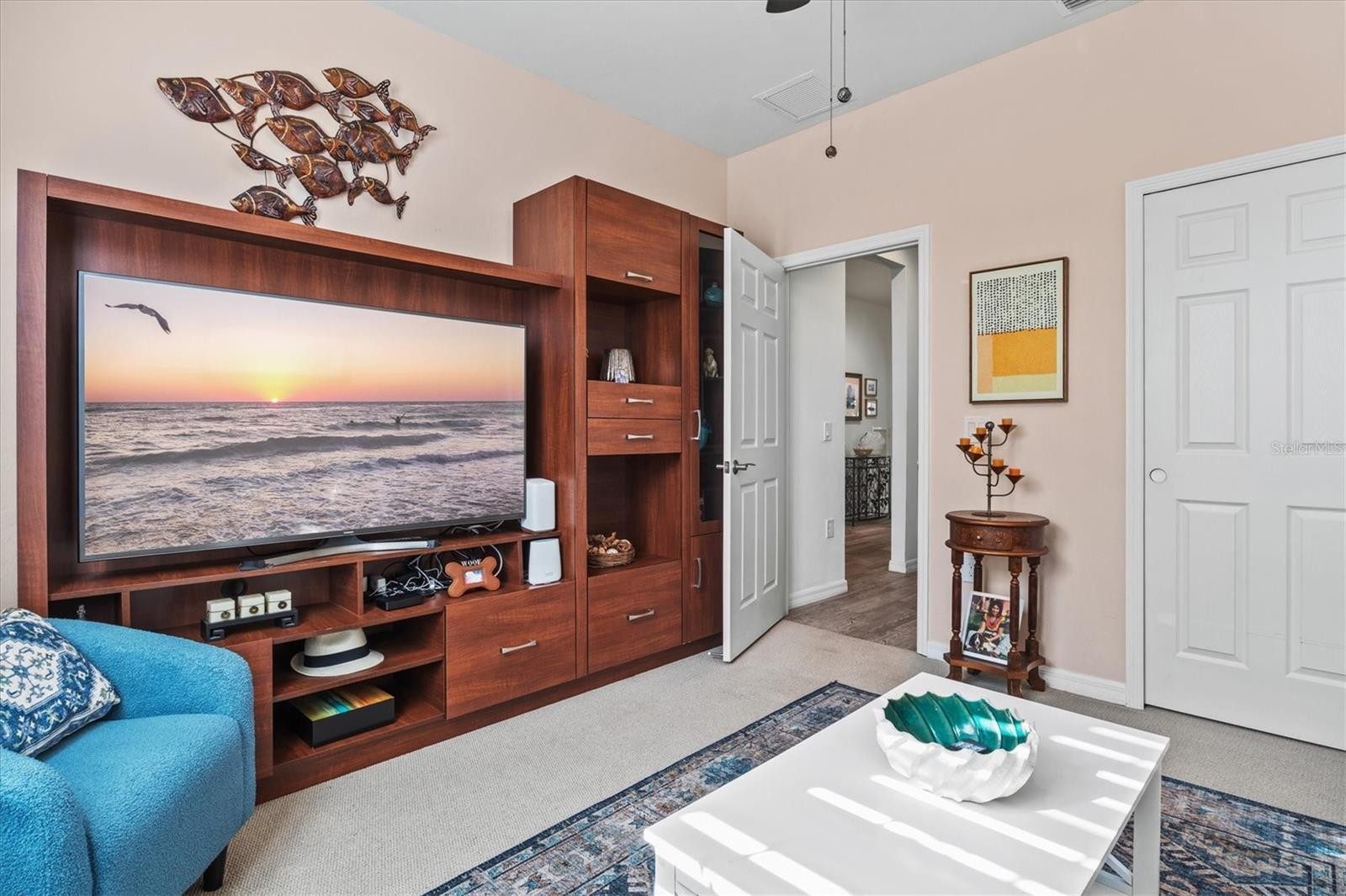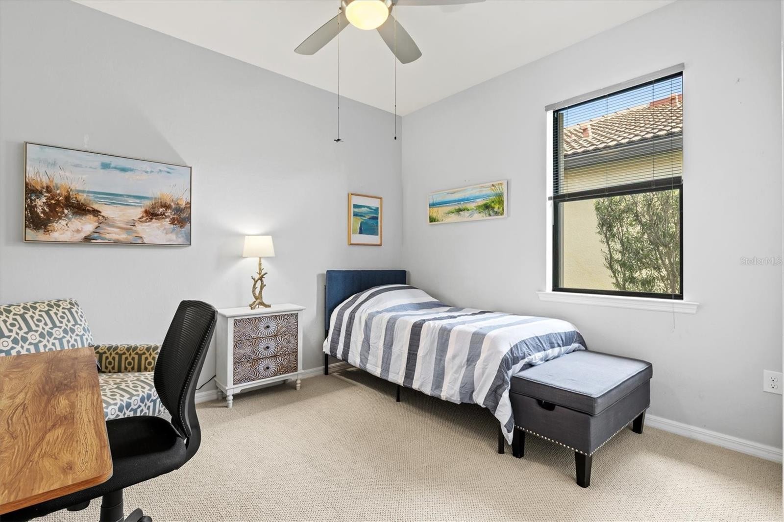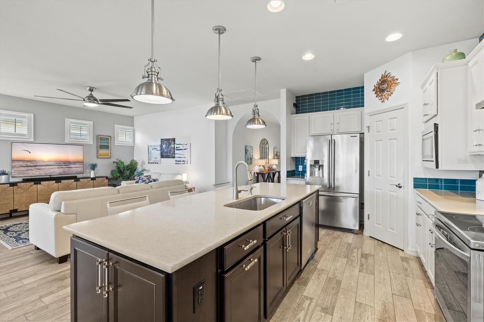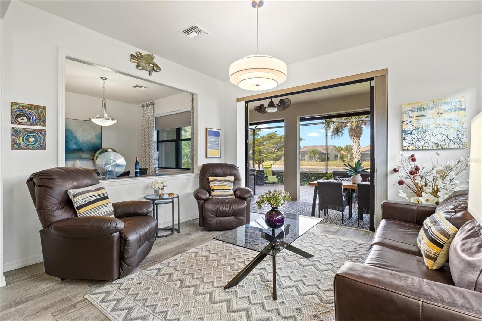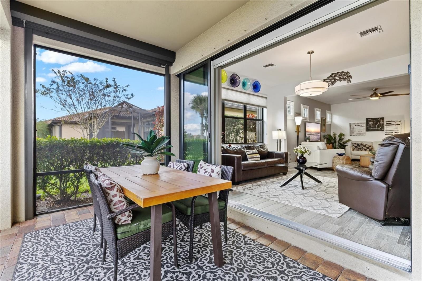 Under contract-accepting backup offers. One of the most sought-after features in IslandWalk, and rarely available at this size and price point, this is a TRUE 4-bedroom home. Built on the popular DiVosta Summerwood floor plan, this upgraded residence offers 2,178 sq ft of living space and 2,838 sq ft total, combining flexibility, comfort, and value that is hard to find in the community. The home features four genuinely spacious bedrooms, not a den or flex room, making it ideal for families, guests, or those needing dedicated office space. Two full bathrooms complete the functional layout. A premium structural upgrade, the 10x13 sunroom, provides a peaceful space to relax or watch TV while taking in tranquil north-facing water views from the screened lanai. The kitchen is bright and modern with white cabinetry, quartz countertops, a custom contemporary tile backsplash, and a corner walk-in pantry with custom organization shelving. Additional upgrades include pendant and recessed lighting, ceiling fans throughout, a whole-home water softener, and seamless gutters. Hurricane protection is extensive with Storm Smart power screens on the lanai, a Kevlar roll-down screen at the front entry, and easy-pull accordion shutters for all windows. The garage is exceptionally upgraded with painted floors, ceiling-mounted storage shelving, an insulated garage door, and a mini-split AC unit to keep the space comfortable year-round. Exterior enhancements include a widened paver driveway and an extended paver walkway leading to the screened front lanai, a feature buyers truly appreciate. Outdoor living is enhanced with an upgraded hot tub and paver patio overlooking the serene lake, perfect for unwinding at the end of the day. Located on a quiet cul-de-sac street, the home offers added privacy and minimal traffic. IslandWalk is one of Venice’s most vibrant lifestyle communities, offering a full-time activities director, two clubhouses, resort-style pools, pickleball and tennis courts, miles of scenic walking, biking, and golf-cart paths, and a wide variety of clubs and social events. Just a short bike ride to the Atlanta Braves Stadium, residents also enjoy easy access to the nearby marketplace with Publix, dining, and shopping, as well as Downtown Wellen Park featuring an 80-acre lake, waterfront dining, retail, and live entertainment. A brand-new Costco is only minutes away. The IslandWalk HOA includes ground maintenance, cable, internet, amenities, and 24-hour guard-gated security. This home is NOT in a flood zone and has a low CDD fee. Don’t miss this rare true 4-bedroom opportunity, be sure to view the 3D Matterport and drone tours.