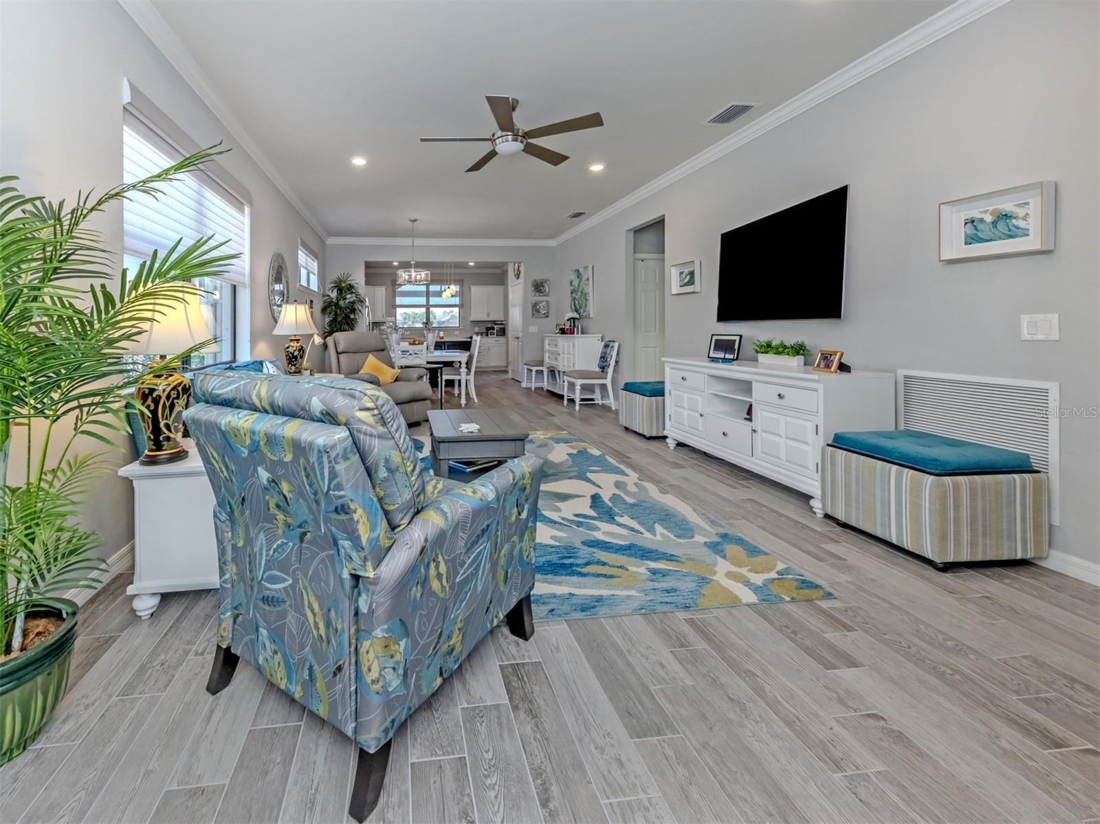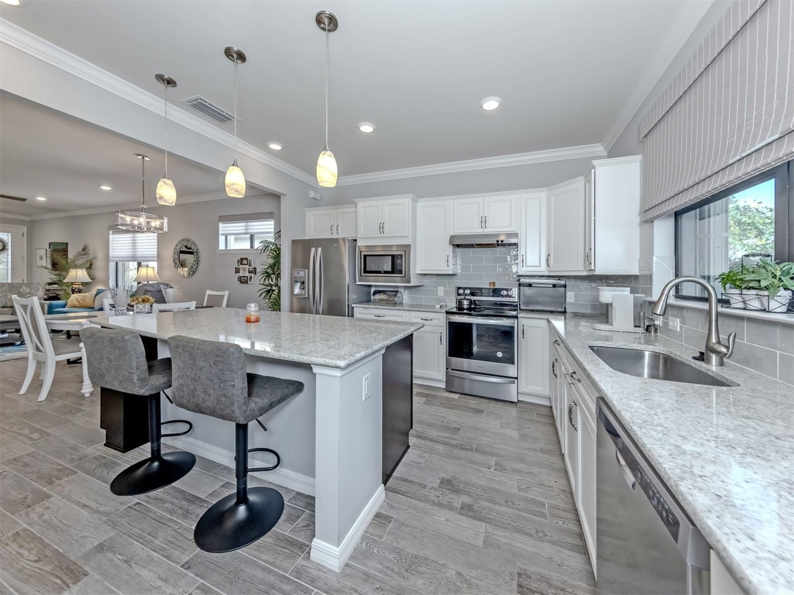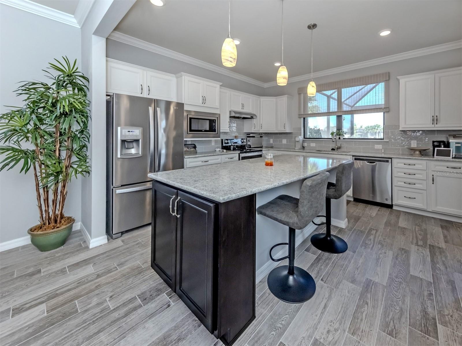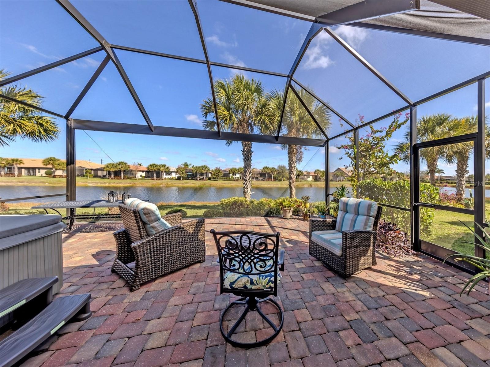 Experience the best of resort-style Florida living in this beautifully appointed Taft model located in the premier & highly sought-after community of IslandWalk at Wellen Park in Venice, Florida. Perfectly positioned on a private lakefront homesite, this immaculate residence offers tranquil water views, elegant finishes, and effortless indoor-outdoor living. Inside, the open-concept design showcases rich wood plank tile flooring, soaring 9-foot ceilings, and expansive living spaces filled with natural light. The gourmet kitchen features granite countertops, stainless steel appliances, custom 42" cabinetry with crown molding, and a spacious island designed for entertaining. Home also features 2 bedrooms plus a versatile den/flex room with Murphy bed, perfect for guests or a home office. The luxurious primary suite captures peaceful lake views and offers a spa-inspired bath with frameless glass shower, dual granite vanities, and a generous walk-in closet. Step outside to the expansive screened paver lanai, where a private hot tub invites you to relax while overlooking the water—perfect for entertaining or unwinding after a day enjoying the Florida sunshine. Additional upgrades include whole-house hurricane shutters (roll-down and accordion), 9-ft ceilings, 8-ft doors, new HVAC (2025), laundry room with utility sink, and an oversized 2-car garage with 4 extra feet of storage space. Residents of IslandWalk at Wellen Park enjoy resort-style amenities and a vibrant social lifestyle which includes two clubhouses, resort pools, pickleball, tennis, dog park, miles of walking and golf cart trails, and a full-time activities coordinator. Just minutes from multiple area Beaches, CoolToday Park, home of the Atlanta Braves spring training, plus shopping, dining, and entertainment at Downtown Wellen Park. This move-in ready home allows you to skip the wait for new construction and begin enjoying the Florida lifestyle immediately.