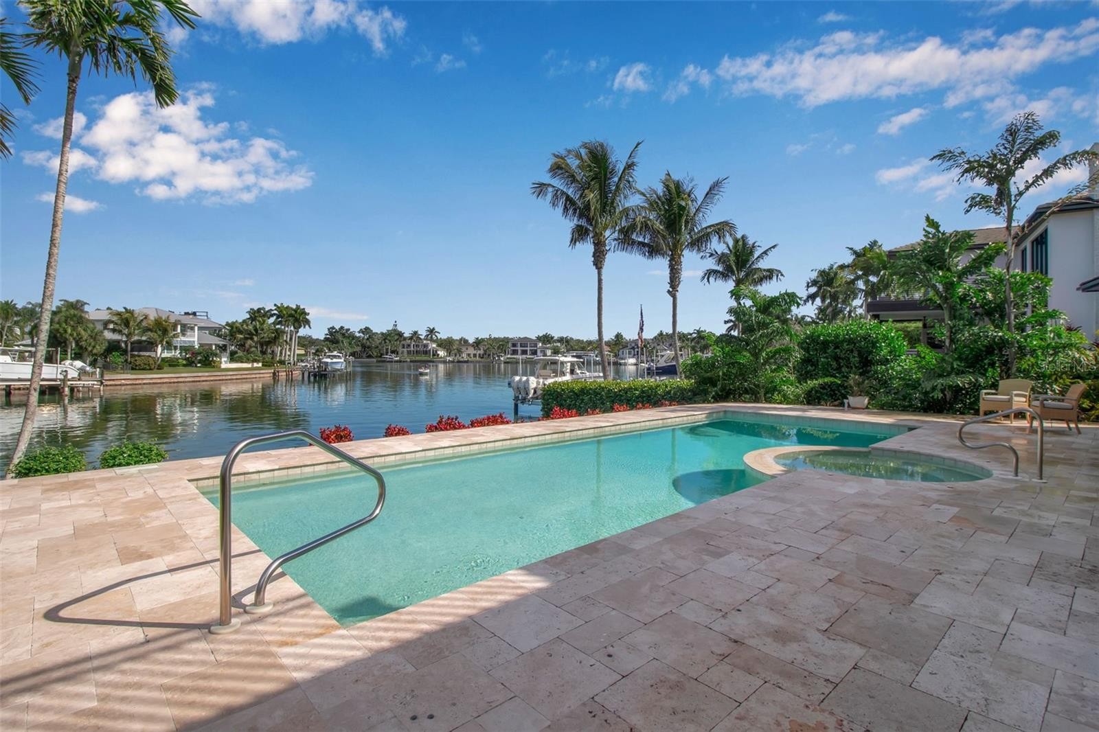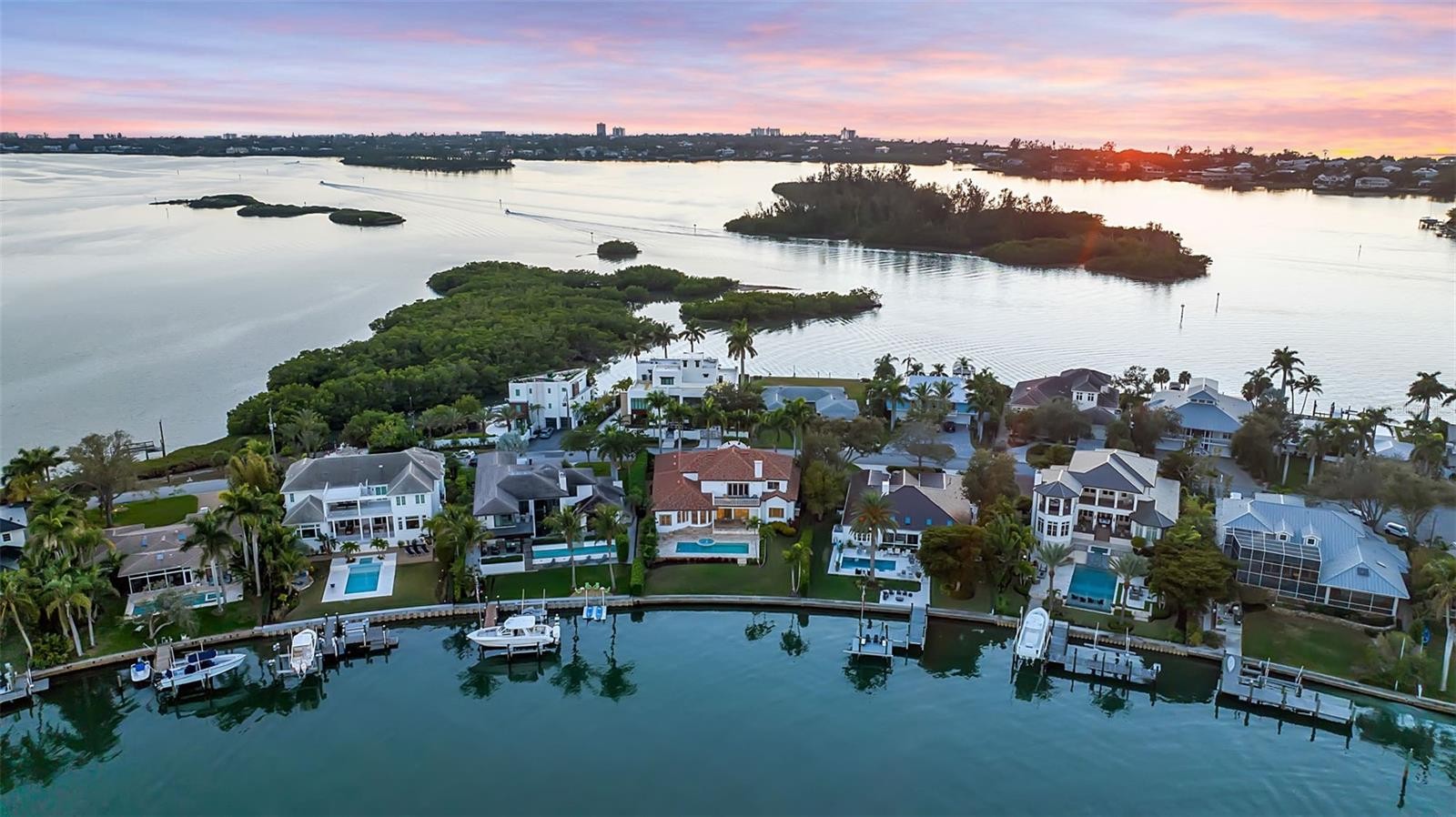 One or more photo(s) has been virtually staged. Step into a private, gated waterfront estate in Sarasota offering deep-water boating access, refined coastal architecture, and an unsurpassed location just minutes to Siesta Key Beach, Southside Village, and downtown Sarasota. Located in the coveted San Remo Estates community, this exceptional residence blends timeless elegance with modern functionality—perfect for buyers searching for a luxury Sarasota waterfront home with privacy and proximity to the city’s best dining, shopping, and beaches. Designed by renowned architect Walter Hamm and built by Bill McGinness, the home is engineered for lasting stability with construction supported by 54 concrete pilings, a powerful value point for buyers seeking a well-built coastal property. Set on a sprawling private lot with mature landscaping and serene surroundings, the home captures panoramic water views and features a protected deep-water harbor, ideal for boaters who want quick access to Sarasota Bay and Gulf. Inside, the home showcases a bright, open layout filled with natural light, elevated by custom millwork, coffered ceilings, rich wood flooring, and polished travertine. The gourmet kitchen is designed for both entertaining and everyday living, featuring an oversized center island, quartz countertops, premium wood cabinetry, granite perimeter counters, subway tile backsplash, and stainless-steel appliances, along with an inviting breakfast nook that overlooks the water. The adjacent family room creates a warm gathering space, while the formal dining room is ideal for hosting. A private office provides a quiet, dedicated workspace, ideal for today’s lifestyle. The primary suite on the main level is a true waterfront retreat with oversized windows framing tranquil views, two custom walk-in closets, and a spa-style bath with a floating vanity, illuminated mirrors, a freestanding soaking tub, and an oversized walk-in shower. Upstairs, the second level is designed for comfort and entertaining with three generous bedroom suites, a TV/game room, a convenient kitchenette, and a terrace that overlooks the pool and peaceful waterscape, perfect for guests, multi-generational living, or extended stays. Outdoor living is equally impressive, featuring an expansive travertine pool deck, a heated pool and spa, a fenced and spacious yard, and lush tropical landscaping that creates a resort-style environment with exceptional privacy. Andersen sliding doors and windows enhance the indoor-outdoor connection and raise the overall quality of the home. A comprehensive renovation completed in 2015 elevated the interiors with sophisticated, updated finishes, while key improvements include a new roof (2020) and updated AC systems (2023 & 2024). Additional features include an ADT security system, generous storage, abundant closet space, a large laundry room, provisions for an elevator, and an oversized three-car garage. Sought-after San Remo Estates is positioned at the heart of Sarasota, just before the north bridge to Siesta Key, making it one of the most desirable locations for those wanting a Sarasota luxury waterfront home with both convenience and privacy. This exceptional coastal estate delivers the ultimate Florida lifestyle: deep-water boating, serene water views, and effortless access to Sarasota’s beaches, culture, and world-class amenities.