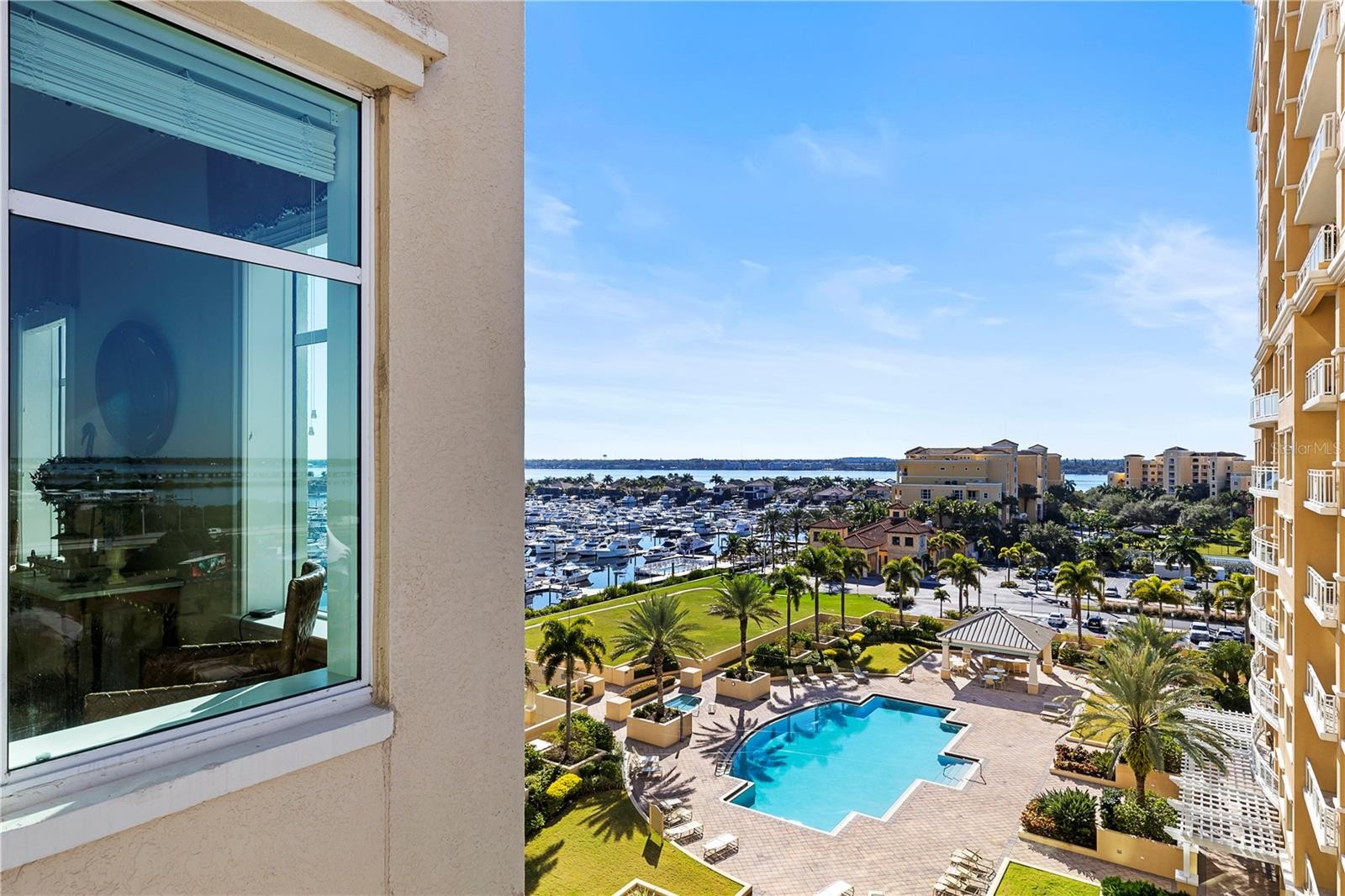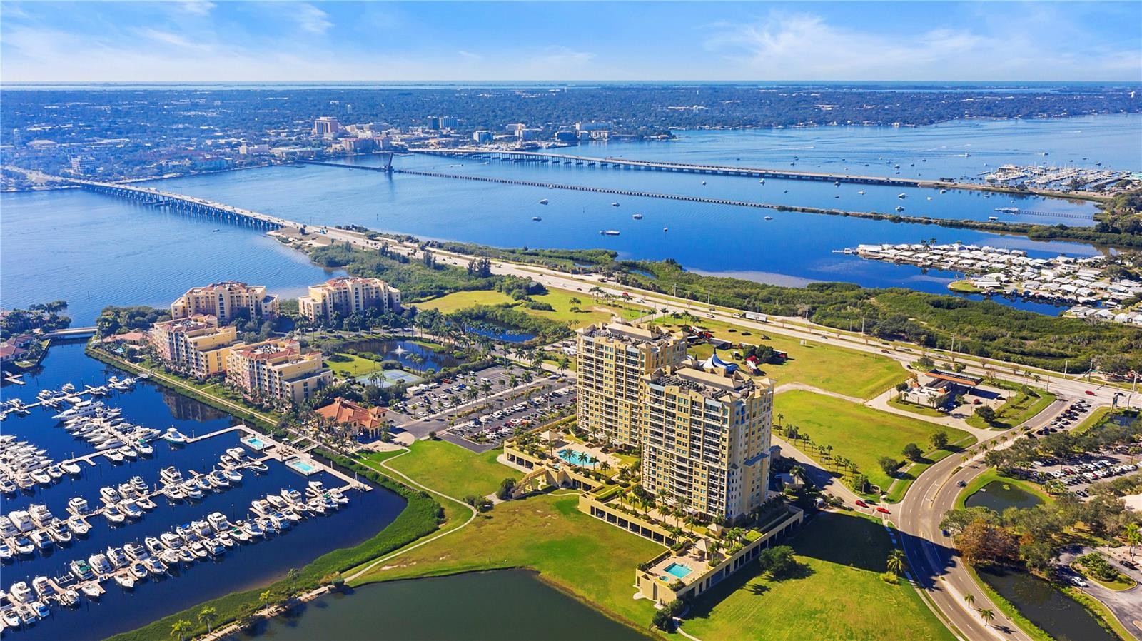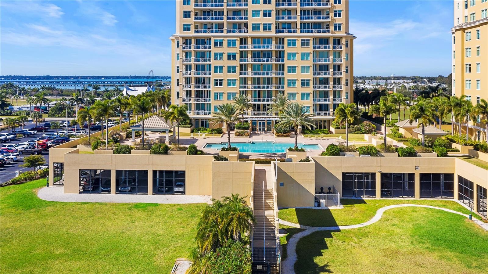Paradise found with Resort Style Living with breathtaking Sunsets and gorgeous panoramic views from this luxury Bel Mare Condo. This gated community with a private secure elevator that takes you directly to the foyer of this unit has stunning amenities so you can enjoy Florida lifestyle at its best! The list of amenities includes but is not limited to 3 Pools, 2 spa Pools, Fitness Center, Theater Room, Tennis Courts, Billiard & Social Rooms. This modern and chic unit has 2 Bedrooms, 2 Baths both with walk-in closets, a Large Great Room, Upscale Kitchen with Stainless Steel Appliances, Granite Counter Tops & Wood Cabinets. The spacious utility room offers extra storage. Relax and enjoy amazing views from your private balcony overlooking the Manatee River. There is a 2-Car garage parking located under building with secure gating. This unit is ready for you to move in and is conveniently located to Restaurants, Shopping, the beautiful Gulf Beaches and entertainment. Furnished or unfurnished! Water, trash included, 2-Car garage parking!