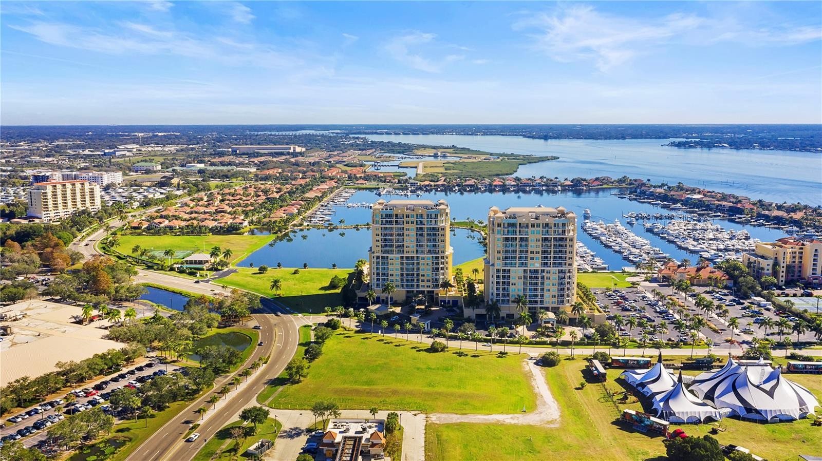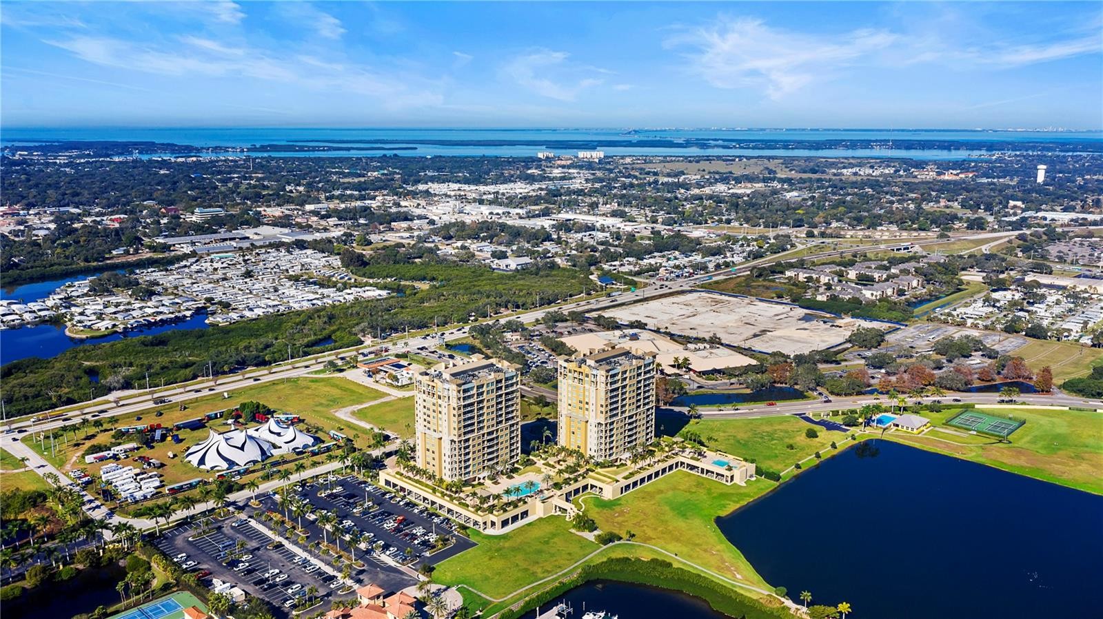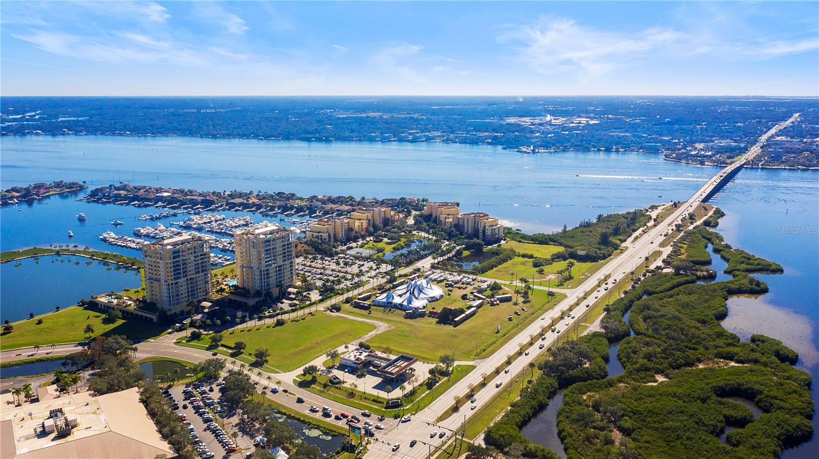 Paradise found with Resort Style Living with breathtaking Sunsets and gorgeous panoramic views from this luxury Bel Mare Condo. This gated community with a private secure elevator that takes you directly to the foyer of this unit has stunning amenities so you can enjoy Florida lifestyle at its best! The list of amenities includes but is not limited to 3 Pools, 2 spa Pools, Fitness Center, Theater Room, Tennis Courts, Billiard & Social Rooms. This modern and chic unit has 2 Bedrooms, 2 Baths both with walk-in closets, a Large Great Room, Upscale Kitchen with Stainless Steel Appliances, Granite Counter Tops & Wood Cabinets. The spacious utility room offers extra storage. Relax and enjoy amazing views from your private balcony overlooking the Manatee River. There is a 2-Car garage parking located under building with secure gating. This unit is ready for you to move in and is conveniently located to Restaurants, Shopping, the beautiful Gulf Beaches and entertainment. Furnished or unfurnished! Water, trash included, 2-Car garage parking!
