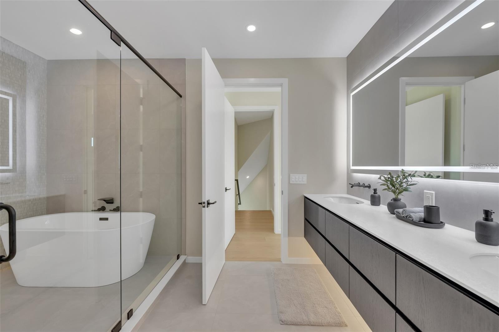Welcome to 1406 Tangier Way, a breathtaking expression of coastal contemporary luxury in San Remo Estates in Sarasota, where architectural excellence meets waterfront serenity. This 3,294 sq. ft. home is a seamless blend of sophistication, innovation, and artisanal craftsmanship, offering four bedrooms, three full baths, and unparalleled views of Sarasota Bay. Every detail has been meticulously curated, from the custom Doca cabinetry, hand-crafted and imported from Spain, to the high-grade Portuguese porcelain countertops that extend from the kitchen to the ceiling, creating a striking visual statement. The gourmet kitchen is equipped with state-of-the-art Fulgor Milano appliances, an oversized island, and bespoke finishes, setting the stage for an elevated culinary experience. Walls of strategically placed windows flood the interiors with natural light, enhancing the contemporary loft-inspired aesthetic while showcasing the property’s unrivaled water views. The second-floor master suite is a sanctuary of refined elegance, featuring a private office, floor-to-ceiling water views, and a spa-inspired en-suite bath adorned with intricate, high-end tilework, exuding a sense of tranquility and indulgence. Ascend to the rooftop terrace, where artificial turf, a wet bar, and panoramic views create an unforgettable setting for sunset soirees and intimate gatherings under the stars. The outdoor living space is nothing short of an oasis, boasting leather-marble walkways, a champagne spa, a gas fireplace, and a fully equipped outdoor kitchen, designed for seamless alfresco entertaining. An automated mosquito misting system ensures year-round comfort, while Control4 smart home technology integrates lighting, climate, security, and entertainment at the touch of a button, delivering an effortlessly luxurious lifestyle. Boaters will revel in the two newly constructed boat lifts and direct access to Sarasota Bay, making this home an extraordinary retreat for waterfront living at its finest. Built with strength, timeless beauty, and the highest level of craftsmanship, this extraordinary waterfront residence is truly a rare find—a once-in-a-lifetime opportunity to own an unparalleled slice of Sarasota’s coastal paradise. Schedule your private showing today—this exclusive sanctuary could be yours.