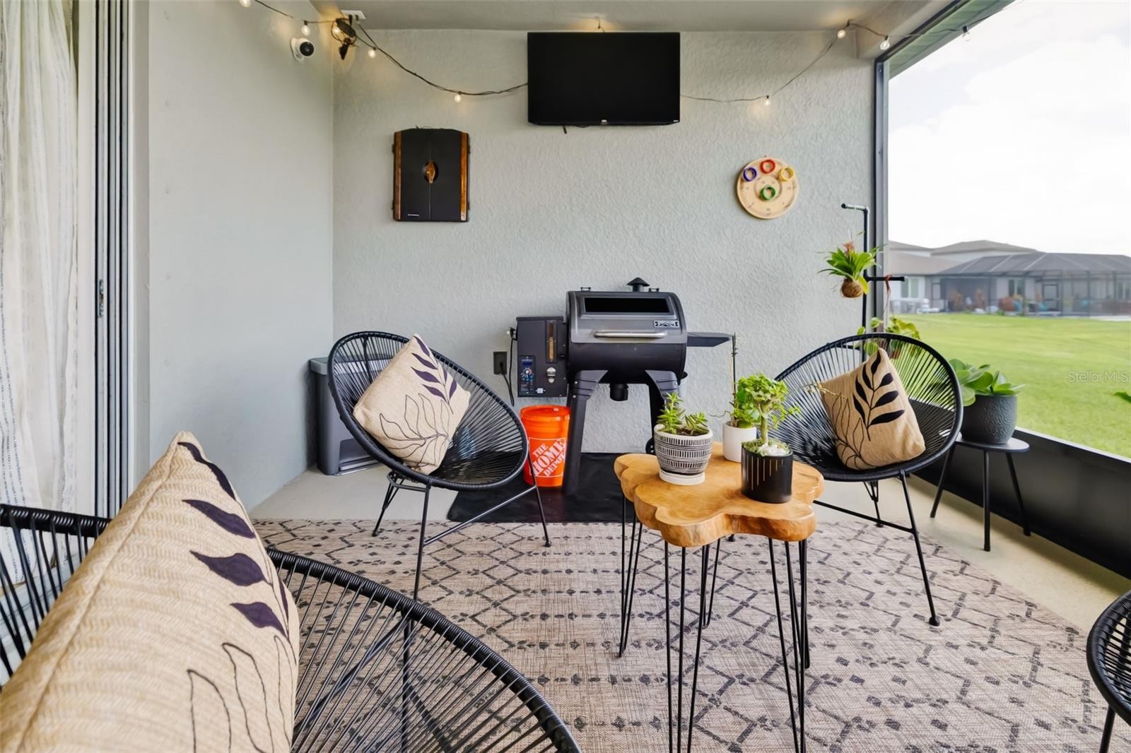 Meticulously maintained and just two years old, this practically brand-new home offers 4 bedrooms, 3 full bathrooms, and a spacious 3-car garage (Builder is no longer building 3 car garages). Designed with an open floor plan, the home features a custom built-in fireplace that creates a warm and inviting focal point in the living area. A welcoming front foyer leads into the main living space, offering both functionality and flow. Step outside to a screened-in back patio overlooking a peaceful pond, complete with a brand-new oversized 6-person Jacuzzi—perfect for relaxing or entertaining. The home also features professionally installed permanent holiday lighting along the front and extending down the sides, backed by a transferable lifetime warranty—adding both convenience and curb appeal year-round. The community offers a resort-style pool, playground, dog park, pickleball courts, and more. Conveniently located near I-275 and I-75 with endless shopping, dining, and entertainment just minutes away, this home truly combines comfort, convenience, and a like-new feel throughout.