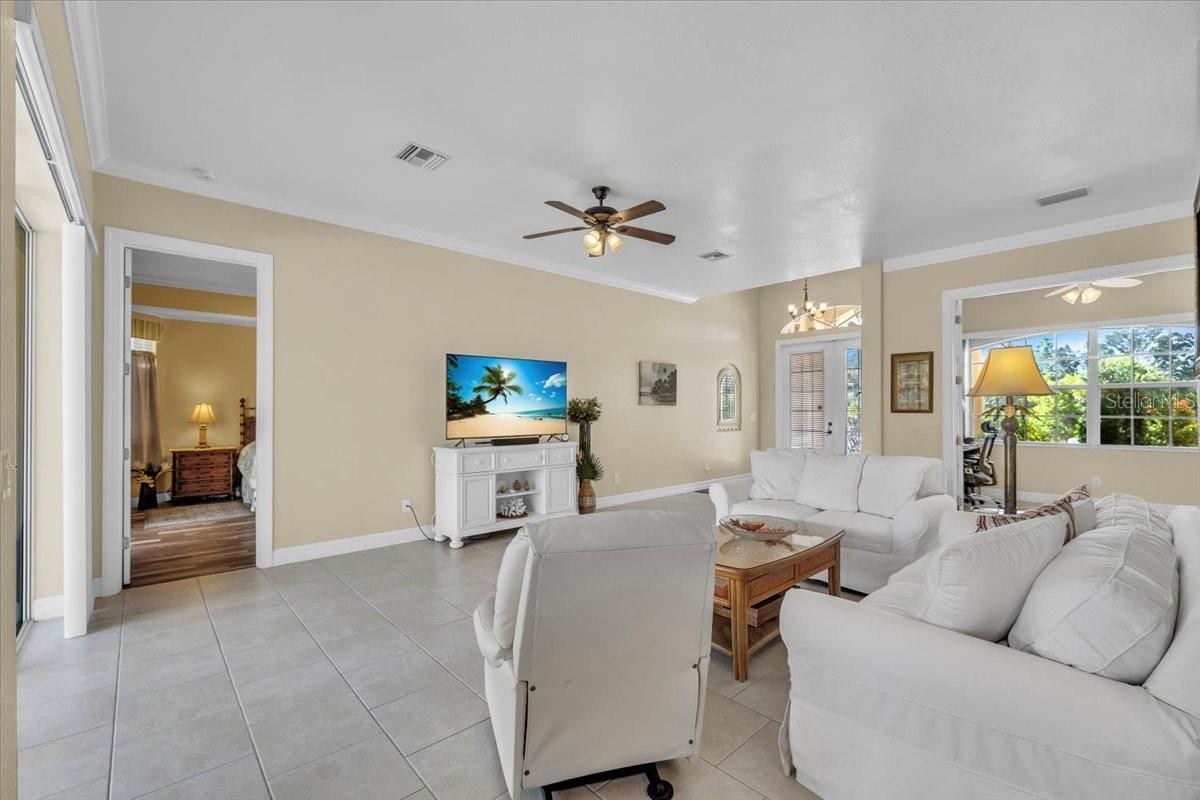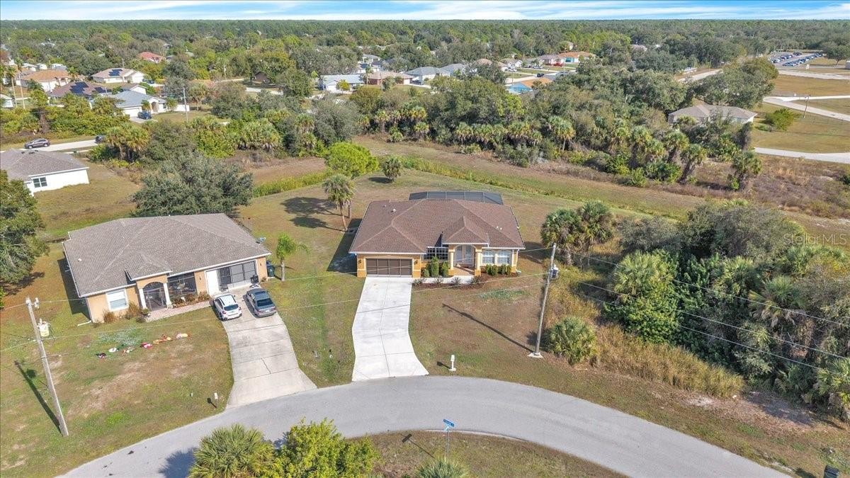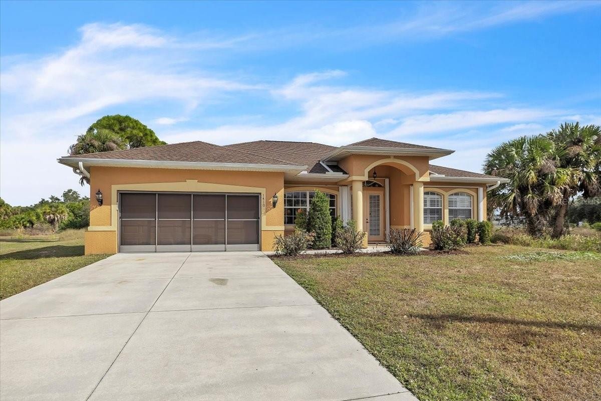 Welcome home to this inviting 3-bedroom, 2-bath (with a heated pool!) residence tucked away on an oversized, nearly half-acre lot in a peaceful North Port neighborhood. Built in 2010 and thoughtfully designed, this single-story home offers a comfortable split-bedroom layout that blends privacy with open, easy living. As you step inside, you’ll notice tile flooring throughout, crown molding, and light-filled living and dining spaces that create a warm, welcoming atmosphere—perfect for everyday life and entertaining alike. The kitchen opens seamlessly to the main living areas and comes fully equipped, making it easy to stay connected while hosting family and friends. The spacious primary suite is a true retreat, featuring two walk-in closets and private bath. The additional bedrooms also offer generous walk-in closets and flexibility for guests, or hobbies while a dedicated office with double doors is conveniently located off the living room. Step outside and enjoy the best of Florida living on your covered lanai overlooking your private in-ground pool—ideal for relaxing afternoons, weekend gatherings, or quiet evenings at home. With a two-car attached garage and the added peace of mind of Flood Zone X, this home offers both comfort and convenience. The home also comes wired for both cable and high-speed fiber, newer roof 2023, water heater 2025, A/C 2020, perimeter security lights. Hurricane shutters on all windows including enclosed lanai. Best of all, there are no HOA fees or community restrictions, giving you the freedom to truly make this home your own. Schedule your showing today!