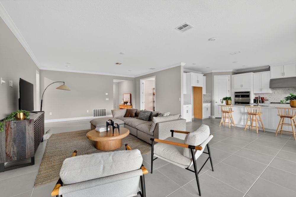 What's Special: Final Opportunity | 3-Car Garage | Larger Lot | No Rear Neighbors | North Facing Lot. New Construction - Ready Now! Built by Taylor Morrison, America's Most Trusted Home Builder. Welcome to the Java at 14234 Sawmill Street in Firethorn! This beautiful new home welcomes you with a bright, open layout highlighted by tile flooring throughout the main living area and elegant crown molding. At the center of the home, the sizeable great room creates a warm gathering space visible from the foyer as soon as you step inside. The gourmet kitchen sits just off this space and features white cabinets, a marble backsplash, a large island, ample counter space, a corner pantry, and a comfortable dining area. At the front of the home, two secondary bedrooms share a full bathroom, while another secondary bedroom has its own en-suite bath. The laundry room is situated near the garage entry. The spacious primary suite is tucked at the back of the home with an en-suite bathroom offering a dual vanity, large shower, and walk-in closet. Enjoy relaxing moments on the covered lanai. Firethorn in Parrish offers a peaceful setting with easy access to Sarasota, Tampa Bay, Siesta Key, and St. Petersburg. At The Hideaway, enjoy a resort-style pool, fitness center, sports courts, nature play space, and pet parks. Nearby shopping, dining, entertainment, and job opportunities in Bradenton and Lakewood Ranch make life both convenient and relaxing. Additional Highlights Include: Gourmet kitchen, study with French doors in place of flex, and 8' interior doors. MLS#TB8482086