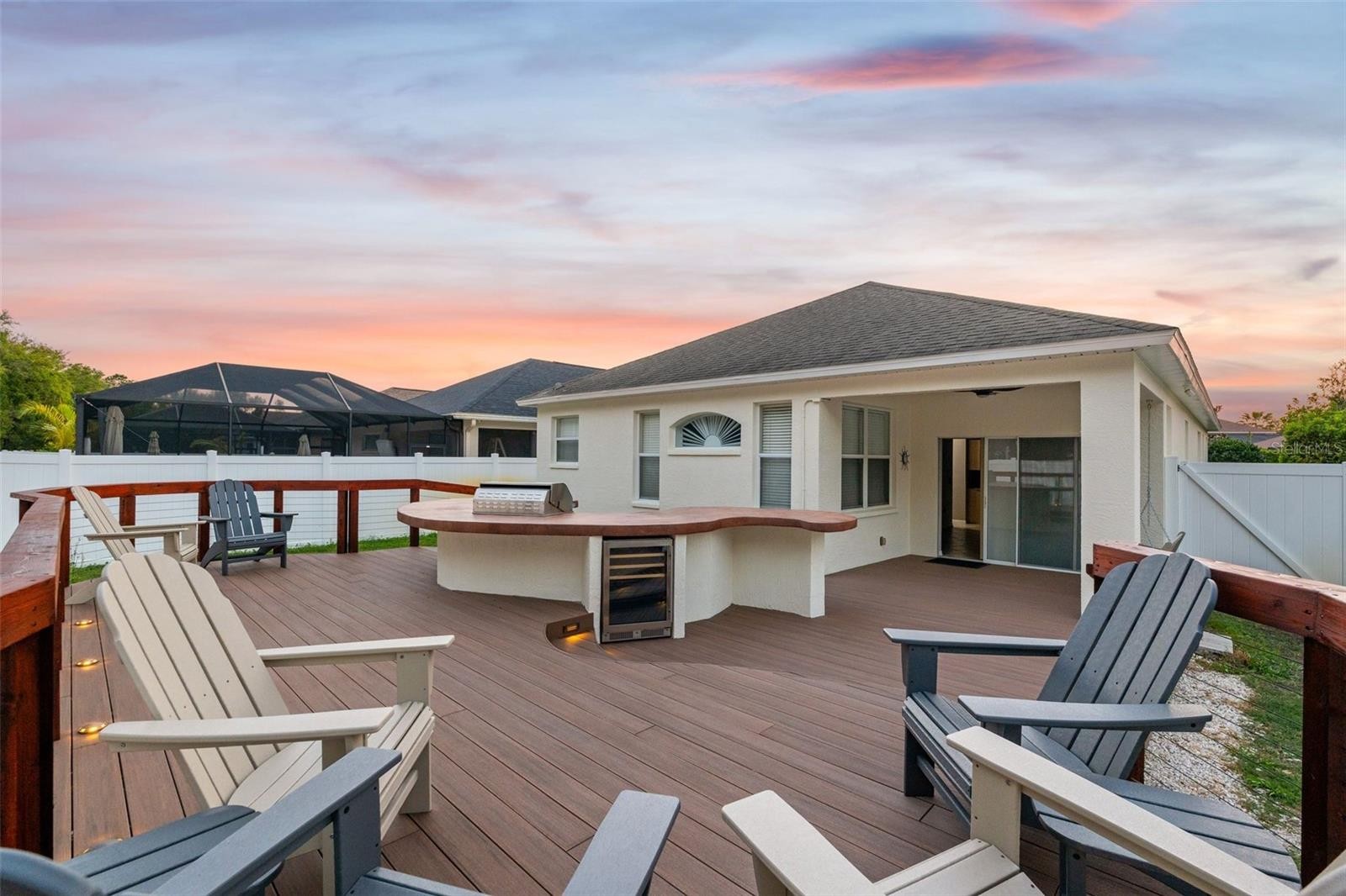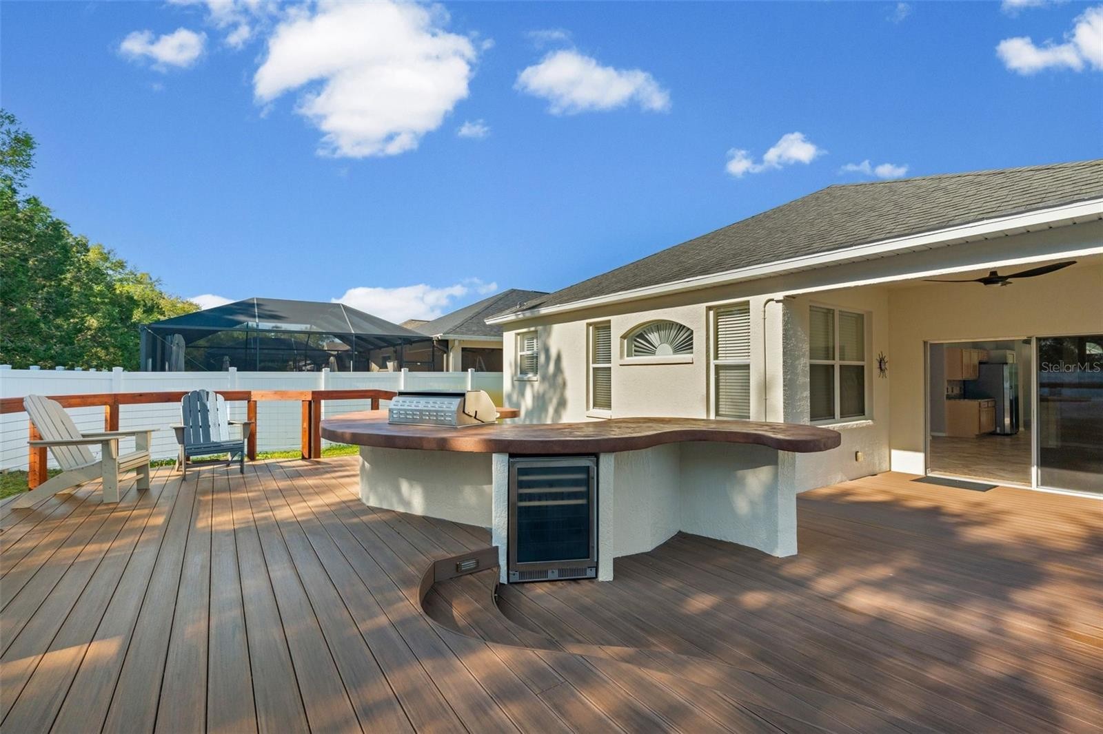 Experience the best of Lakewood Ranch living in this beautifully maintained 3-bedroom, 2-bath home ideally situated in the heart of one of Southwest Florida’s most sought-after communities. With a brand-new roof installation currently in progress, this residence offers exceptional value, peace of mind, and move-in-ready appeal. Thoughtfully designed for both comfort and entertaining, the spacious floor plan features a versatile bonus/flex room, two separate living areas, a formal dining room, and a cozy breakfast nook, perfect for today’s lifestyle needs. The open-concept kitchen flows seamlessly into both living spaces, creating an inviting atmosphere ideal for everyday living and effortless hosting. Step outside to your own private backyard retreat, where a custom-built deck showcases a built-in outdoor kitchen, sit-at bar, and multiple seating areas, a true entertainer’s dream and the perfect space to enjoy Florida’s indoor-outdoor lifestyle year-round. The desirable split-bedroom floor plan provides privacy for the spacious primary suite, complete with a walk-in closet and an en-suite bath featuring a separate soaking tub and walk-in shower. Added convenience comes with ADA accessibility, making this home both functional and accommodating. Location is everything, and this home delivers; within walking distance to highly rated McNeal Elementary and Nolan Middle School, and just minutes from top parks, Lakewood Ranch Main Street, UTC’s premier shopping and dining, and approximately 35 minutes to the area’s stunning Gulf beaches. Even better, enjoy the financial advantages of an ultra-low HOA fee and CDD fee, a rare and highly desirable combination in Lakewood Ranch that adds tremendous long-term value. This is a rare opportunity to own a beautifully appointed home in an unbeatable location with outstanding amenities and low carrying costs. Schedule your private showing today.