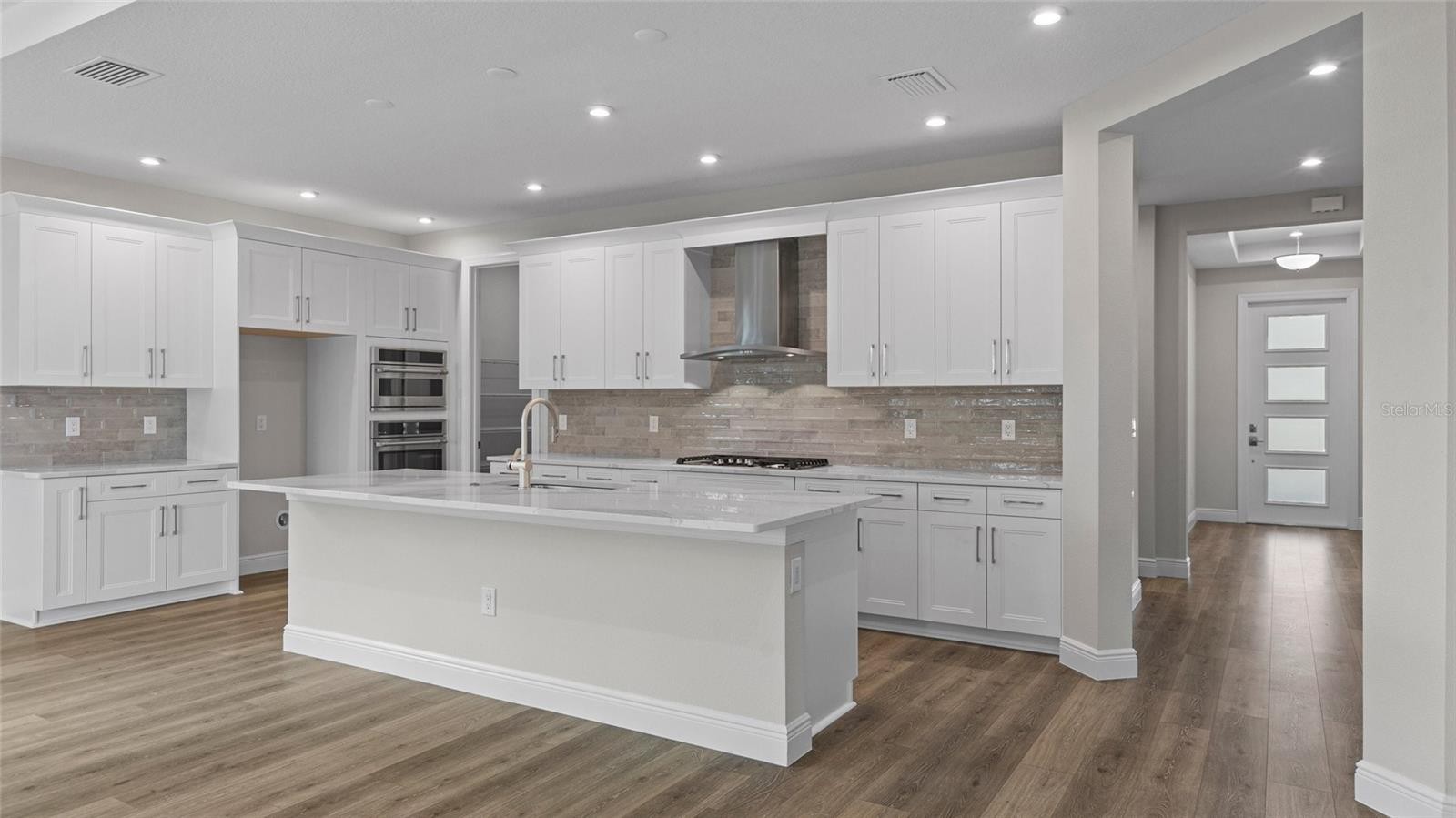 Welcome to this beautifully designed Jade floorplan, crafted for both style and functionality. At the center of the home, the Chef’s Kitchen offers abundant countertop space, premium cabinetry, high-end appliances, and a generous pantry. The spacious island overlooks the bright Dining area and Great Room, where a 16-foot-wide, 8-foot-tall sliding glass door opens to the covered Lanai—perfect for entertaining or enjoying Florida’s sunshine. The Owner’s Suite features an elegant tray ceiling, a large walk-in closet, and a luxurious Deluxe Extended Shower with dual vanities. Thoughtful upgrades include a 4-foot garage extension for extra storage or workspace, a laundry tub rough-in, and a convenient floor outlet in the Great Room. This home combines practical everyday living with elevated design, offering an inviting, open-concept layout ideal for modern Florida living.