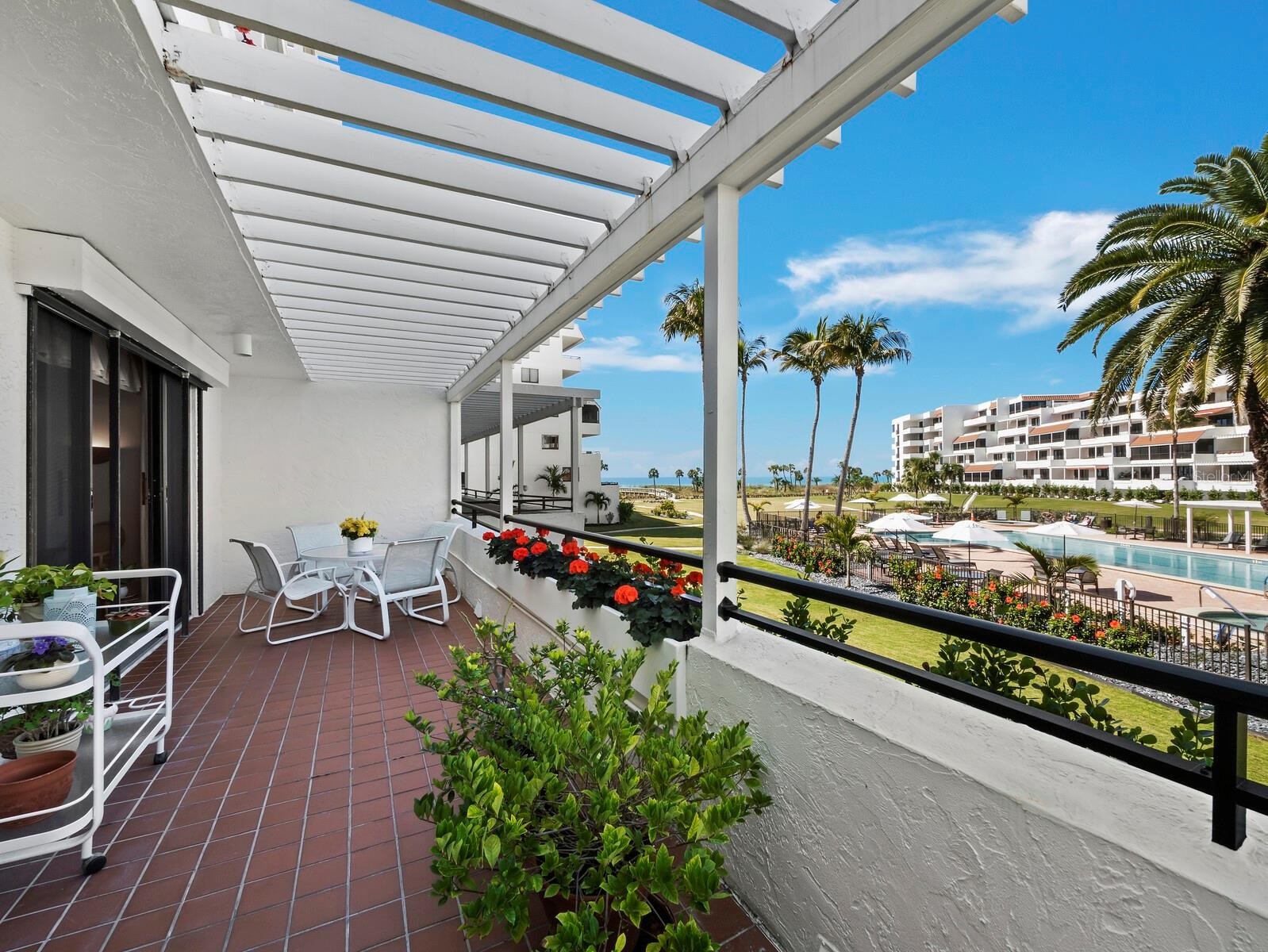 Welcome to Residence #103 at 1445 Gulf of Mexico Drive, located within the prestigious Players Club on Longboat Key. This exceptional 550-foot Gulf-front community offers an unparalleled coastal lifestyle, and this residence presents a rare opportunity—available for the first time in 37 years. Originally the building’s model home, this thoughtfully designed condominium combines timeless elegance with spacious comfort. This beautifully maintained residence features two bedrooms, two and a half baths, and a versatile den/study complete with twin Murphy beds and built-in storage—easily convertible to a third bedroom. The spacious living and dining area opens to a wall of sliding glass doors leading to an expansive 30-foot open-air balcony, where you will enjoy sweeping views of the Gulf of Mexico, overlooking the 70-foot heated saltwater swimming pool, spa, lush tropical landscaping, and breathtaking sunsets. Just steps from the pristine beach, this outdoor retreat invites you to relax, read, listen to the waves, and savor spectacular evening skies. Inside, the home offers a seamless blend of style and functionality. The spacious primary suite features sliding glass doors to the balcony, a generous walk-in closet, and a split en-suite bath with dual vanities, a spa-like soaking tub and shower, and a large window that fills the space with natural light. The second en-suite bedroom, privately positioned off the front hallway, is generously sized, offers abundant natural light, and includes a large walk-in closet—perfect for guests. Additional conveniences include a powder room, in-unit laundry, interior storage, and a private storage closet just outside the front door. The residence also includes assigned under-building parking and access to bike storage. Residents of Players Club enjoy resort-style amenities, including a newly renovated clubhouse with a state-of-the-art fitness center, library, catering kitchen, and inviting indoor and outdoor social spaces. Four Har-Tru tennis courts, a putting green, beautifully maintained grounds, a security gate, and on-site management provide both luxury and peace of mind. Ideally situated on the desirable south end of Longboat Key, this community is just minutes from Publix, the renowned St. Regis Longboat Key Resort, the upscale boutiques and fine dining of St. Armands Circle, and the vibrant cultural attractions of downtown Sarasota. This is a rare opportunity to own a distinguished Gulf-front residence in one of Florida’s most sought-after coastal communities—where luxury, location, and lifestyle come together beautifully.