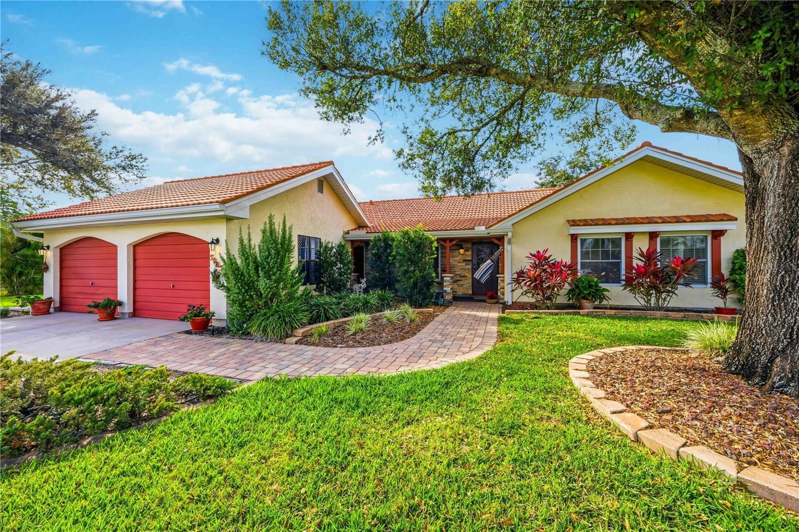 Discover refined modern living in this 2023 built three-bedroom, two-bath residence with a two-car garage, ideally positioned near Sumter Boulevard for quick access to I-75, shopping, and dining. Located not in a Flood Zone, so you get cheaper insurance all around! This home blends elegant design, energy efficiency, and quality craftsmanship including a fully fenced in backyard for privacy. The home’s inviting exterior features natural stone accents, upgraded tropical landscaping, and a brick-paver driveway offering excellent curb appeal. Inside, the open layout is highlighted by soaring tray ceilings and elegant porcelain tile flooring throughout. Impact-rated windows and doors fill the home with natural light while ensuring lasting protection and efficiency. At the heart of the home, the gourmet kitchen showcases premium granite countertops, 42-inch upper cabinets, and stainless-steel appliances. The spacious island provides ample seating, connecting seamlessly to the bright living and dining areas ideal for entertaining. The primary suite is a serene retreat featuring two walk-in closets and a beautifully appointed en-suite bath with dual vanities, granite counters, and a walk-in shower finished with floor-to-ceiling tilework and Moen fixtures. A split-bedroom design ensures privacy, with two additional guest bedrooms and a modern full bath on the opposite side of the home. Step through sliding glass doors to a covered lanai overlooking a large backyard ready for your dream outdoor space. Added benefits include a high-efficiency AC system, dimensional shingles, and an interior laundry room. Located minutes from the North Port Aquatic Center, Heron Creek Golf & Country Club, and the scenic Myakka State Forest, residents can enjoy endless recreation from kayaking and biking to relaxing by the lazy river. Perfectly situated between Tampa and Fort Myers, this move-in-ready property offers the ideal balance of comfort, convenience, and contemporary style.