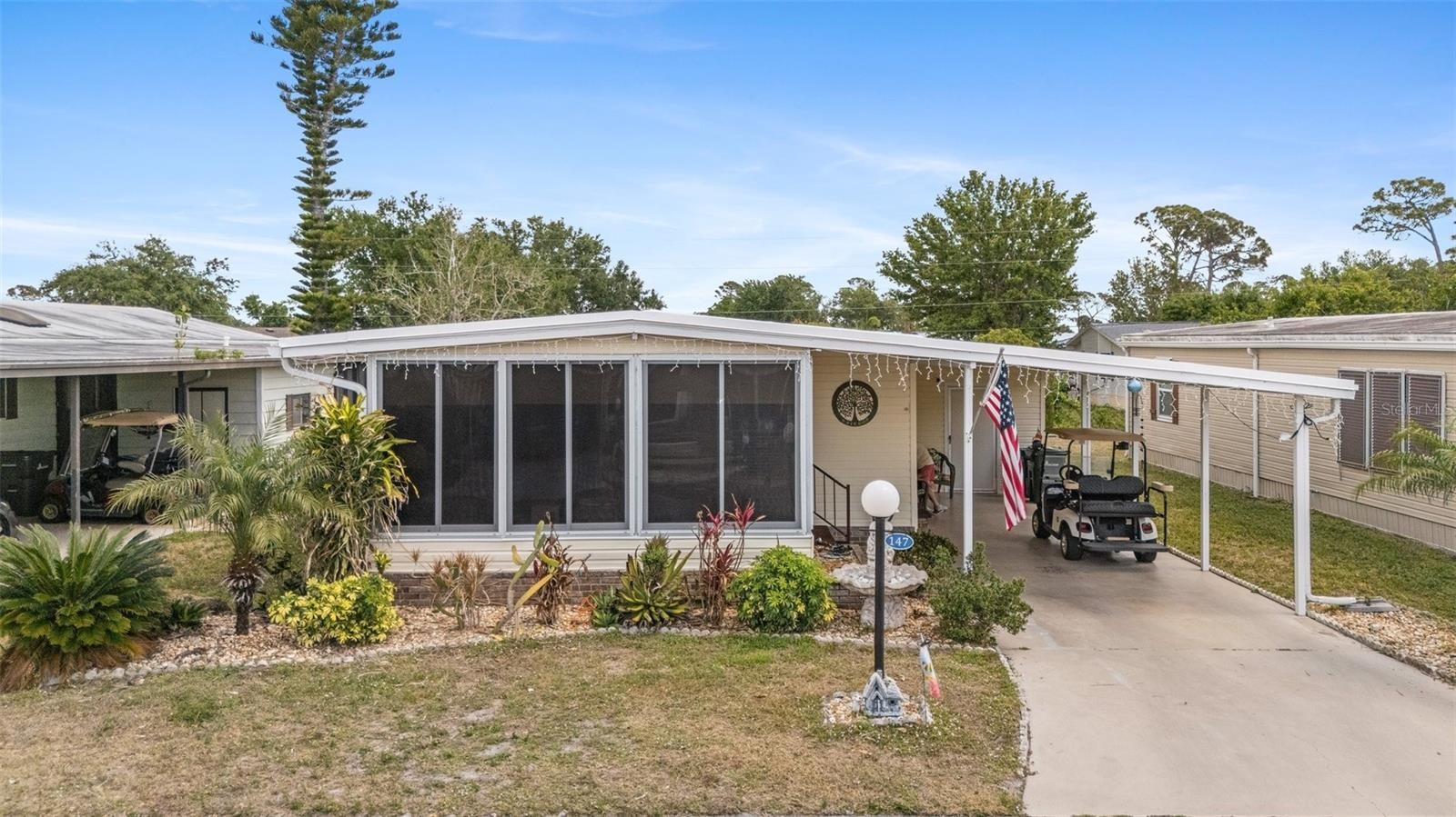 Welcome to Lazy River Village! One of the premiere (if not THE best) 55+ waterfront manufactured park in all of Sarasota and Charlotte counties! The BEST amenities, clubs, and selection of activities you will find in any co-op park in all of Sarasota county and even Charlotte County. Lazy River is located on the banks of the beautiful Myakka River. This 2 bed 2 bath home is offering you the chance to dive right into the Florida lifestyle! The trendy kitchen (with updated appliances!) boasts features such as the built-in oven and unique eating area/cooktop island combo. A built-in buffet is the star of the dining room, and the open floorplan lends a spacious, modern feel to the home. Stylish flooring and bright walls create an agreeable color palette to pair with any decor you like. Both bedrooms will provide you with plenty of light from multiple windows, and both bathrooms provide additional built-in storage space, such as cabinets and drawers. Looking for a place to relax during Florida evenings without all the bugs? The screened-in patio area (with retractable shades and an overhead fan+light) is the ideal spot, and accessible from both inside and outside the house. This home is the perfect option to enjoy seasonal living during Florida's gorgeous, coveted winters, and/or the perfect year-round home for those who love all 4 seasons of Florida. If you enjoy an abundance of activities, you will have plenty to choose from in Lazy River Village: Pickleball, tennis, bike clubs, card clubs, and pontoon boating. They even have a professional woodworking shop. A low monthly fee of $276 includes all the amenities. There are other amenities for an extra fee, such as a marina slip if your home is not located on the water. One of the things that makes Lazy River Village so great is its proximity to...well...everything! Be prepared to enjoy Florida's wildlife at its finest, both inside the Lazy River Village complex and at abundant state parks and nature preserves. Shopping and dining surround you in all directions. The spring training homes of both the Atlanta Braves & the Tampa Bay Rays are just a few minutes away. The world-renowned Gulf of Mexico beaches are all within 30 minutes or less! 1) Englewood beach, 2) Casperson Beach (GREAT for shelling), 3) Venice Beach (shark tooth capital of the world), 4) Brohard Paw Park, 5) Nokomis beach (you've GOT to experience the weekly drum circles), 6) the island gem of southwest Florida: Boca Grande... And finally: 7) Siesta Key in Sarasota has been ranked multiple times as the number one beach in the nation and is a mere 35 minutes away. Lazy River Village offers a lifestyle that every retiree dreams of. You have the quaint downtowns of Venice and Punta Gorda--both cities are often ranked as Top 10 destinations in the country for retirement. Another local favorite, Englewood, is a cozy, fun beach town on the Gulf of Mexico. The residents of Lazy River Village agree: Lazy River is a community that offers it all. Don't miss your chance to see this home!