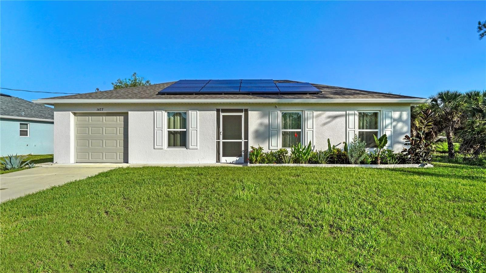 Welcome home to your unique meticulously maintained ALL FURNISHED 2023 Built BLOCK heated salt POOL Home that truly has it All! Stunning 3-bedrooms, 2-bathroom , with garage that is AIR CONDITIONED and turned into versatile GYM/MAN CAVE/OFFICE single-family home nested on OVERSIZED LOT with Dry Canal in your backyard for Extra Privacy! This beautiful residence offers the perfect blend of comfort, privacy, and Florida living at its finest! SOLAR PANELS! Beautifully Landscaped front and backyard! Complete Hurricane Protection! Not in flood zone! No HOA, No CDD, No rental restrictions! Perfect Your Forever home or AIRBNB! Step inside to an open and airy floor plan with spacious living areas, ideal for entertaining or relaxing. A thoughtfully designed split floor plan enhances privacy and functionality. Enjoy the best of outdoor living with a covered lanai, perfect for morning coffee or evening sunsets. Take a refreshing dip in the screened-in pool or do some grilling or tanning! Located in a quiet neighborhood yet close to shopping, dining, and top-rated schools, Tampa Bay Rays Spring training, Cool Today Park, Multiple beaches, Famous Wellen Park, Warm Mineral Springs, Port Charlotte Mall/restaurants entertainment, Port Charlotte Beach Park, easy access to route 75 and I-41 Do not miss your opportunity to own this waterfront retreat! Call for your private showing today!