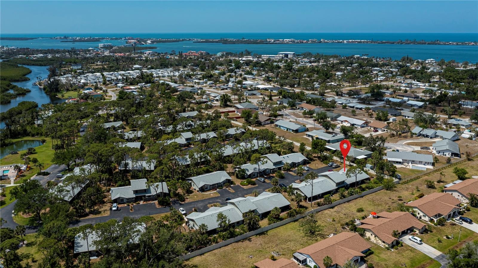 Welcome to one of Englewood's Best Kept Secrets! Tucked away amidst beautiul natural Florida foliage, this hidden gem is part of a small condominium community situated on Gotfried Creek giving boaters passage to the larger waters. Whether you like to boat, kayak or fish, it is all here for the water lover. Boat docks are available on a first come, first serve basis at $300 a season and accomodate boats up to 20', with one fixed bridge to the open waters. There is a kayak rack to store your kayak and a kayak launch is coming. This complex also has a large community pool, a cabana and firepit for get togethers, shuffleboard or benches where you can sit quietly next to a pond. Being part of the association, all of the exterior maintenance is done for you so that you can enjoy the amenities. When you enter this unit, you will feel the pride of ownership. Excellent, move-in condition describes it perfectly. The bright and cheerful kitchen has plenty of cabinets and counters. The passthru to the dining area lends an open feeling to the floorplan and aids in serving dinner or snacks. The spacious living room opens onto a lanai overlooking the natural greenery and private rear yard. Two bedrooms and two baths round out the floor plan. Air conditioner is new in 2023 and new washer in 2023. Property is being sold turn-key furnished with the exception of the wine cabinet, Cafe table & chairs on lanai, Living Room Sofa & T.V., and a few plants. Everything else is included in the sale. All of this only minutes from Englewood Beach, shopping, medical care, churches and cultural events. You won't want to miss this! Call today to view.