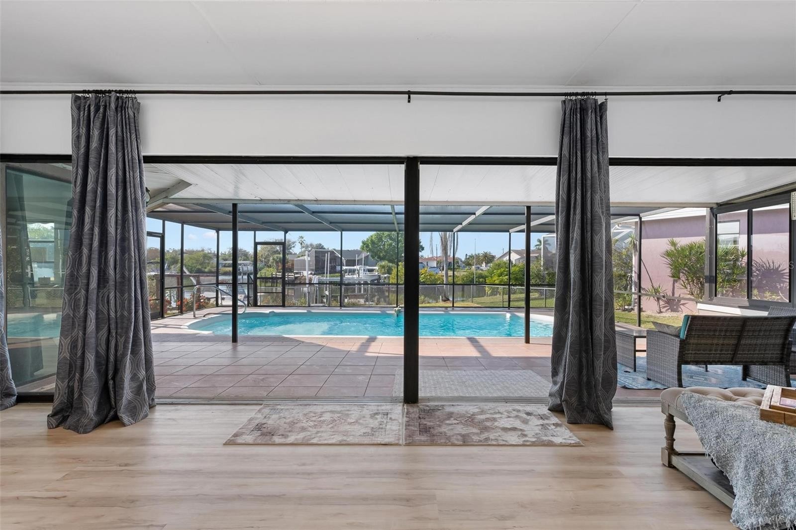 Discover the ultimate in coastal boating lifestyle with this beautifully updated canal-front home, offering seamless access to the open Gulf waters. This property has remained completely dry and undamaged through every major storm. Featuring a refreshed dock equipped with a brand-new 10,000-pound boat lift, this modern waterfront gem is sure to impress. Configured as a spacious two-bedroom, two-bath layout (with simple modifications available to create a full third bedroom) it includes an expansive two-car garage, generous driveway space, and a private swimming pool. Set on a generous third-acre parcel free from any homeowners association or community development fees, this residence captures the essence of relaxed, high-end Florida waterfront living. A new roof was installed in 2022. Enter to find bright, airy interiors with a soft, contemporary palette. Recent upgrades feature durable coastal-style plank flooring, a stunning gourmet kitchen complete with high-end quartz-like countertops accented by subtle under-cabinet illumination, premium Samsung appliances, and thoughtful custom details. The open-concept design centers around the kitchen, flowing effortlessly into the main gathering spaces. Abundant glass doors in the oversized great room lead directly to the pool area, providing captivating water vistas from nearly every room. The owner’s suite offers ample proportions and a refreshed en-suite bath. The guest bedroom sits on the opposite end for added seclusion, complete with a lengthy walk-in wardrobe, privacy door, and its own modernized bathroom. A versatile bonus room currently serves as a home office with lounge seating and plenty of extra space. Open-water boating is just a short cruise away—under three miles. Behind a tall vinyl privacy fence, you'll find a 32-foot concrete pad ideal for storing an RV or boat trailer. Perfectly positioned less than two miles from Sarasota Memorial Hospital's Laurel campus, and only moments from Nokomis Beach, lively tiki spots, eateries, and nearby marinas. Just beyond lies the charming island city of Venice, renowned for its performing arts venue, diverse dining, museum, arts hub, festivals, the popular Legacy Trail for cycling, numerous golf options, and 14 miles of public Gulf shoreline. This fully refreshed waterfront residence also presents excellent potential for vacation rentals or income generation. Furniture can be acquired separately. Come see this outstanding canal-side haven for yourself.