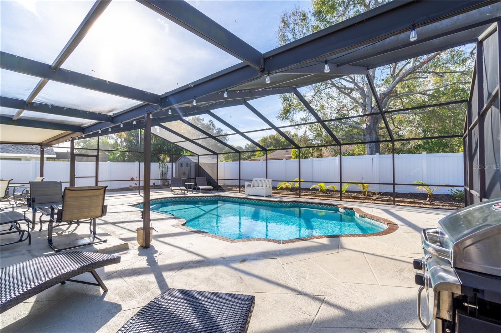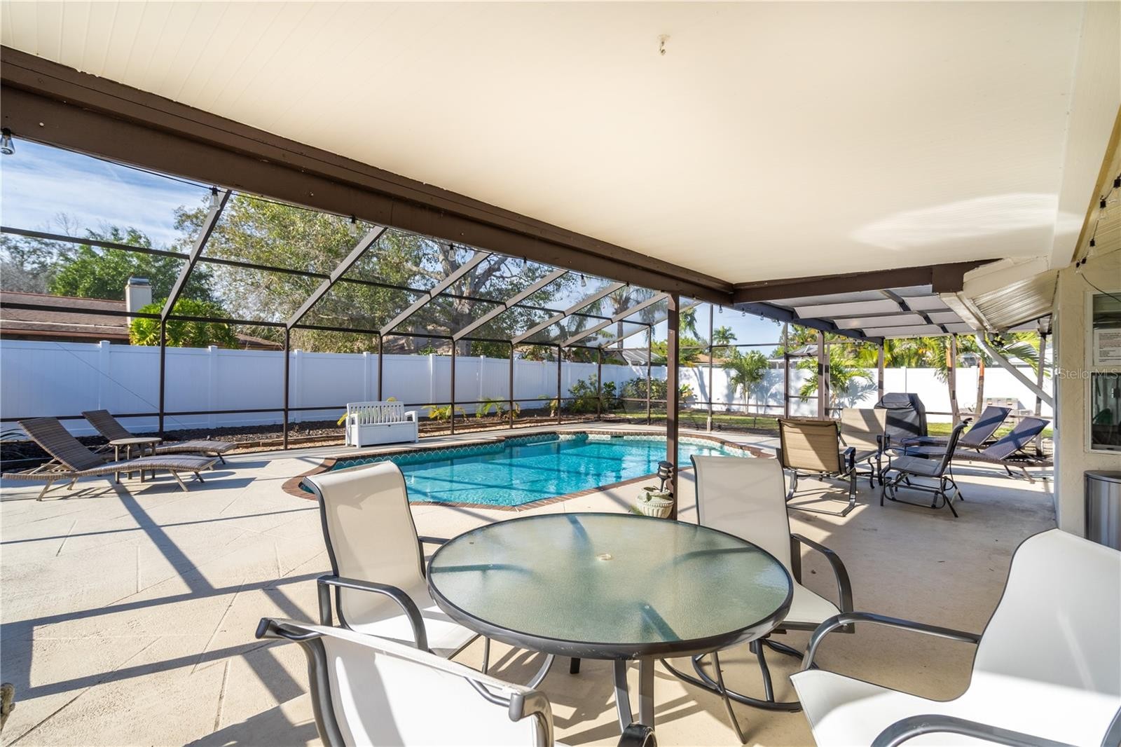 This 3 bedroom, 2 bath home, in the well-established neighborhood of Georgetowne, is ready for a new owner who wants to create their own piece of paradise. As you enter, you’ll notice the great flow of space. A Great Room floor plan with vaulted ceilings combines a spacious living room and dining room with a separate kitchen overlooking the pool and backyard. The kitchen has a newer dishwasher, enough space for an eat in area. There is access to the lanai from the kitchen so you can enjoy your morning coffee indoors or out, depending on the weather. Large Master suite with Updated Bath. Newer Washer and Dryer. New Roof in 2020. New Pool Heater in 2021. New PVC Privacy Fence in 2023. Freshly painted inside, outside and pool deck. Fresh landscaping with outdoor lighting. This home has been well cared for and shows pride of ownership. The HOA fees are low. Close to shopping at UTC Mall, grocery stores, great dining with easy access to I-75, Downtown and the New Bayfront Park! Selling turn-key furnished, Move-in ready!