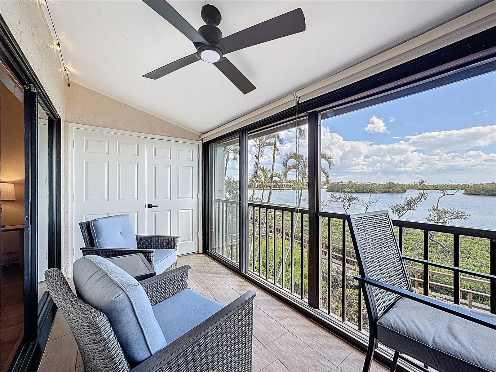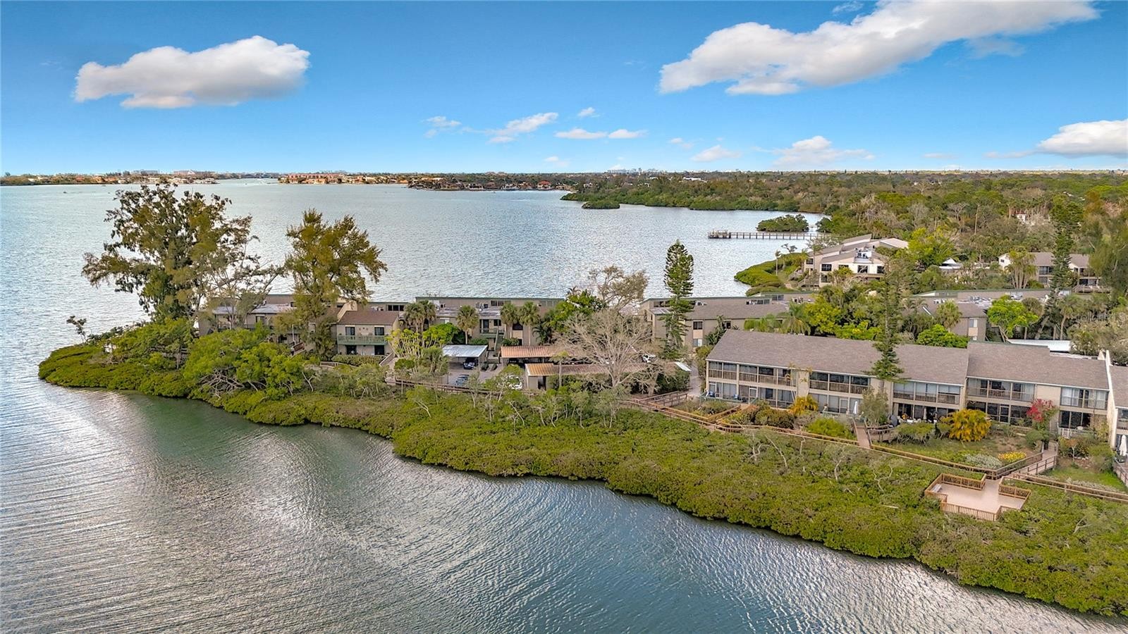 Welcome to Sarasota's best kept secret. The grounds at Pelican Cove are something you have never seen before. Your new 3 bedroom, 2 bath condominium is an end unit located on the 2nd floor with cathedral ceilings and clerestory windows, meaning the sunlight pours in. Spectacular view of Pelican Bay. Bonuses are pelicans fishing * fish jumping * dolphins swimming wild kingdom views off your lanai. New vinyl floors installed in May 2025 as well as a new washer and dryer. Main bedroom has its own private lanai and walk-in shower with oversized bedroom closet. There are 2 guest bathrooms - one with a tub/shower and the other with a shower only. Only 12 or so of these floor plans out of 731 condos. Pelican Cove is a 75-acre, gated, vibrant-waterfront community nestled among manicured tropical foliage. Truly offering something for everyone. Abundant amenities include the 86-slip boat harbor with excellent rates & a launch dock for kayaks and canoes, 6 heated swimming pools, hot-tub, 3 clubhouses, 4 lighted tennis courts, shuffleboard, basketball, dog walk area, walking trails and boardwalks, as well as fishing gazebos, water exercise classes, exercise facility, 2 art studios and a pottery classroom. Take classes at Pelican Cove University or join one of the more than 37 clubs for photography, fiber art, bike riding, culinary arts and card clubs. Woodworking, sculpting, and evening jazz & classical music concerts round out the active lifestyle. Come and see what you have been waiting for.