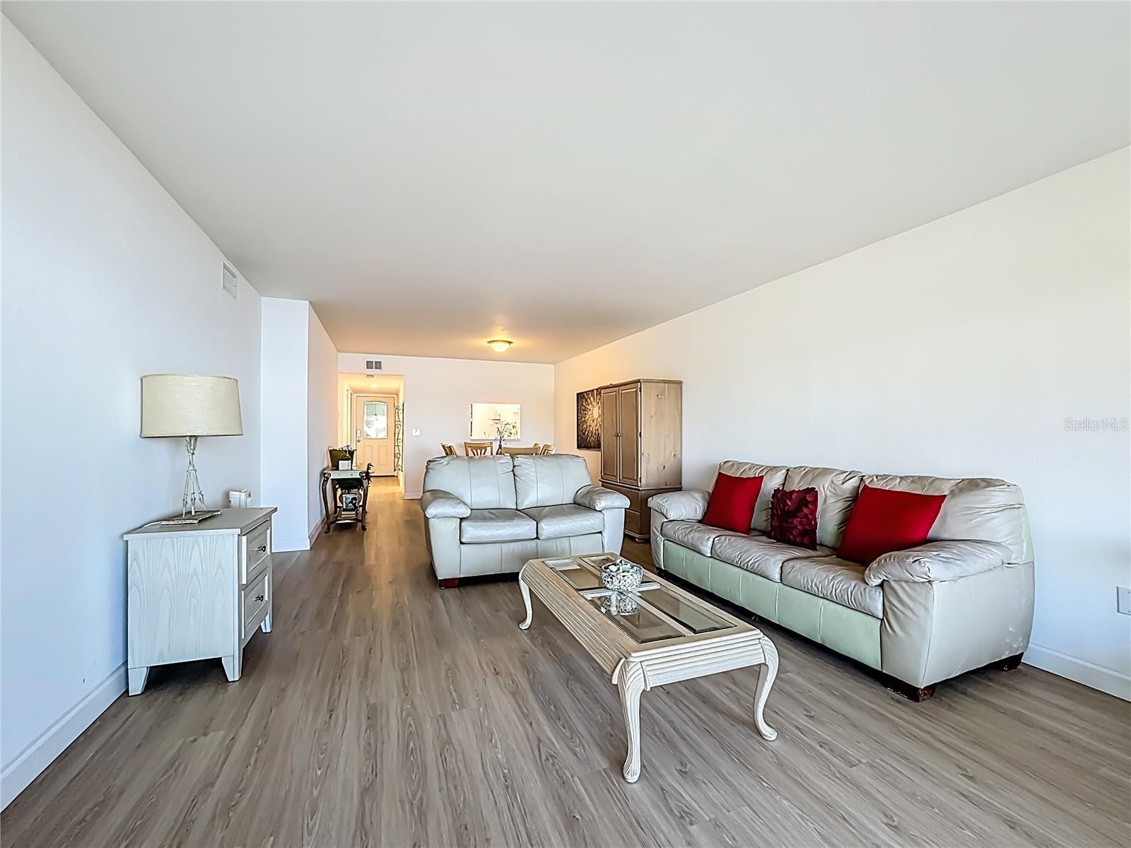 .Get to this condo before it’s gone! Stunning views from the main bedroom, lanai and an outside deck. It’s like your sitting out on the water! Just fabulous views. Plus you get to see pelicans fishing * fish jumping * dolphins swimming. Your new 2 bedroom/2bath condo is on the first floor. New vinyl flooring, freshly painted and comes furnished! Pelican Cove is a 75-acre, gated, vibrant-waterfront community nestled among manicured tropical foliage. Truly offering something for everyone. Abundant amenities include the 86-slip boat harbor with excellent rates & a launch dock for kayaks and canoes, 6 heated swimming pools, hot-tub, 3 clubhouses, 4 lighted tennis courts, shuffleboard, basketball, dog walk area, walking trails and boardwalks, as well as fishing gazebos, water exercise classes, exercise facility, 2 art studios and a pottery classroom. Take classes at Pelican Cove University or join one of the more than 37 clubs for photography, fiber art, bike riding, culinary arts and card clubs. Woodworking, sculpting, and evening jazz & classical music concerts round out the active lifestyle. Come and see what you have been waiting for.
