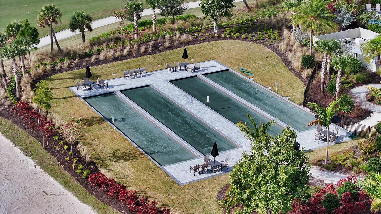 Annual unfurnished pool home available for lease at Esplanade at Azario Lakewood Ranch. Enter this stunning Pallazio open floor plan through elegant glass double front doors into a spacious, light-filled interior showcasing breathtaking golf and lake views. The open-concept layout seamlessly connects the indoors with an extended covered lanai, accessible via double pocket slider doors, offering a clear view cage with picturesque golf and water vistas, a heated pool with waterfall pots, and a fully equipped outdoor kitchen with a grill, range hood, sink, storage cabinets and stone countertops. The chef’s kitchen boasts wood cabinetry with pullout shelves, an extended quartz-topped island, a gas cooktop, a walk-in pantry and water filtration system. The primary suite offers a spacious layout with bay windows, tile floors, motorized shades and stunning views, complemented by a luxurious bath featuring an oversized glass walk-in shower, double vanities with quartz countertops, and a large closet with custom built-ins. Generous guest rooms include en-suite baths with framed glass mirrors, while a den/office with glass French doors and built-in shelving provides a versatile space. Additional features include impact windows in the front, hurricane shutters and storage racks in the extended three-car tandem garage. As a golf membership home, residents have access to world-class amenities, including a resort-style pool with a Bahama bar, an on-site restaurant, wellness and fitness centers, tennis and pickleball courts, and a premier golf course with a practice range.
